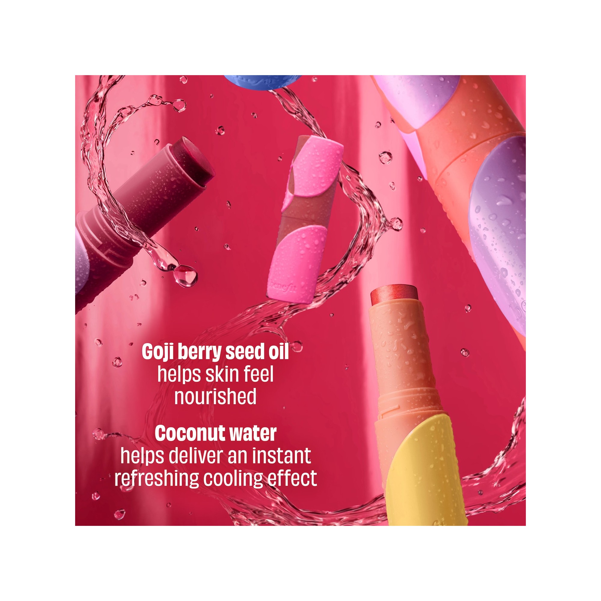 Benefit Cosmetics Juice Stick Dewy Gel-Cream Blush est un fard à joues gel-crème hydratant offrant une couleur juteuse, légère et modulable en un seul passage, avec un fini lumineux effet rosée résistant à l’eau, à la transpiration et à l’humidité. Juice Stick se fond facilement sur la peau pour un résultat frais et éclatant. Sa formule est enrichie en huile de graines de goji, riche en oméga 6 pour nourrir la peau, ainsi qu’en eau de coco pour procurer une sensation rafraîchissante et confortable, assurant une tenue longue durée et une couleur éclatante toute la journée. Obtenez un éclat frais et juteux avec le Juice Stick Hydrating Dewy Gel Blush de Benefit Cosmetics, votre nouvel indispensable pour une touche de couleur lumineuse sans effort. Sa formule gel-crème offre une couvrance légère en un seul passage et se fond parfaitement à la peau pour un fini naturel et bonne mine. Sa texture modulable permet d’intensifier la couleur selon vos envies, tandis que sa résistance à l’eau, à la transpiration et à l’humidité garantit un éclat impeccable tout au long de la journée. Enrichi en huile de graines de goji, il nourrit et rafraîchit la peau, laissant les joues confortables et revitalisées. Idéal pour des retouches rapides ou pour un glow subtil en journée, ce blush longue tenue apporte hydratation, éclat et fini rosé, comme vous, en version sublimée.
