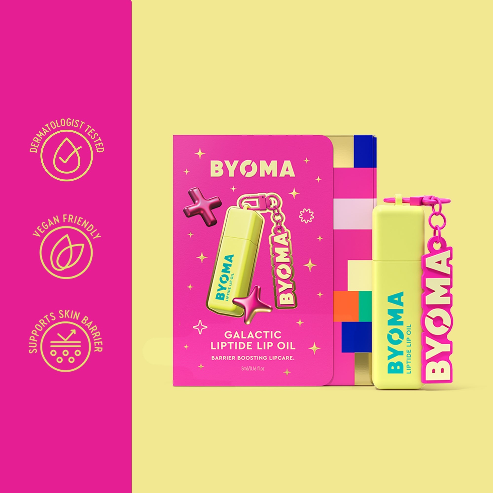 Byoma Galactic Liptide Lip Oil est une huile à lèvres brillante enrichie en actifs hydratants. Idéale pour les lèvres en quête de soin et de confort, elle combine un complexe Liptide riche en peptides, de l’huile d’avocat et de l’huile de tamanu dans une texture légère. Instantanément hydratante et confortable comme un coussin, cette formule non collante laisse les lèvres apaisées et lisses, avec un fini brillant qui peut se porter seul ou sur vos produits préférés pour un rendu multidimensionnel. Accompagnée d’un porte-clés, cette huile à lèvres peut se fixer à votre sac, vos clés ou votre ceinture, pour une hydratation pratique et à tout moment.