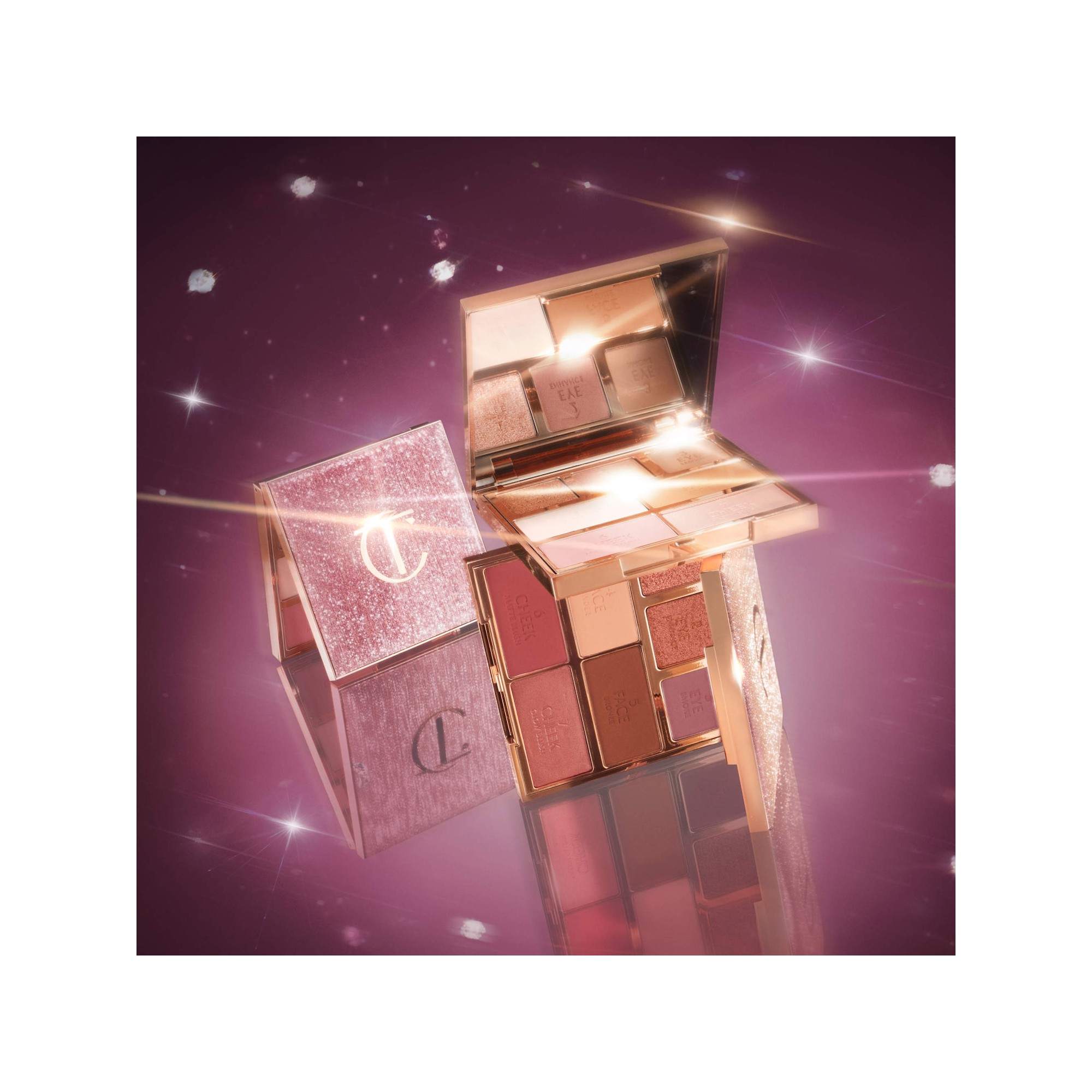 Charlotte Tilbury Hollywood Instant Look In A Palette - Dreamy, Bronzed Beauty est une selection de fards pour le visage avec un grand miroir pour des retouches rapides ou un maquillage Hollywood en cinq minutes. Dreamy, Bronzed Beauty c'est les vacances dans une palette. Avec ses tons neutres chauds, elle donne un aspect bronzé, lumineux et sain. À intensité légère pour la journée ou plus prononcée pour un look soirée glamour doux. Elle comprend aussi la poudre Awakening Airbrush Flawless Finish, comme dans la palette Pillow Talk Beauty Soulmates. Créez des œuvres d’art avec la palette Charlotte Tilbury Instant Look In A Palette. Disponible dans la teinte Icon Baby, cette palette à sept fards propose une routine étape par étape pour obtenir un éclat rosé juste pincé. Trois ombres séduisantes en matt, satin et shimmer ajoutent profondeur et dimension au regard lumineux. Les étapes quatre et cinq perfectionnent le teint avec poudre de finition et bronzer, tandis que les étapes six et sept apportent une touche de couleur sur les joues pour un look full-glam ultime. Créez un look de star de cinéma avec la palette Hollywood Instant Look In A Palette 2 de Charlotte Tilbury. Cette palette de maquillage est remplie de produits pour les yeux, les joues et le visage dans des roses chatoyants, offrant une touche de glamour à n'importe quel look. Dans la palette de maquillage Charlotte Tilbury, découvrez trois nouvelles teintes d'ombres à paupières, des bronzants pour créer un éclat sain, des fards à joues soyeux pour une touche de couleur et de la poudre pour compléter le look. La palette Look In A de Charlotte Tilbury est livrée avec un miroir généreux pour faciliter les retouches à la maison ou en déplacement. Choisissez la Palette 2 Charlotte Tilbury Hollywood Instant Look In A Palette pour des looks super flatteurs avec filtre doux.