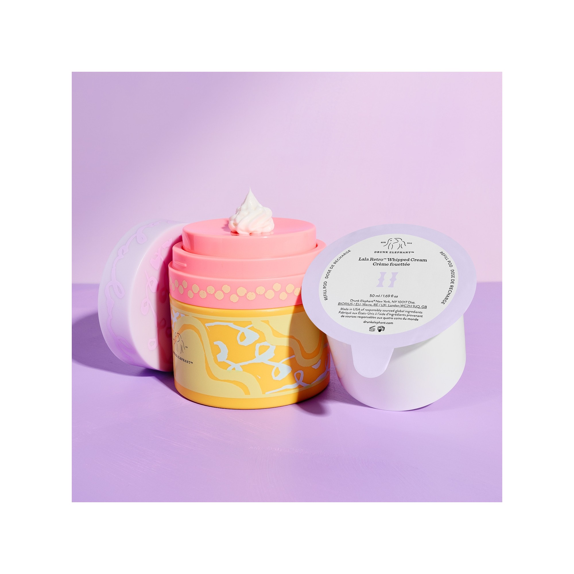 Drunk Elephant A Landscape of Lala Refill Kit est un kit composé du format classique et la recharge du soin culte Lala Retro Whipped Cream de Drunk Elephant, une crème nourrissante riche en céramides qui assure une hydratation optimale à tout âge. Cliniquement prouvé pour augmenter rapidement et durablement l’hydratation de la peau, Lala Retro renforce la barrière cutanée et aide la peau à retenir l’humidité tout au long de la journée. En optant pour la recharge, vous réduisez de 85 % la quantité de plastique utilisée par rapport à un nouveau pot complet. Pour recharger : retirez le capuchon, dévissez la pompe et enlevez le pot intérieur vide. Insérez ensuite la recharge dans le pot extérieur, retirez le film de protection, puis revissez la pompe fermement. Afin d’éviter toute contamination, ne touchez pas directement le produit ni l’intérieur du système de pompe. La combinaison d’huiles africaines nourrit, régénère visiblement et hydrate la peau, tandis que les céramides AP, EOP et NP apaisent et protègent de la déshydratation. Le phytosphingosine, un lipide d’origine végétale, restaure et calme la peau. Ce duo Lala Refill Kit comprend la crème best-seller et sa recharge pour une peau souple, douce et lumineuse, grâce à une texture fouettée enrichie en marula et baobab, deux huiles riches en omégas et antioxydants.