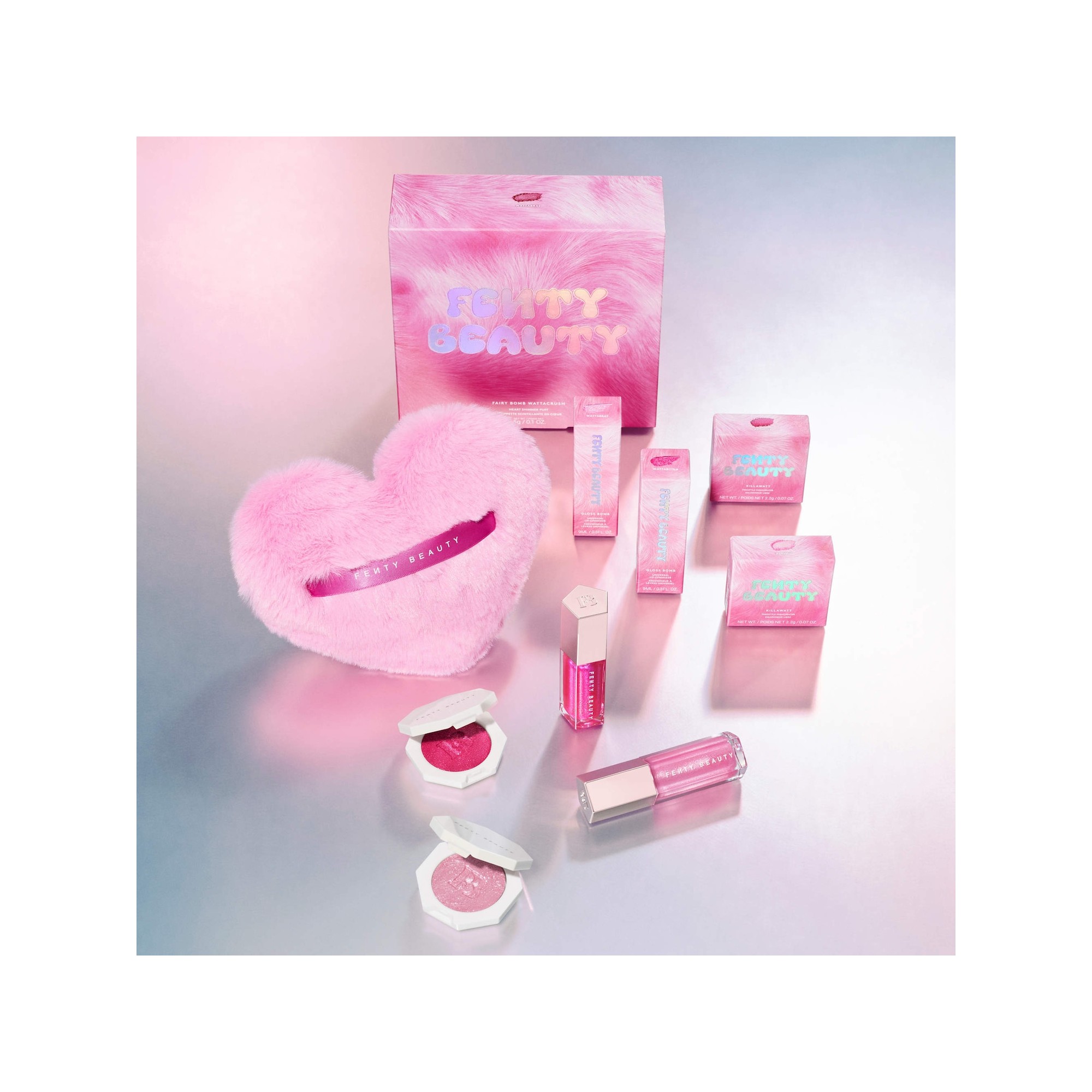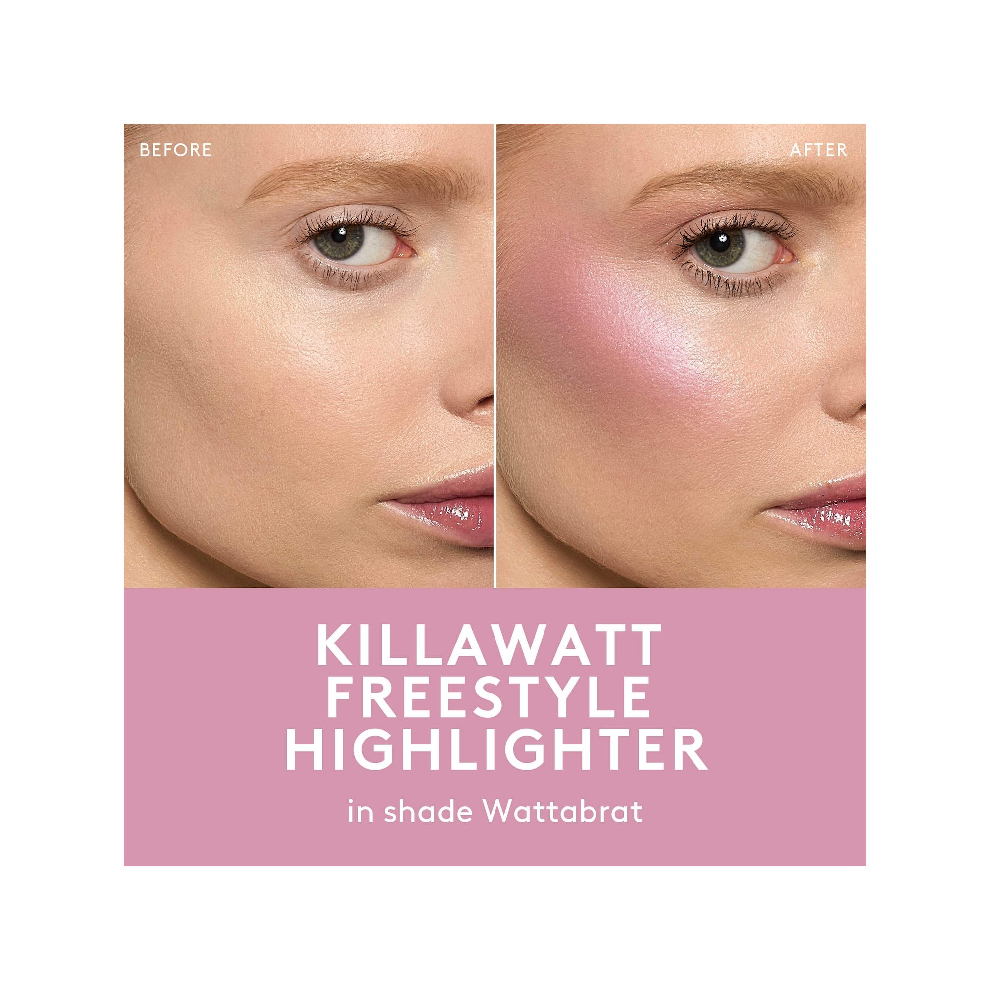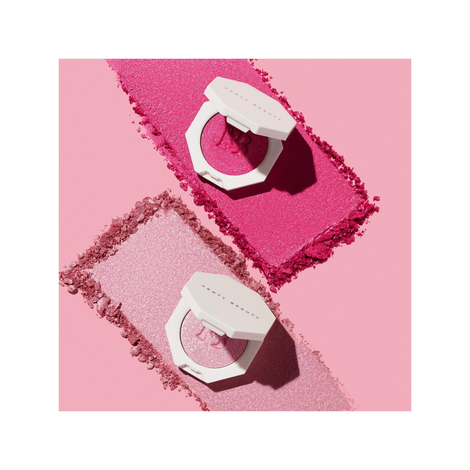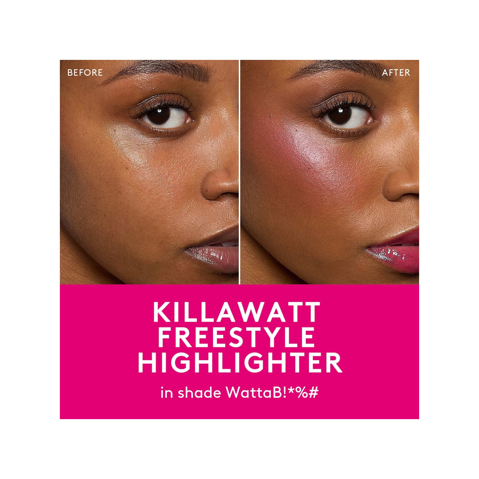 Fenty Beauty Mini Killawatt Freestyle Highlighter est un mini highlighter hybride crème poudre pour le teint et les yeux, proposé en édition limitée Saint Valentin. Les Killawatt Mini Highlighters de Fenty Beauty se réinventent pour cette édition limitée avec une nouvelle teinte exclusive. La teinte best seller WATTABRAT, le rose clair iconique que vous adorez, est accompagnée de WATTAB!*#%, un rose profond inédit, pour un glow modulable et lumineux à appliquer où vous le souhaitez. Il contient des particules ultra fines scintillantes et offre une texture soyeuse et crémeuse. Sa formule hybride crème en poudre est facile à appliquer et illumine le visage, les yeux, les lèvres ou encore les épaules, partout où vous souhaitez ajouter une touche de lumière.
