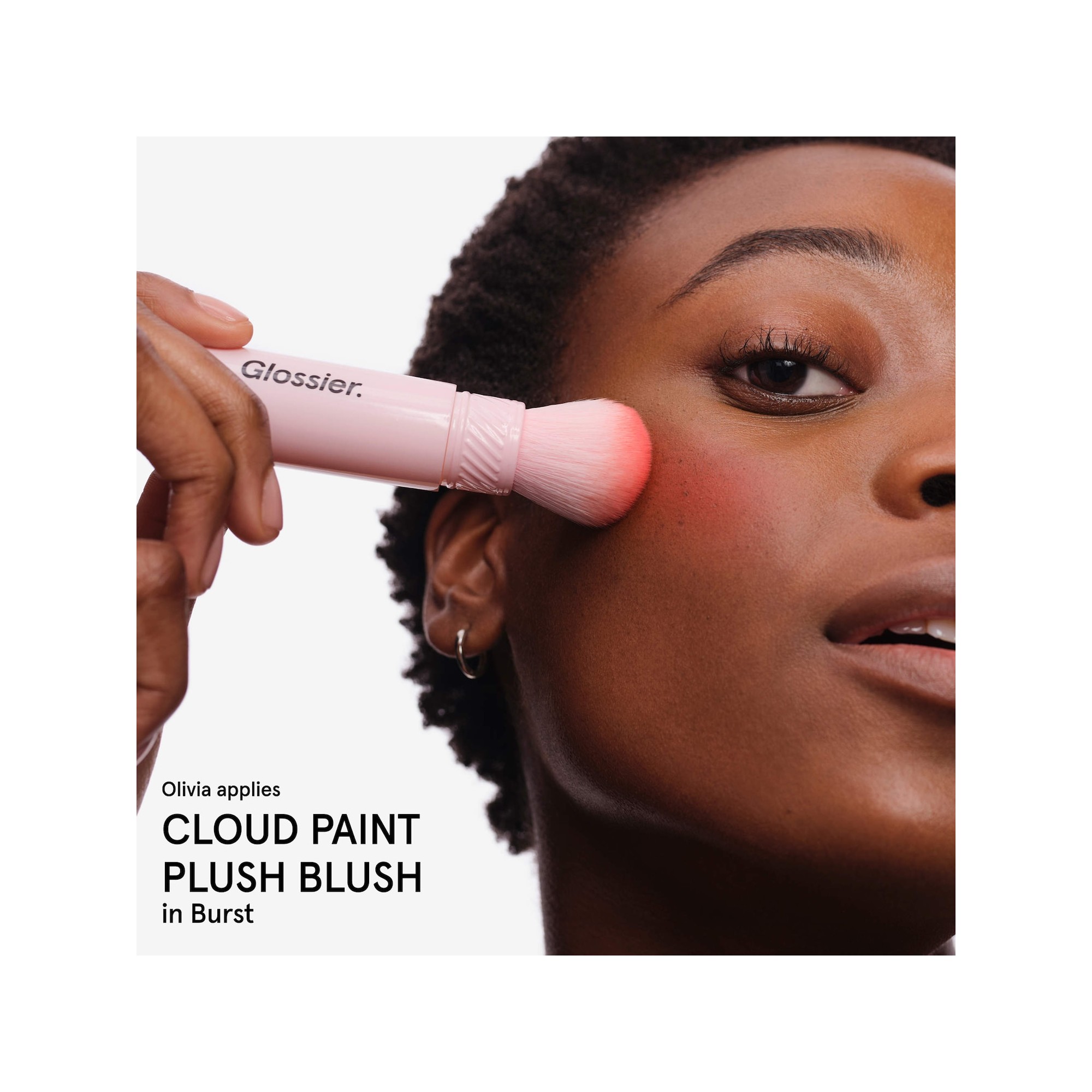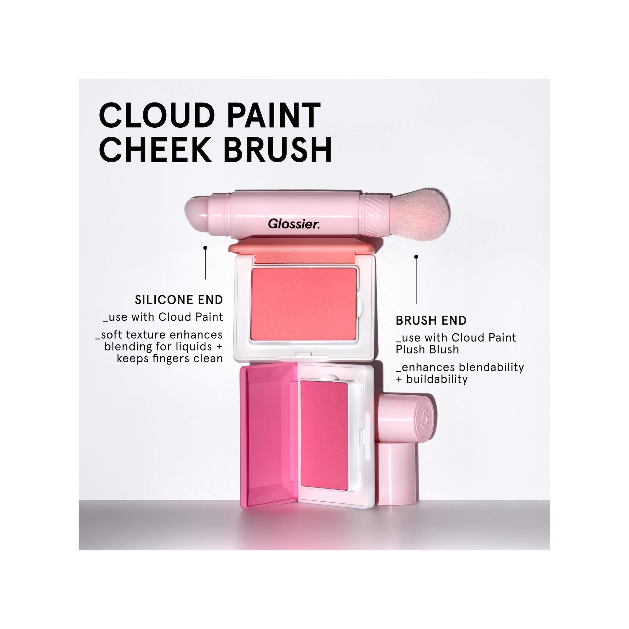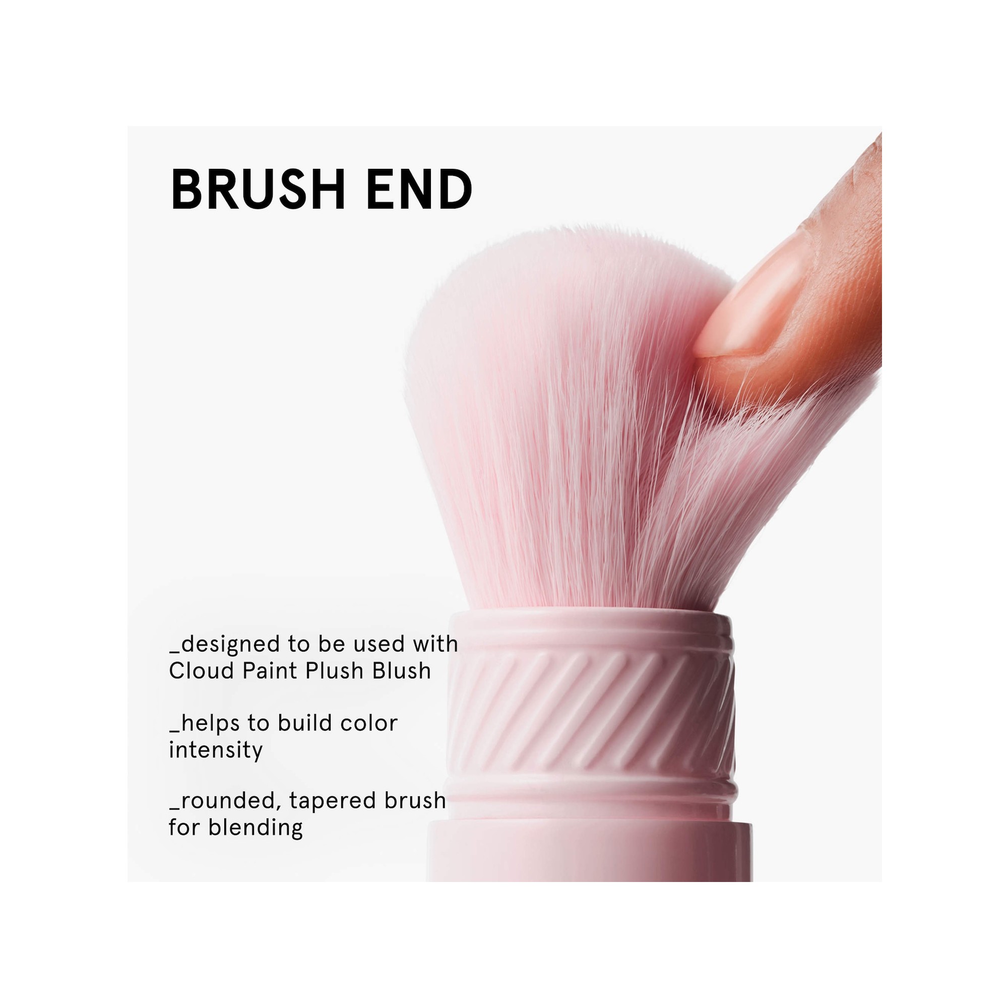 Glossier Cloud Paint Dual-Ended Cheek Blush Brush est un pinceau double embout pour le fard à joues, pratique pour le voyage, conçu pour une application parfaitement homogène des blushs liquides et en poudre. D’un côté, une tête synthétique rétractable et effilée permet de fondre Cloud Paint Plush Blush ou tout autre blush en poudre. De l’autre, un embout en silicone doux et non absorbant reproduit le toucher des doigts, idéal pour estomper Cloud Paint ou tout blush liquide.
