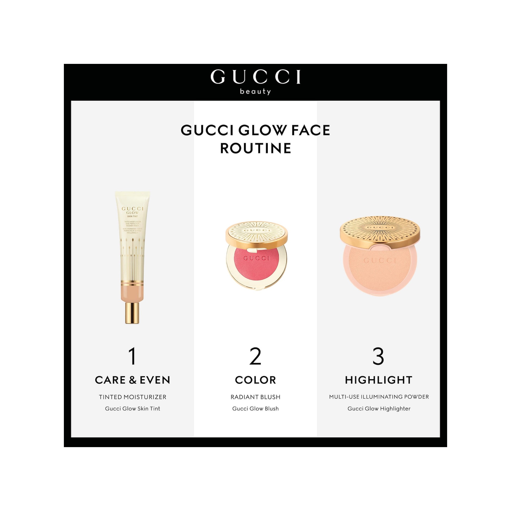 Gucci Glow Dewy Powder Blush est un fard à joues longue tenue à la texture fine et soyeuse qui offre une couleur modulable, idéale pour un voile délicat comme pour un look plus intense. Disponible en quatre teintes lumineuses et durables, le Gucci Glow Blush apporte un éclat nacré au fini frais, radieux et naturellement lumineux. Infusé d’acide hyaluronique hydratant et d’huile de rose noire apaisante, ce blush associe le confort d’une crème à la légèreté d’une poudre. Sa formule fond sur la peau, se travaille facilement et assure une couvrance progressive tout en laissant un éclat sain et élégant. Le Gucci Beauty Glow Powder Blusher combine une poudre finement moulue à des pigments réflecteurs de lumière pour sublimer les joues d’un flush lumineux et naturel. Enrichi en ingrédients soin, il se superpose sans effort pour révéler un teint éclatant et sophistiqué. Léger et confortable, il se fond parfaitement sur la peau pour un résultat frais et luxueux, aussi bien au quotidien que pour les occasions spéciales.