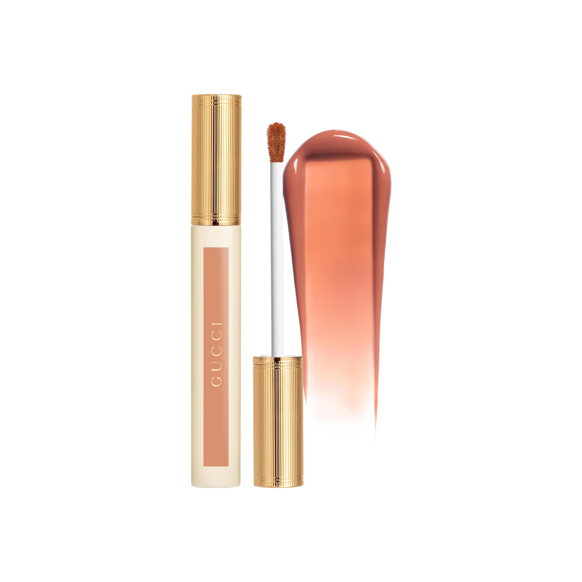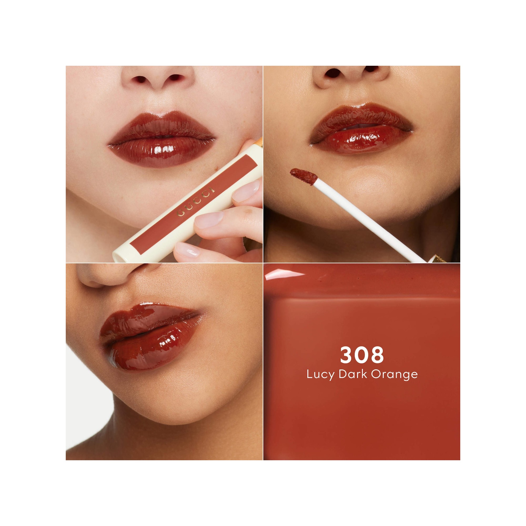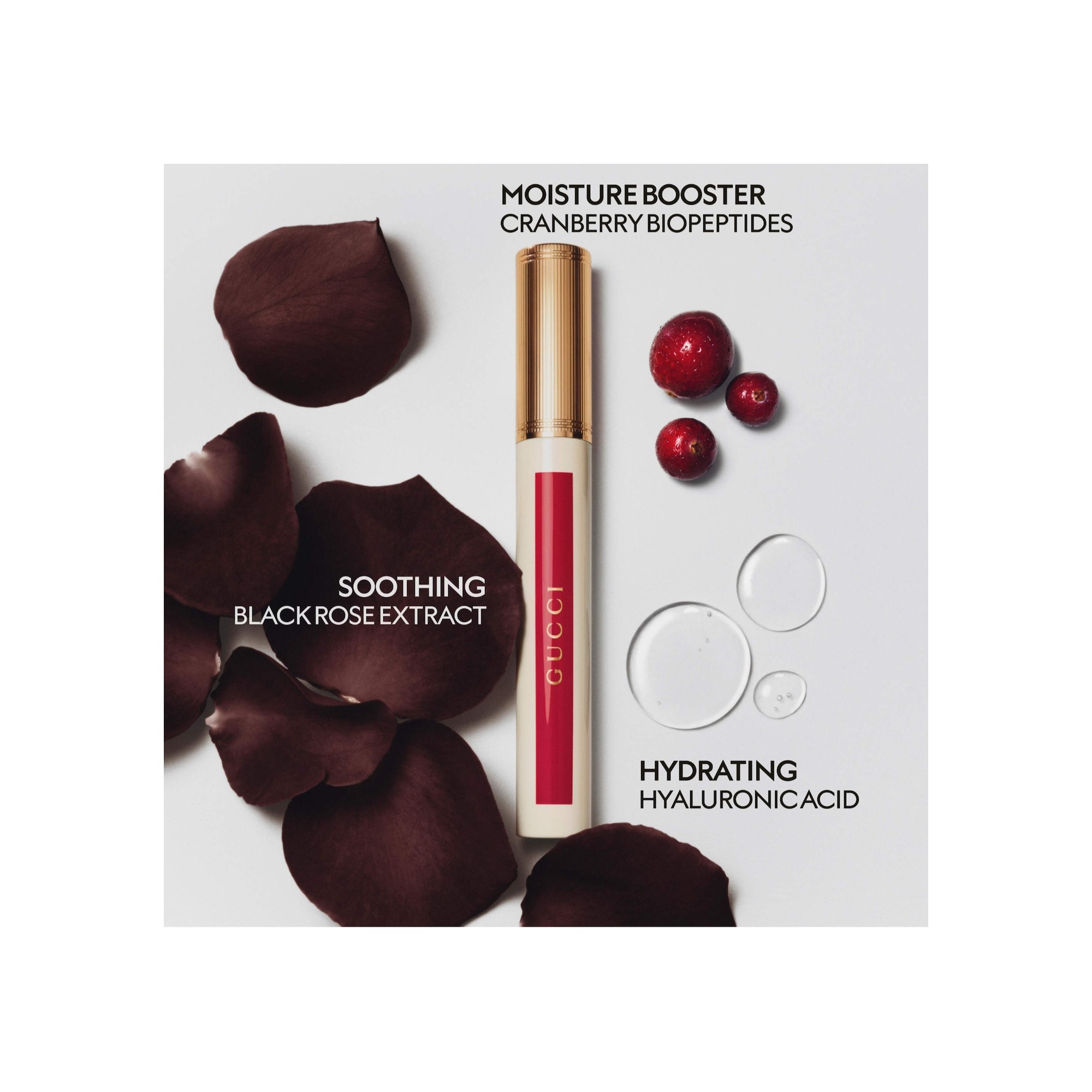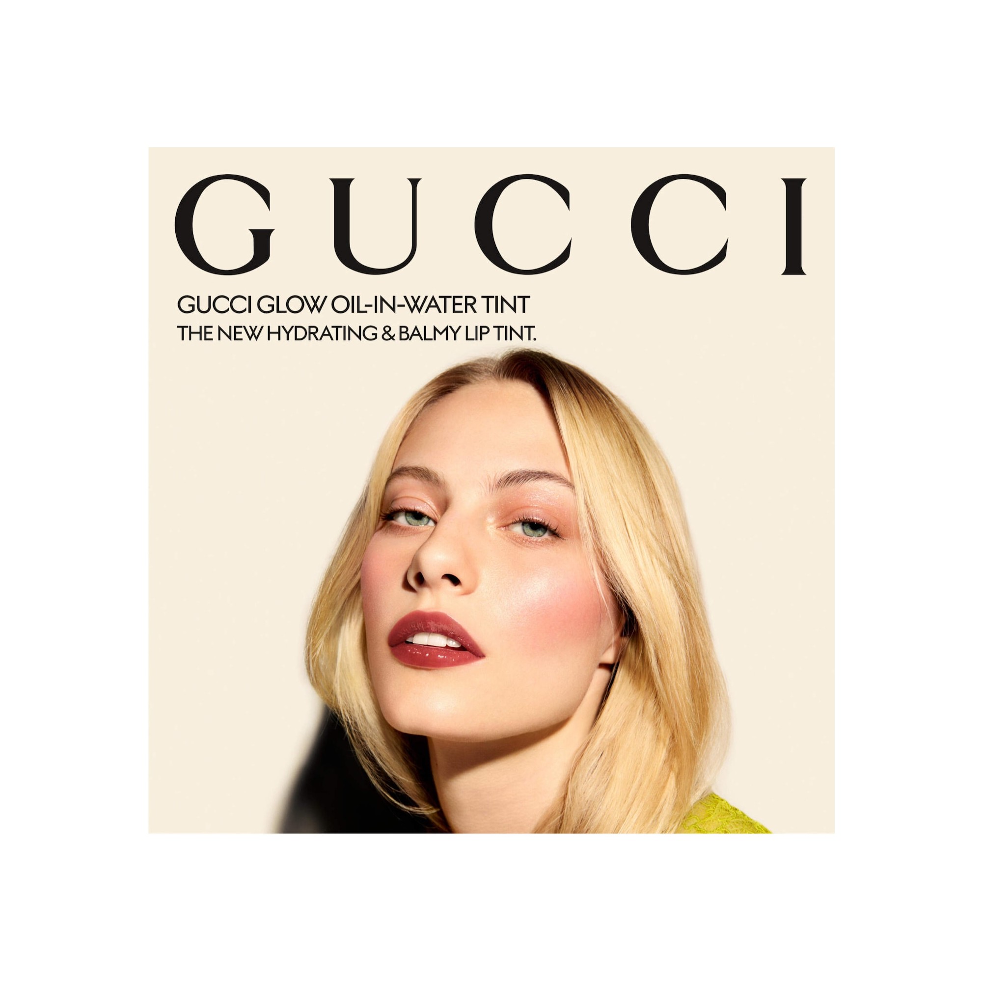 Gucci Oil-In-Water Tint Hydrating Lip Stain est un rouge à lèvres liquide innovant, à la texture huile-dans-eau, qui offre une couleur longue tenue et un fini lumineux non collant en un seul passage. Disponible dans une gamme de teintes juteuses allant du rose au rouge, ce lip tint s’adapte à toutes les carnations pour un résultat frais et éclatant. Présenté dans un flacon ivoire élégant avec un applicateur sculpté, il permet une application précise, douce et sans effort, enveloppant les lèvres d’un voile de couleur confortable. Enrichi en biopeptides de cranberry, il booste l’hydratation et aide à retenir l’humidité, tandis que l’acide hyaluronique attire et maintient l’eau pour des lèvres intensément hydratées. L’extrait de rose noire contribue également à nourrir et adoucir les lèvres. Découvrez le Glow Oil-In-Water Tint de Gucci Beauty, une formule hybride qui allie soin, brillance et couleur vibrante. Sa texture façon baume hydrate instantanément, nourrit et apporte un fini frais et lumineux qui dure toute la journée. Sa couvrance légère à modulable offre un effet brillant et aqueux, sublimant les lèvres avec un éclat glossy naturel. Présenté dans un écrin élégant aux accents dorés, ce produit incarne le luxe moderne pour des lèvres lisses, repulpées et lumineuses.