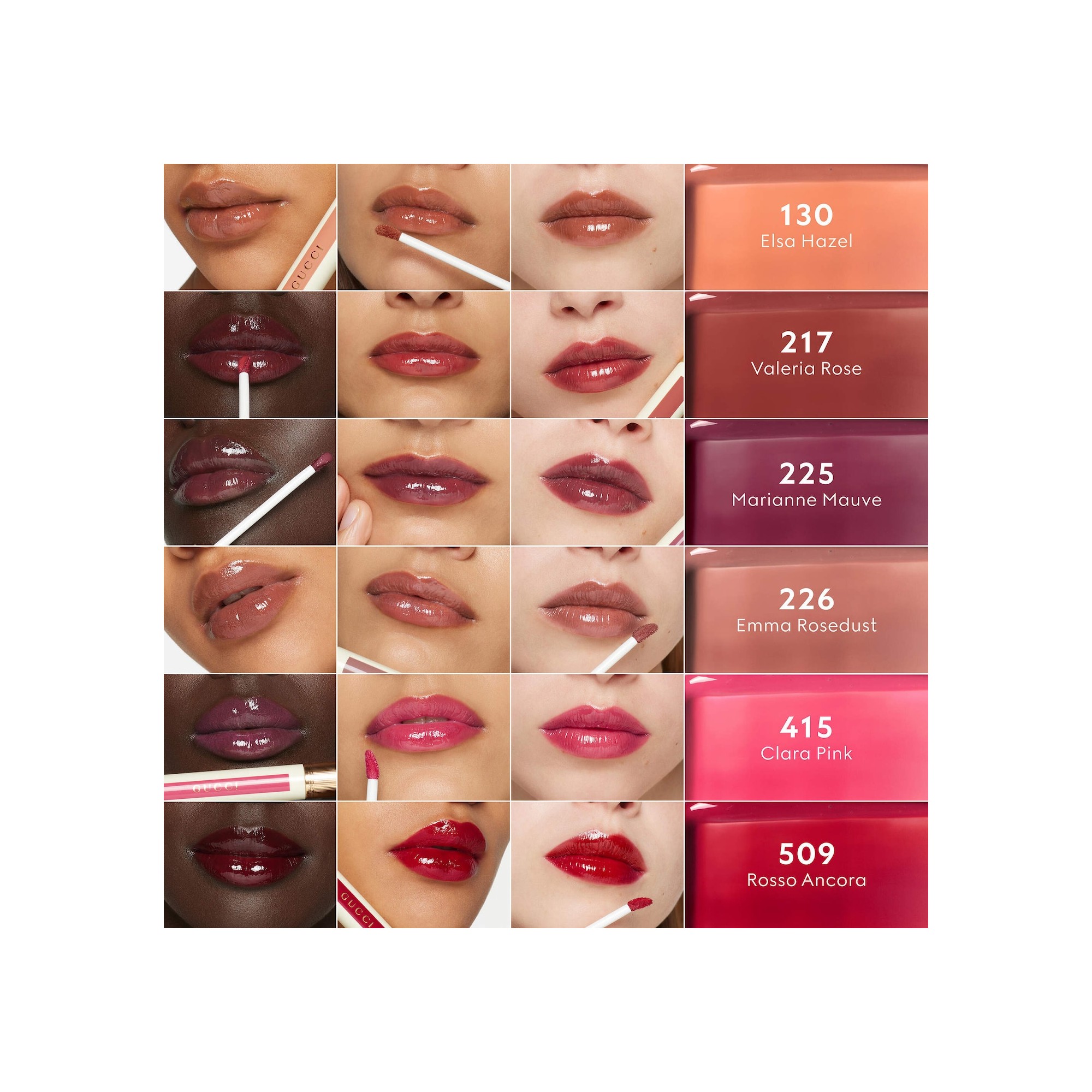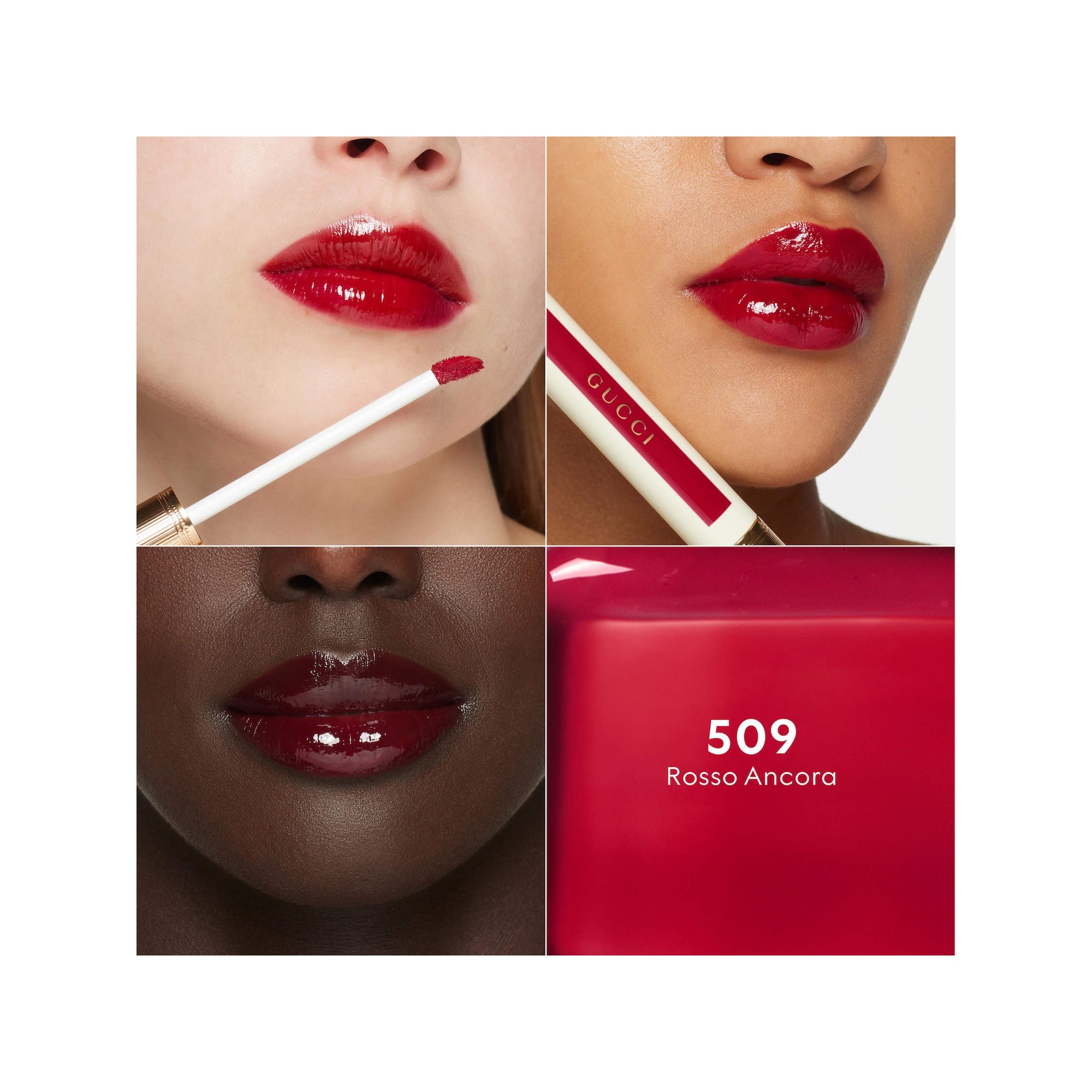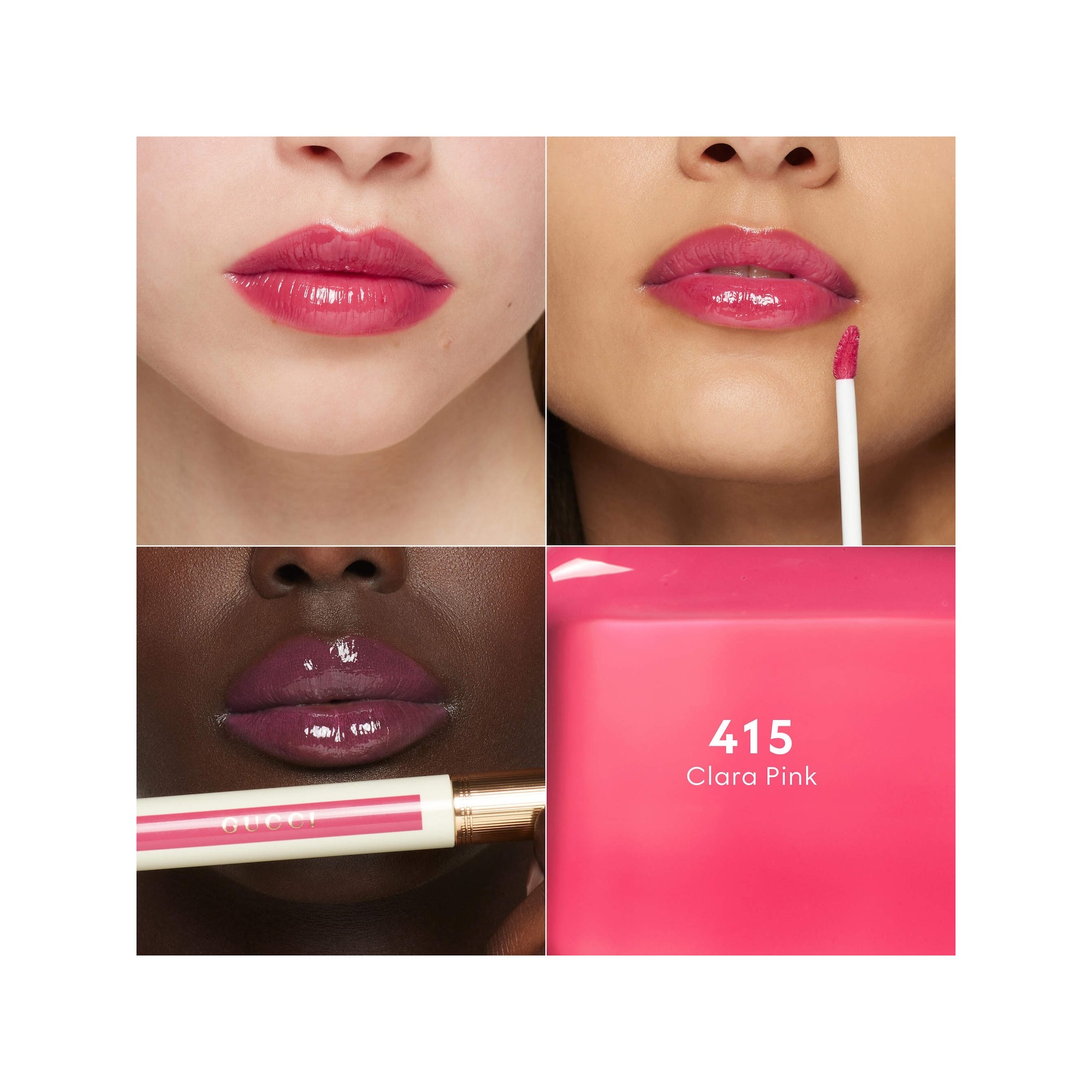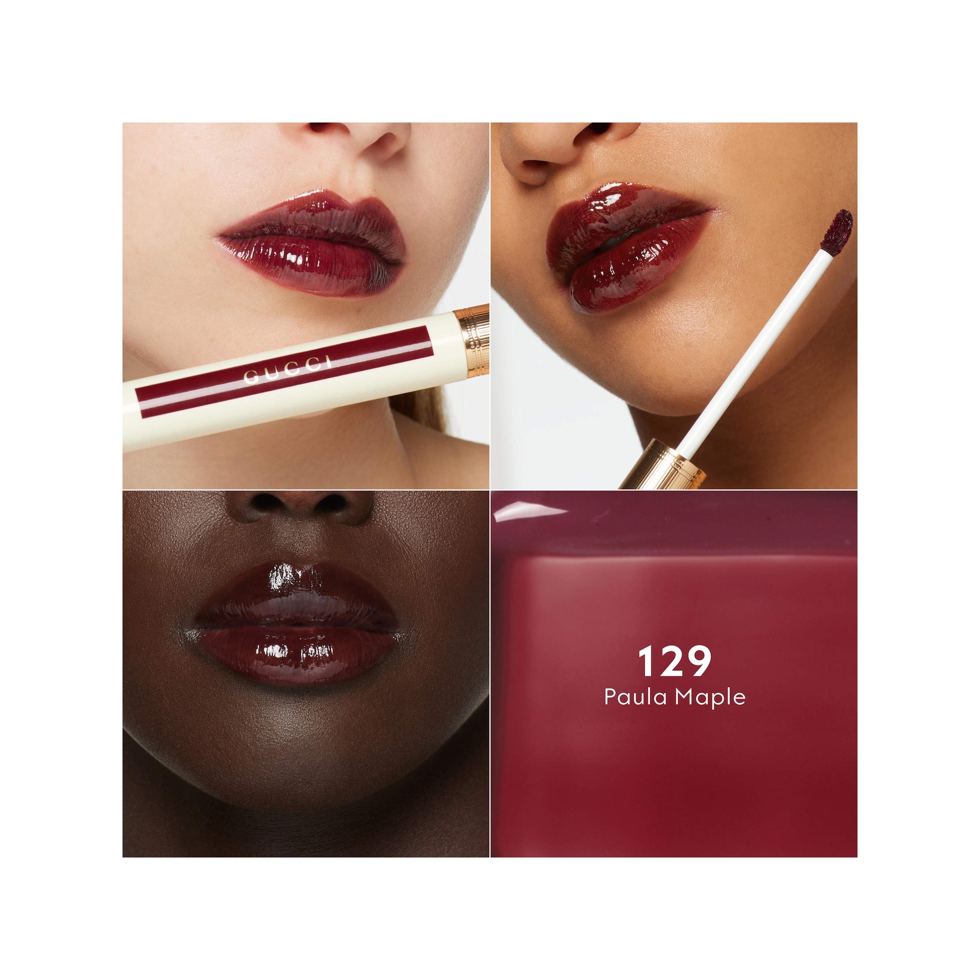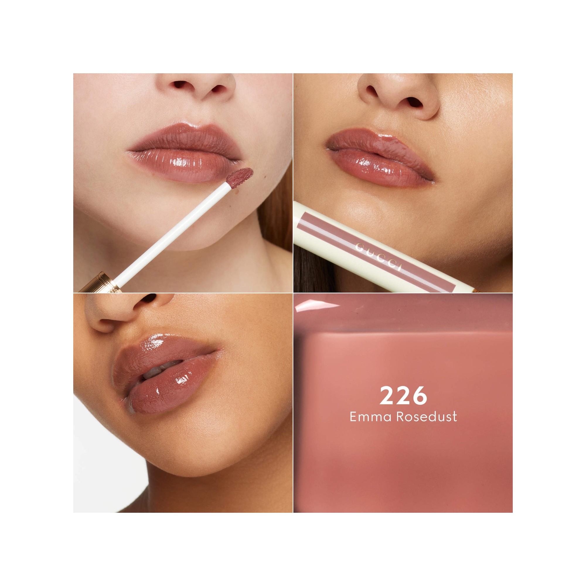 Gucci Oil-In-Water Tint Hydrating Lip Stain est un rouge à lèvres liquide innovant, à la texture huile-dans-eau, qui offre une couleur longue tenue et un fini lumineux non collant en un seul passage. Disponible dans une gamme de teintes juteuses allant du rose au rouge, ce lip tint s’adapte à toutes les carnations pour un résultat frais et éclatant. Présenté dans un flacon ivoire élégant avec un applicateur sculpté, il permet une application précise, douce et sans effort, enveloppant les lèvres d’un voile de couleur confortable. Enrichi en biopeptides de cranberry, il booste l’hydratation et aide à retenir l’humidité, tandis que l’acide hyaluronique attire et maintient l’eau pour des lèvres intensément hydratées. L’extrait de rose noire contribue également à nourrir et adoucir les lèvres. Découvrez le Glow Oil-In-Water Tint de Gucci Beauty, une formule hybride qui allie soin, brillance et couleur vibrante. Sa texture façon baume hydrate instantanément, nourrit et apporte un fini frais et lumineux qui dure toute la journée. Sa couvrance légère à modulable offre un effet brillant et aqueux, sublimant les lèvres avec un éclat glossy naturel. Présenté dans un écrin élégant aux accents dorés, ce produit incarne le luxe moderne pour des lèvres lisses, repulpées et lumineuses.