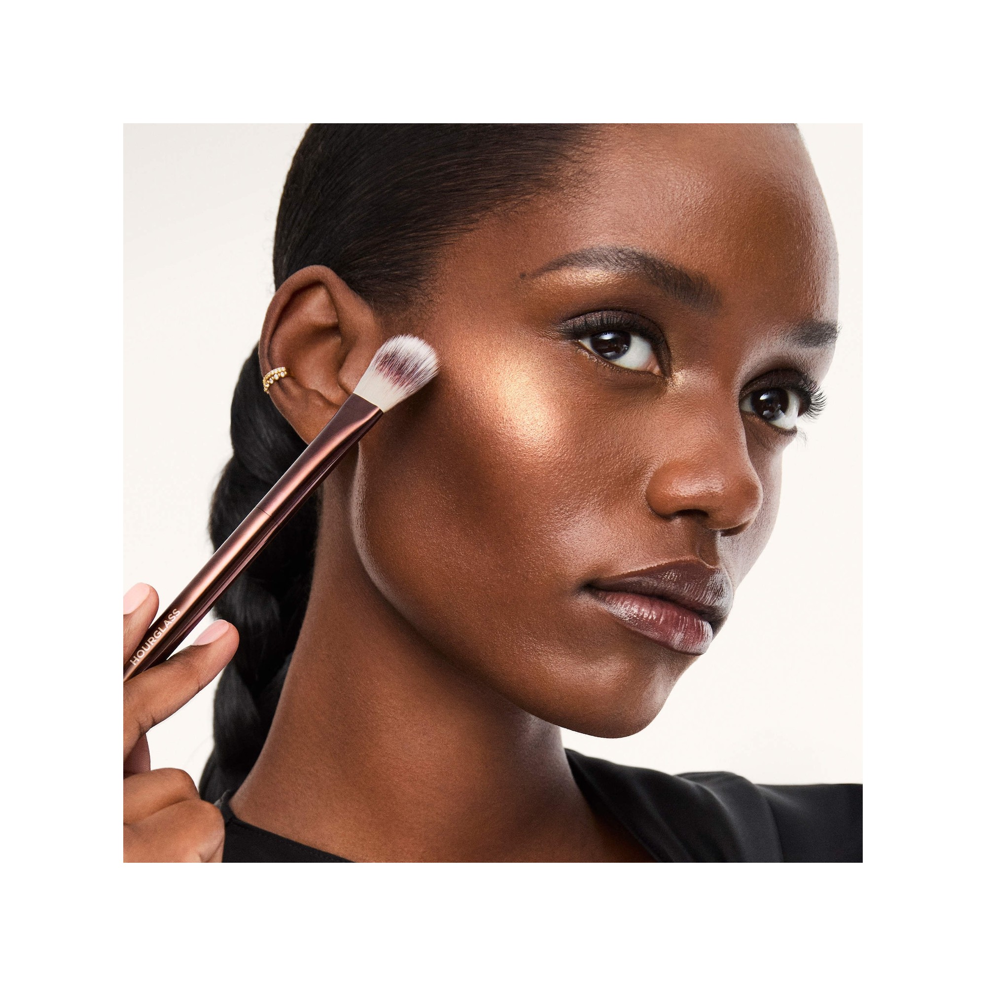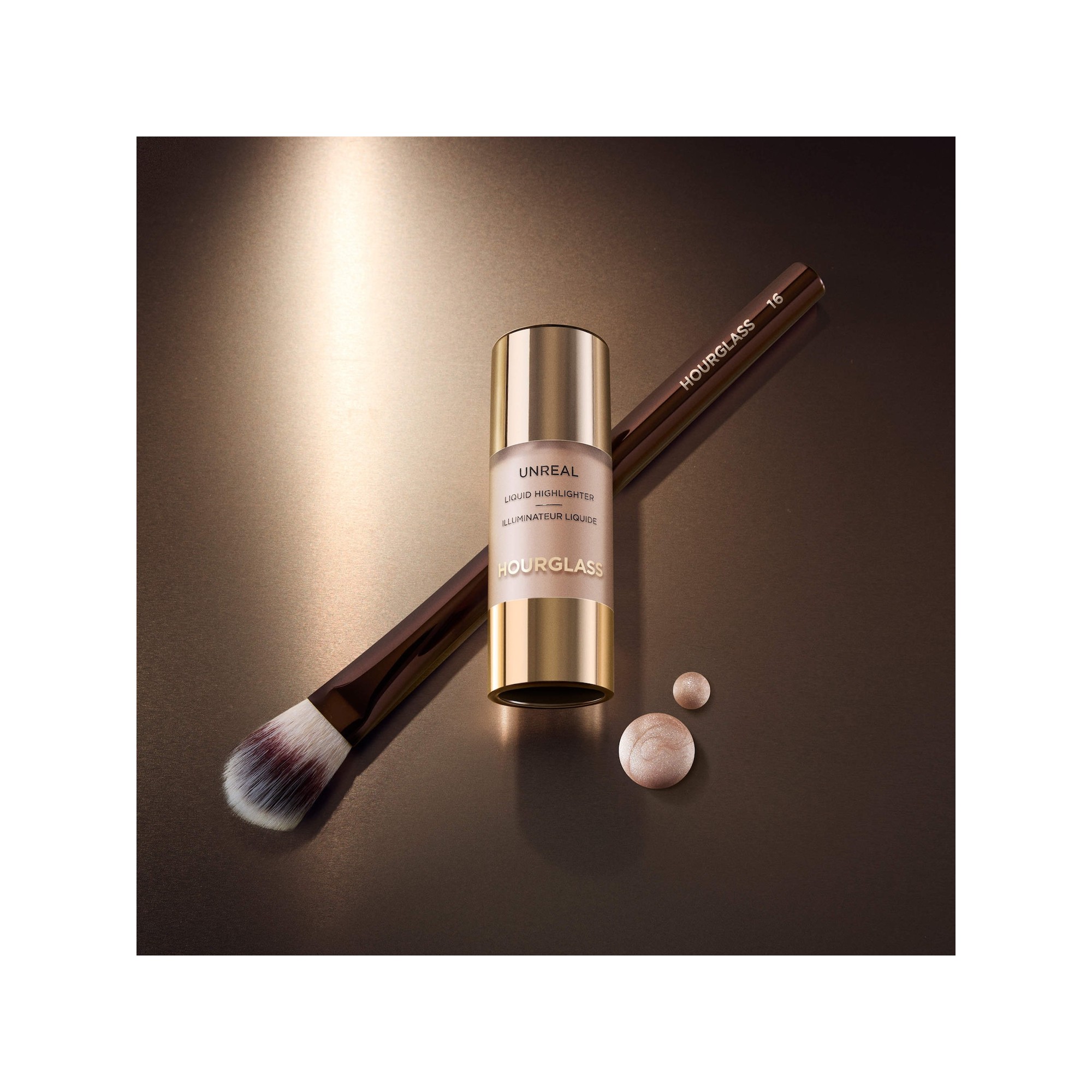 Hourglass No. 16 Highlighter Brush est un pinceau enlumineur précis en forme d’éventail, doté de fibres denses et estompantes en fibres véganes ultra-douces, conçu pour une application ciblée et modulable. Équipé d’un manche léger en aluminium, il offre une prise en main confortable et parfaitement équilibrée pour un contrôle optimal lors de l’application. Idéal pour travailler avec l’Unreal Liquid Highlighter vendu séparément, il s’utilise également parfaitement avec des textures poudre ou crème pour le teint. Mettez en valeur l'éclat et la définition du visage avec le pinceau illuminateur Hourglass n° 16, un pinceau de maquillage polyvalent spécialement conçu pour l'application précise des illuminateurs liquides, crèmes et poudres. Ce pinceau estompeur à la forme évasée, conçu avec soin, est fabriqué à partir de fibres véganes et convient donc à tous. Sa pointe innovante permet d'obtenir un fini lisse et uniforme, tout en révélant un éclat sublime. Léger et facile à prendre en main, son manche en aluminium assure une prise en main équilibrée pour une application et un estompage précis. Trempez simplement le pinceau illuminateur Hourglass n° 16 dans l’illuminateur et appliquez-le par petits mouvements délicats et amples, en estompant bien. Tournez-le verticalement pour cibler des zones précises comme le bout du nez ou l’arcade sourcilière.