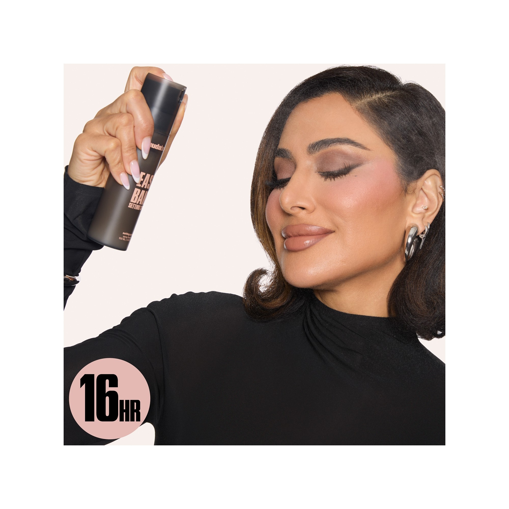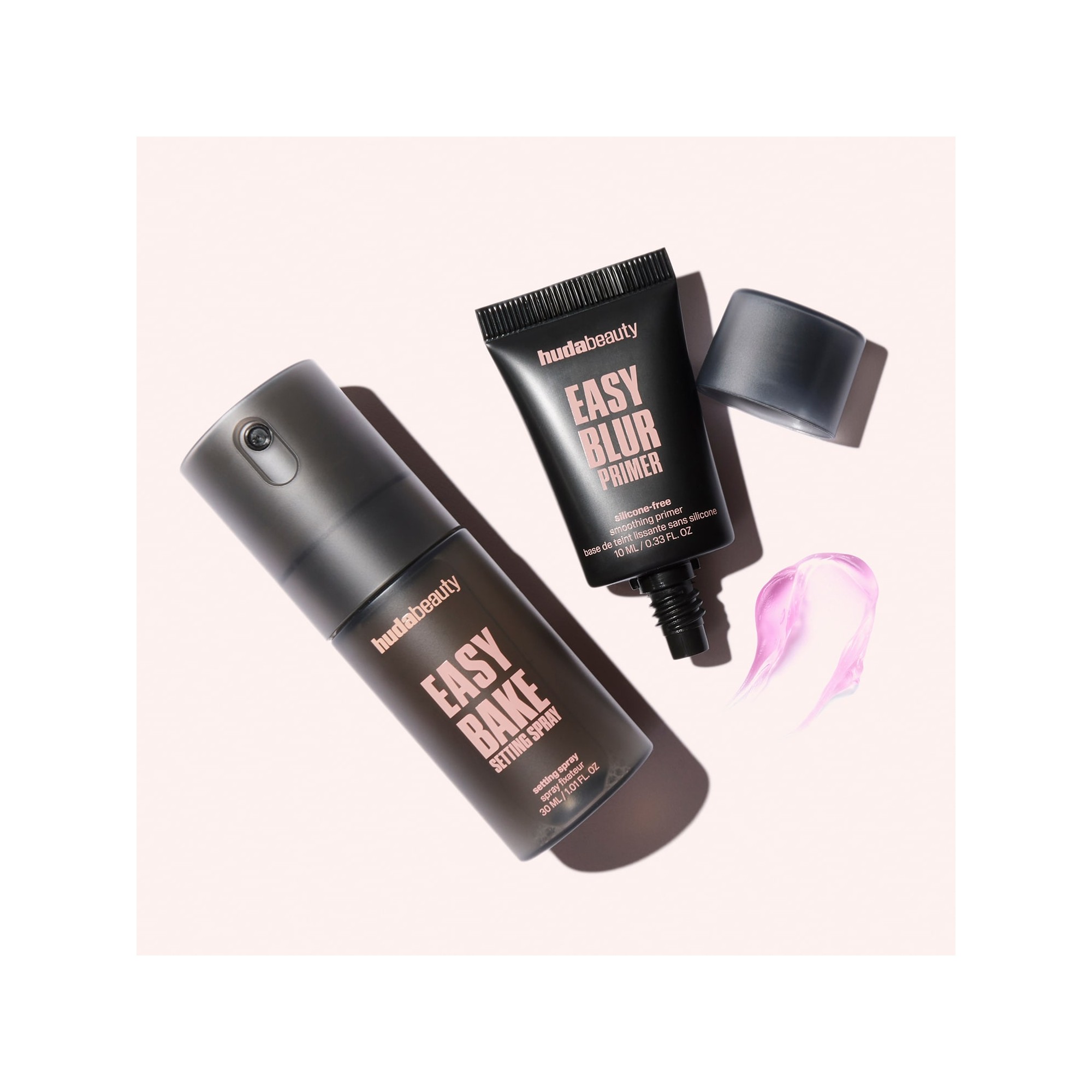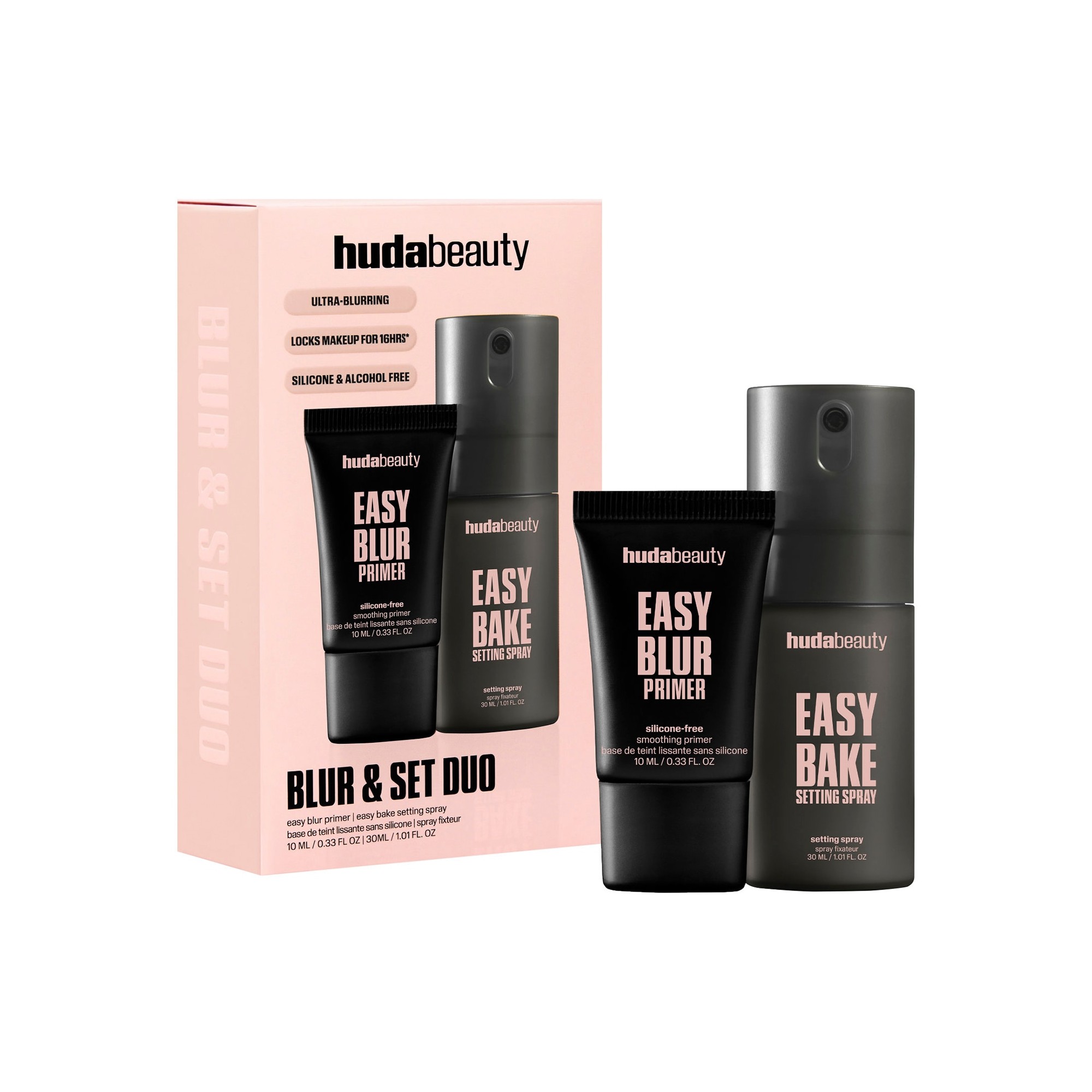 Huda Beauty Mini Blur & Set Duo est un coffret qui réunit deux indispensables en format voyage qui révolutionne le maquillage du teint grâce à ses formules floutantes et fixantes, pour un fini lisse et naturel, digne d’un filtre photo. Le primer, à la texture gelée rose, prépare la peau avant le fond de teint en lissant visiblement les pores et les irrégularités. Enrichi en polymères floutants, en glycérine et en extrait de chardon-Marie, il nourrit la peau tout en assurant une meilleure tenue du maquillage. Pour fixer le tout jusqu’à 16 heures, le spray fixant offre une brume fine à effet « make-up melting » qui fusionne avec la peau. Sa formule contient de l’acide hyaluronique pour renforcer la barrière cutanée et de l’argile minérale pour absorber l’excès de sébum, garantissant un teint frais, équilibré et parfaitement fixé tout au long de la journée.
