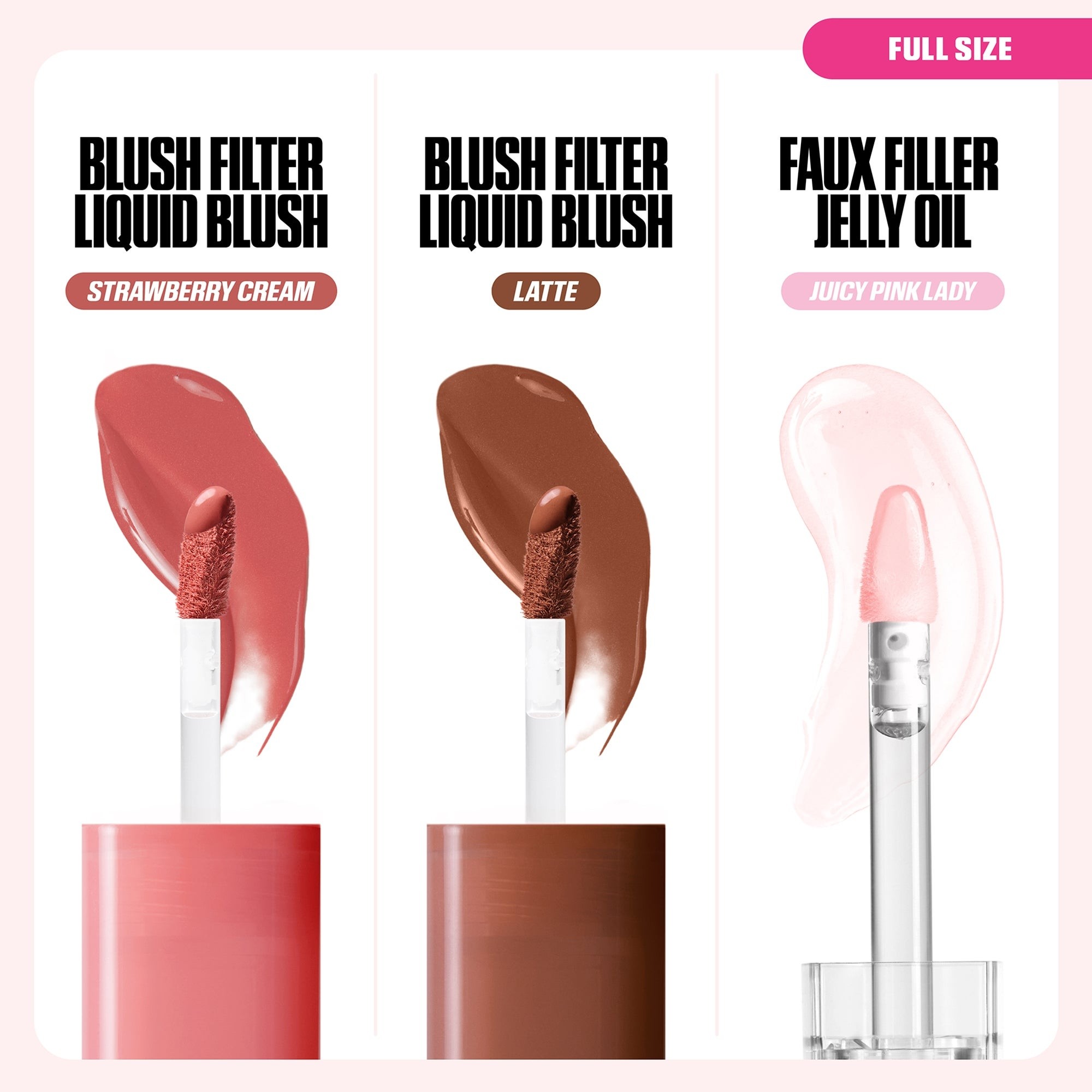 | Liste Des Ingrédients | Blush Filter Liquid Blush in ‘Latte' (4.5ml): Hydrogenated Polyisobutene, Hydrogenated Poly(c6-14 Olefin), Mica, Calcium Titanium Borosilicate, Octyldodecanol, Diisostearyl Malate, Trimethylsiloxysilicate, Isododecane, Hydrogenated Styrene/Isoprene Copolymer, Silica, Disteardimonium Hectorite, Dextrin Palmitate, Sorbitan Sesquioleate, Phenoxyethanol, Propylene Carbonate, Fragrance/Parfum, Triethoxycaprylylsilane, Tin Oxide, Aluminum Hydroxide, Polyhydroxystearic Acid, Pentaerythrityl Tetra-di-t-butyl Hydroxyhydrocinnamate, Tocopherol, Vanillin, Titanium Dioxide/Ci 77891, Iron Oxides/Ci 77491, Iron Oxides/Ci 77492, Iron Oxides/Ci 77499, Red 7 Lake/Ci 15850.Blush Filter Liquid Blush in ‘Strawberry Cream' (4.5ml): Hydrogenated Polyisobutene, Hydrogenated Poly(c6-14 Olefin), Mica, Calcium Titanium Borosilicate, Diisostearyl Malate, Octyldodecanol, Trimethylsiloxysilicate, Isododecane, Hydrogenated Styrene/Isoprene Copolymer, Silica, Disteardimonium Hectorite, Dextrin Palmitate, Sorbitan Sesquioleate, Phenoxyethanol, Propylene Carbonate, Fragrance/Parfum, Triethoxycaprylylsilane, Aluminum Hydroxide, Tin Oxide, Polyhydroxystearic Acid, Pentaerythrityl Tetra-di-t-butyl Hydroxyhydrocinnamate, Tocopherol, Vanillin, Titanium Dioxide/Ci 77891, Iron Oxides/Ci 77491, Red 7 Lake/Ci 15850, Blue 1 Lake/Ci 42090.Faux Filler Jelly Lip Oil in ‘Juicy Pink Lady’ (3.9ml): Polyglyceryl-2 Isostearate/Dimer Dilinoleate Copolymer, Caprylic/Capric Triglyceride, Butyrospermum Parkii (Shea) Butter, Bis-behenyl/Isostearyl/Phytosteryl Dimer Dilinoleyl Dimer Dilinoleate, Squalane, Dimer Dilinoleyl Dimer Dilinoleate, Silica, Ethylhexyl Palmitate, Tribehenin, Tocopheryl Acetate, Flavor/Aroma, Passiflora Edulis Seed Oil, Pentaerythrityl Tetra-di-t-butyl Hydroxyhydrocinnamate, Ethylhexylglycerin, Sodium Saccharin, Sorbitan Isostearate, Lactic Acid, Palmitoyl Tripeptide-1, Titanium Dioxide/Ci 77891, Red 7 Lake/Ci 15850, Red 6 Lake/Ci 15850. |