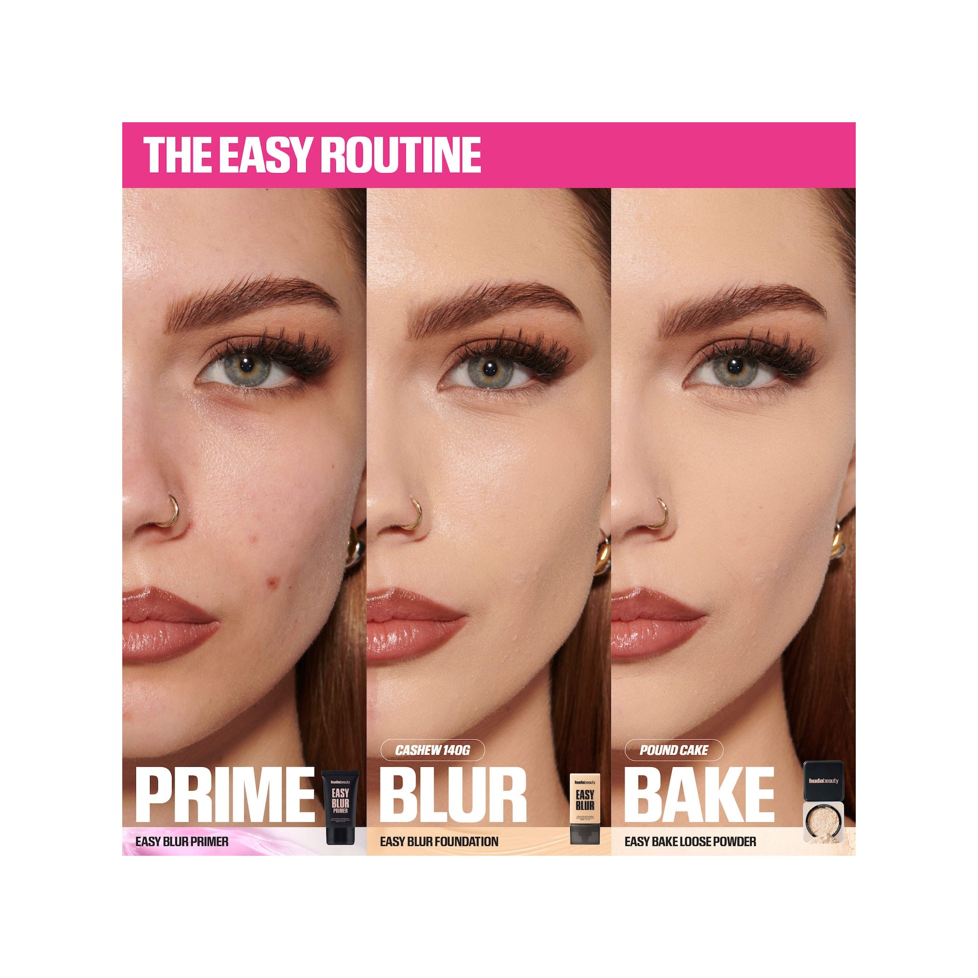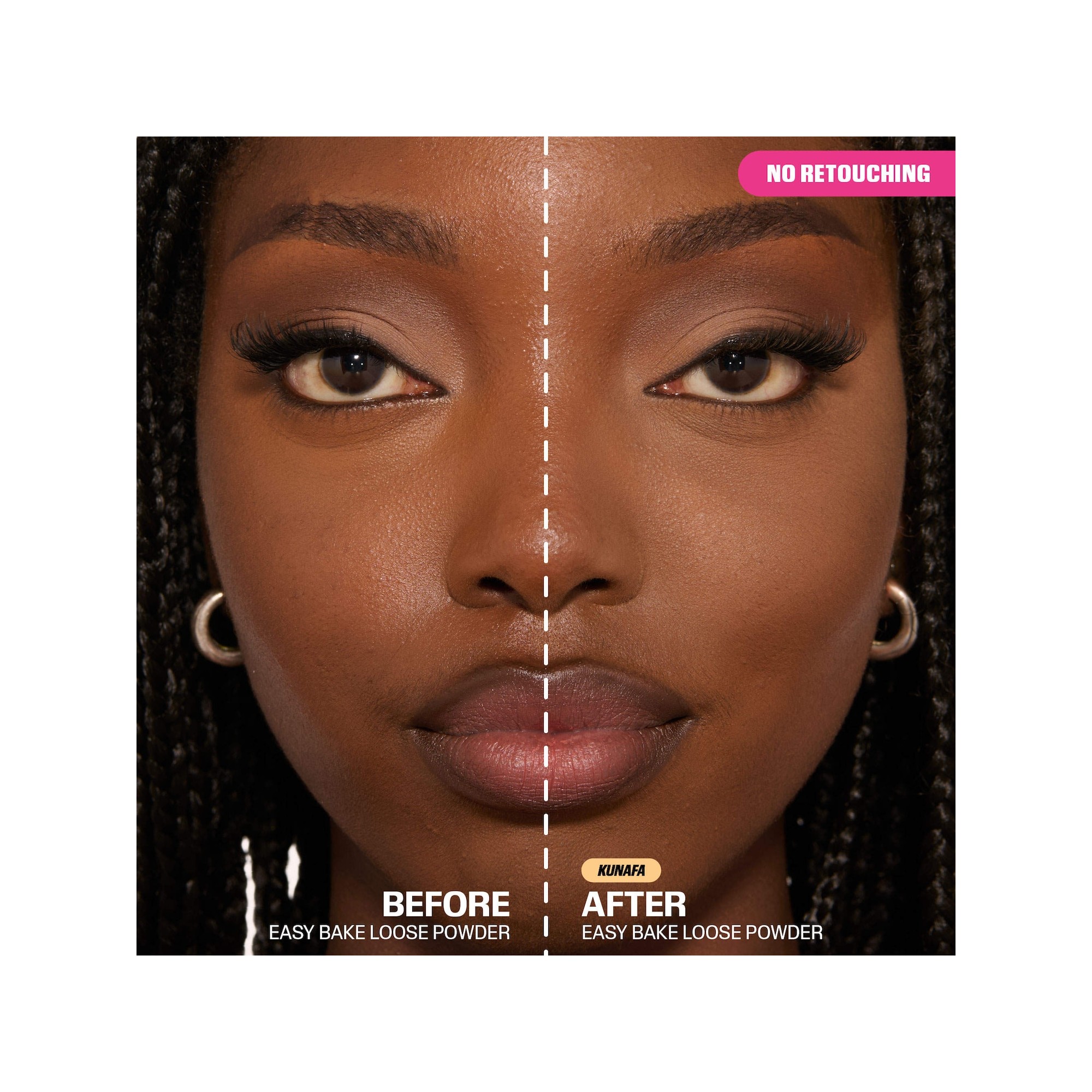Huda Beauty Easy Bake Blurring Loose Baking & Setting Powder est une poudre fixatrice légèrement pigmentée et ultra-illuminatrice qui permet de cuire (bake) et fixer le maquillage, floute les ridules et les pores, et assure une tenue jusqu’à 18 heures avec un fini effet airbrush. Sa formule longue tenue, non comédogène et sans effet flashback se fond parfaitement dans la peau avec un fini mat qui contrôle la brillance et maintient le maquillage en place toute la journée. Enrichie en vitamine E, la poudre aide à corriger subtilement le teint, illuminer et mettre en valeur les contours du visage, tout en laissant un voile de couleur translucide sur la peau. La vitamine E hydrate et renforce la barrière cutanée pour une application plus lisse, l’amidon de riz absorbe l’excès de sébum, et la poudre micronisée permet de superposer les couches sans effet pâteux. Fixez votre maquillage avec le Easy Bake Loose Powder and Mini Puffs Bundle de Huda Beauty, votre secret pour un fini impeccable et longue tenue. Disponible dans une variété de teintes correctrices et adaptées aux carnations, cette poudre libre finement moulue floute les ridules, contrôle la brillance et fixe le maquillage avec un éclat naturel et lumineux. Enrichie en vitamine E, elle nourrit et adoucit la peau au fil du temps, tandis que sa formule polyvalente sublime tous les teints.