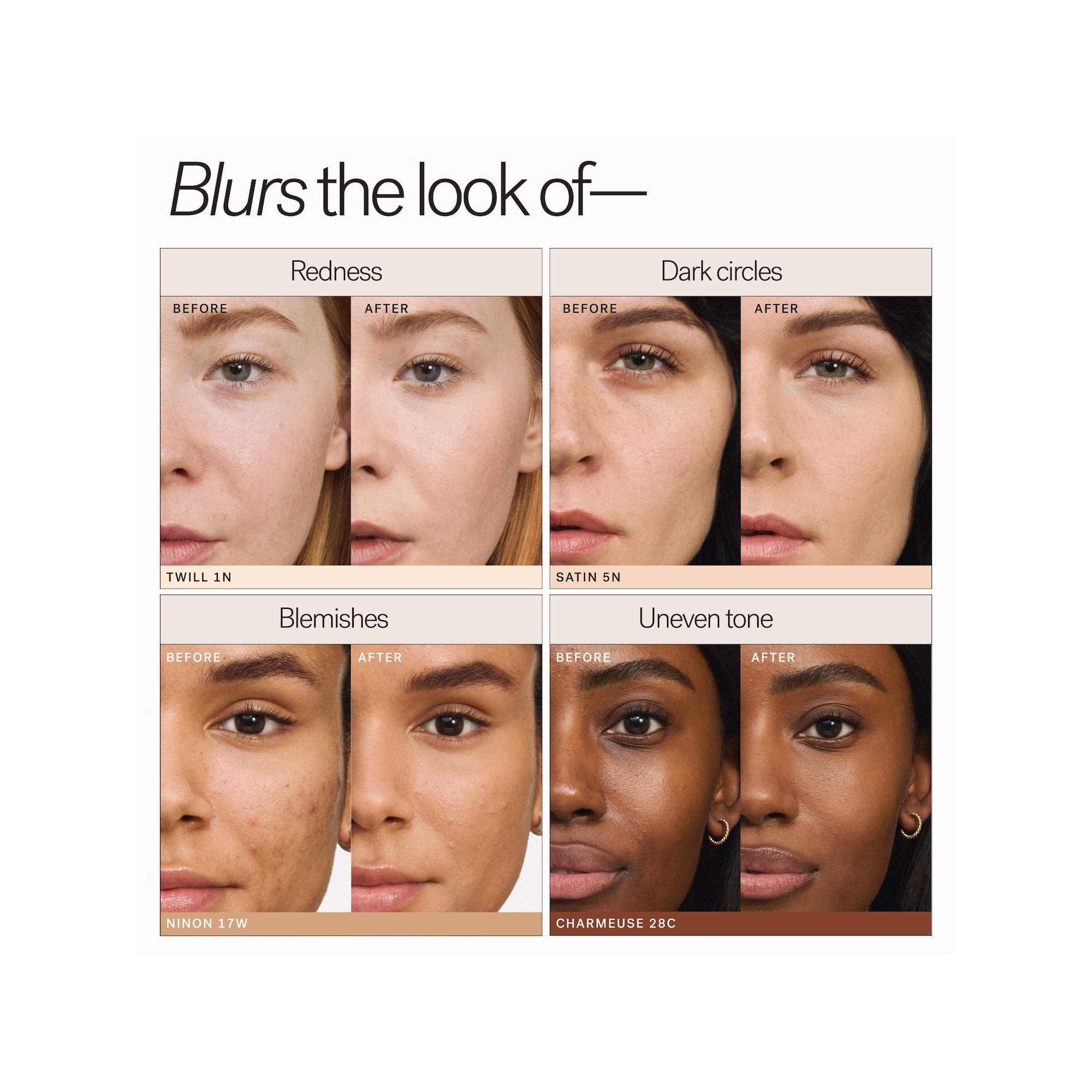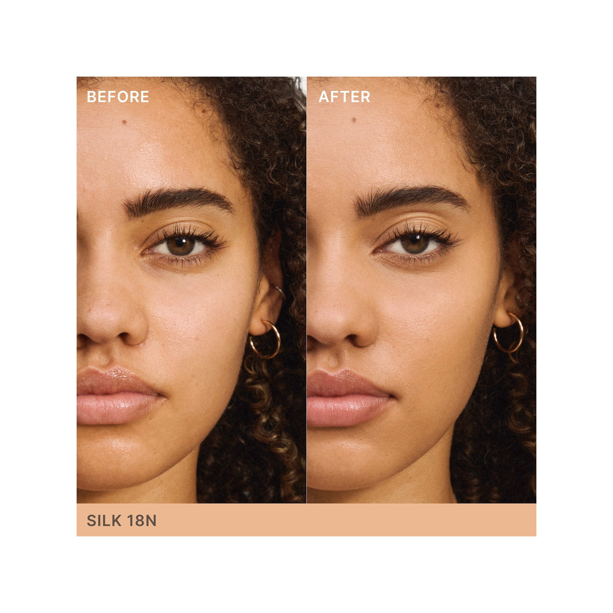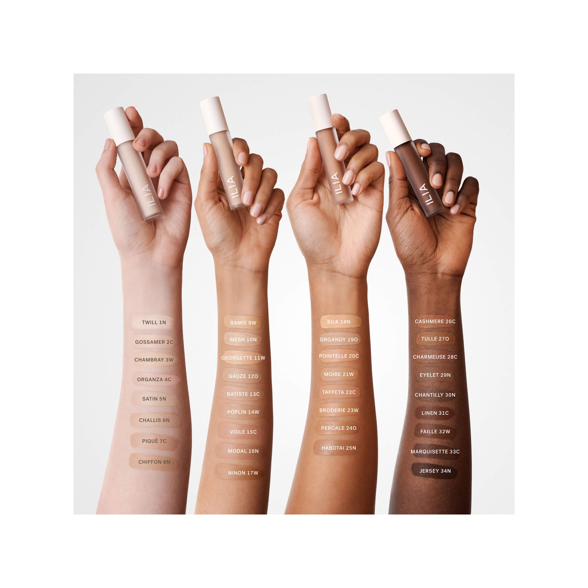 Ilia Skin Blur Serum Concealer with 12-Hour Wear est un anti-cernes ultra léger à effet floutant qui se fixe seul pour une tenue de 12 heures résistante aux plis. Il est végan, adapté aux peaux sensibles et non comédogène. La recherche de l’anti-cernes parfait est terminée. Cette formule clean auto-fixante fusionne parfaitement avec la peau, offrant une couvrance moyenne, une tenue de 12 heures et un fini naturel flouté. Il est cliniquement prouvé qu’il aide à raffermir la peau et à réduire l’apparence des rides au fil du temps, pour une peau visiblement améliorée à chaque application. L’extrait de fenouil marin, une alternative au rétinol issue de sources durables, illumine, raffermit et lisse visiblement la peau. La caféine encapsulée provenant des grains de café aide à décongestionner et à réveiller visiblement les yeux fatigués. Les peptides Matrixyl 3000 Glyx soutiennent l’élasticité de la peau et réduisent l’apparence des ridules et des rides. Améliorez l'apparence de votre peau jour après jour avec le correcteur sérum floutant Ilia Skin Blur. Ce correcteur floutant contribue à raffermir la peau et à atténuer l'apparence des rides. Offrant une couvrance moyenne et une tenue jusqu'à 12 heures, il laisse un fini flouté et naturel qui se fixe de lui-même : inutile d'appliquer de la poudre. Formulé avec des ingrédients sains, cet anti-cernes possède une texture liquide ultra-légère qui procure une sensation de sérum sur la peau. Résistant aux plis et enrichi en actifs de soin, ce produit de maquillage est doté d'un applicateur en forme de goutte pour une application facile sur les cernes, les rougeurs et les imperfections. Végan et non comédogène, le correcteur sérum Ilia Skin Blur convient aux peaux sensibles.