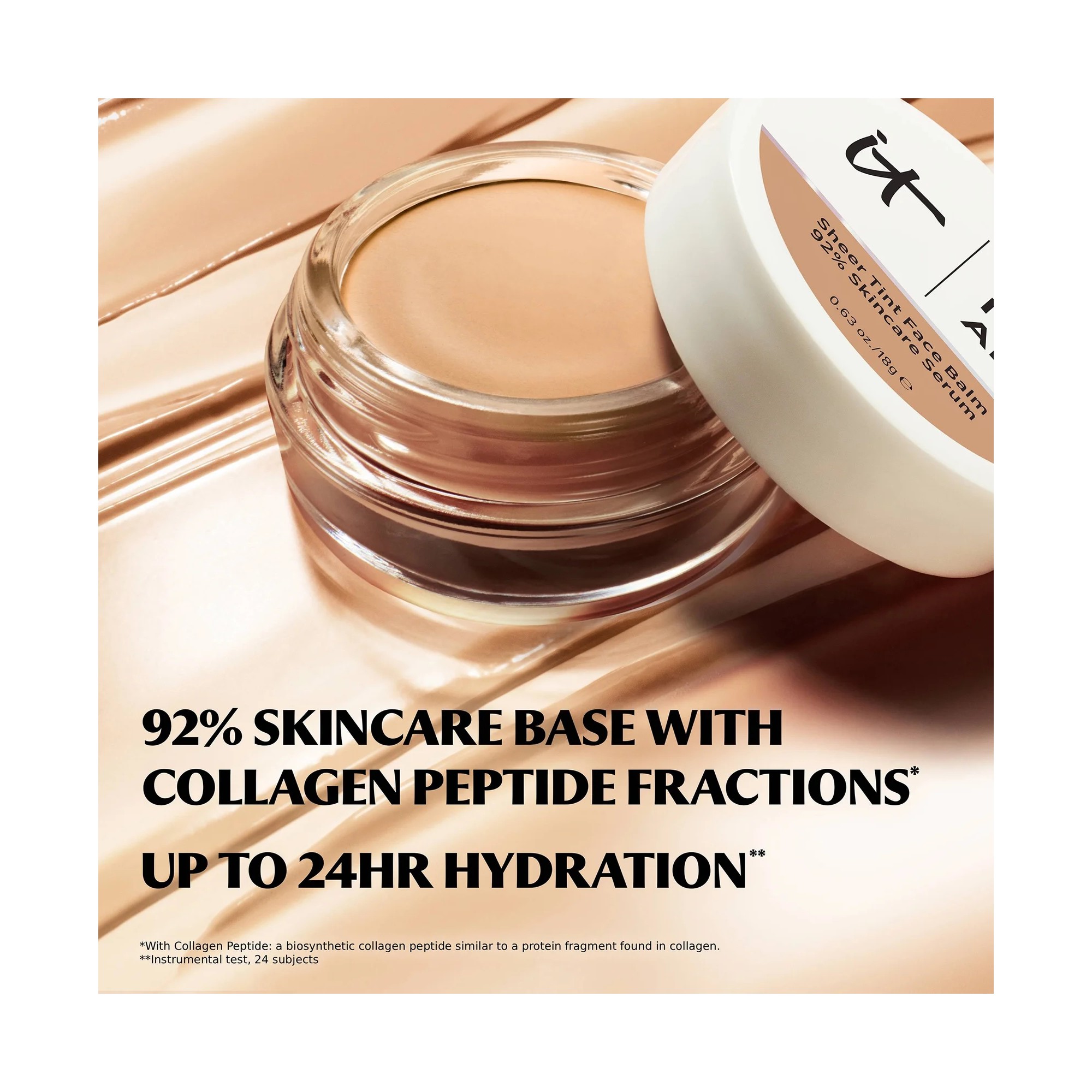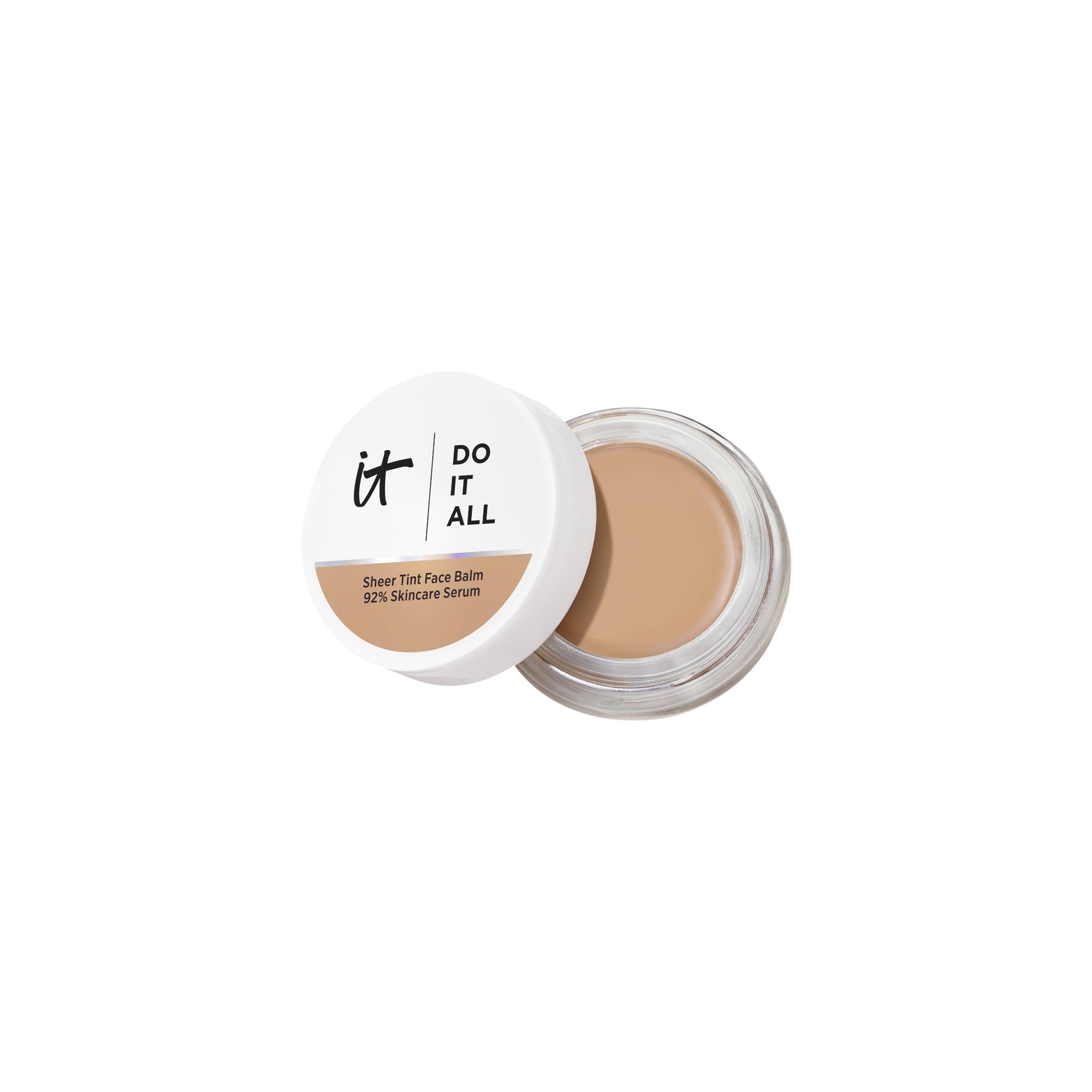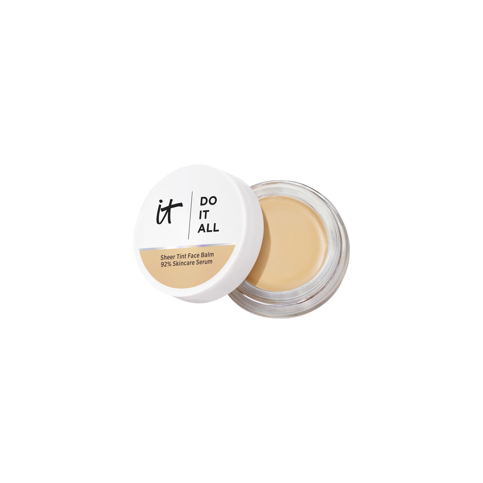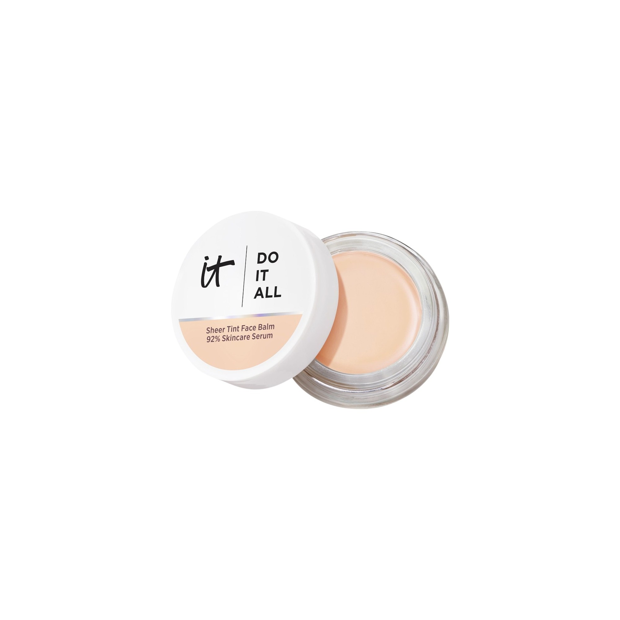 IT Cosmetics Do It All Sheer Face Tint Balm est un baume léger et multi-usage qui offre un éclat naturel et lumineux avec une couvrance légère et modulable, pour un résultat sans effort et impeccable. Découvrez votre nouvel essentiel hybride soin et maquillage composé à 92 % d’ingrédients soin, dont des peptides de collagène, de l’acide hyaluronique et de la vitamine E, il améliore visiblement la texture de la peau, sa fermeté et son hydratation au fil du temps. Sa texture innovante, semblable à un sérum solide, fond parfaitement dans la peau pour un fini lisse et lumineux, sans effet lourd ni matière. Disponible dans une variété de teintes, il s’adapte facilement à de nombreuses carnations, floute les imperfections et sublime la beauté naturelle. Idéal pour un coup d’éclat rapide, de jour comme de nuit, ce baume fait véritablement tout.