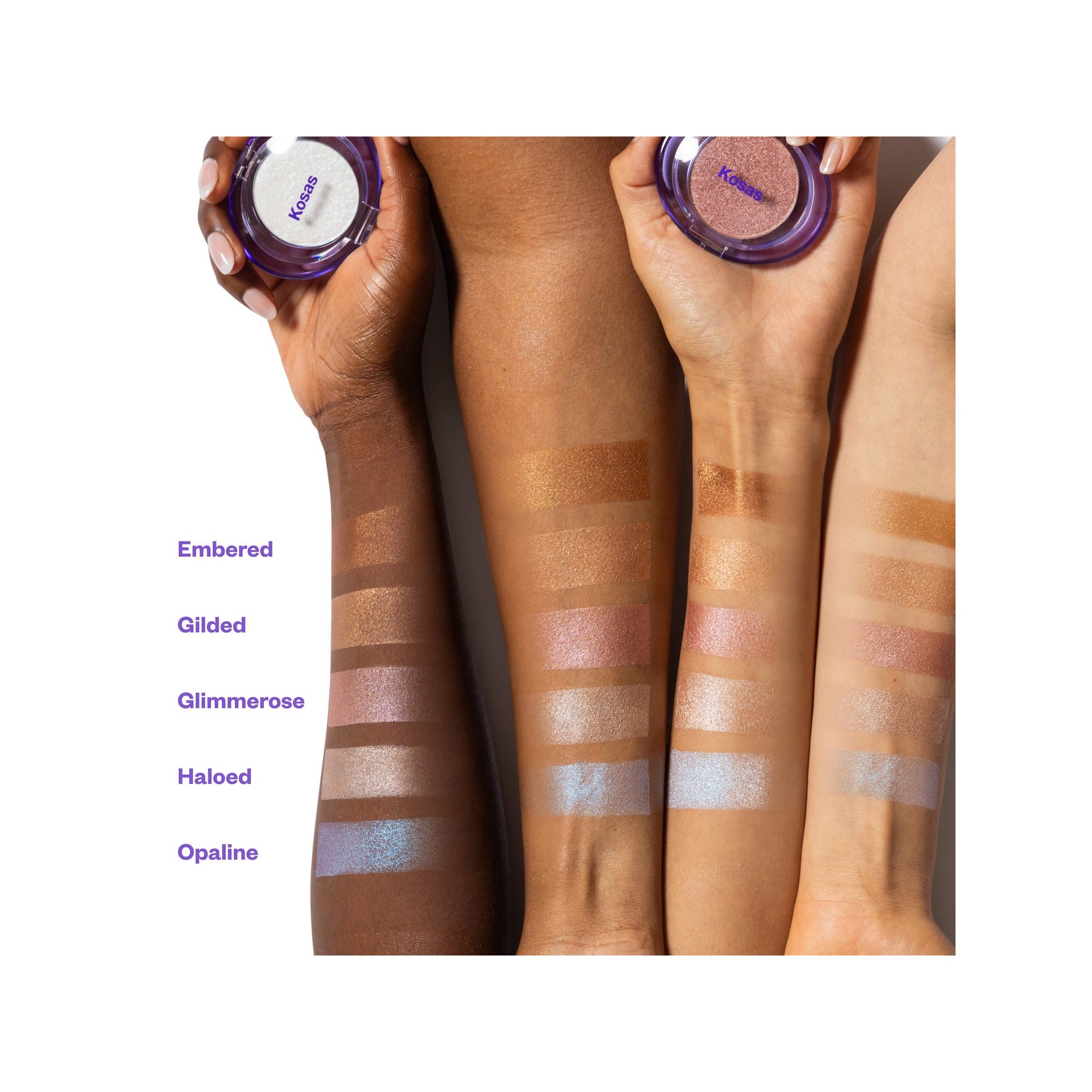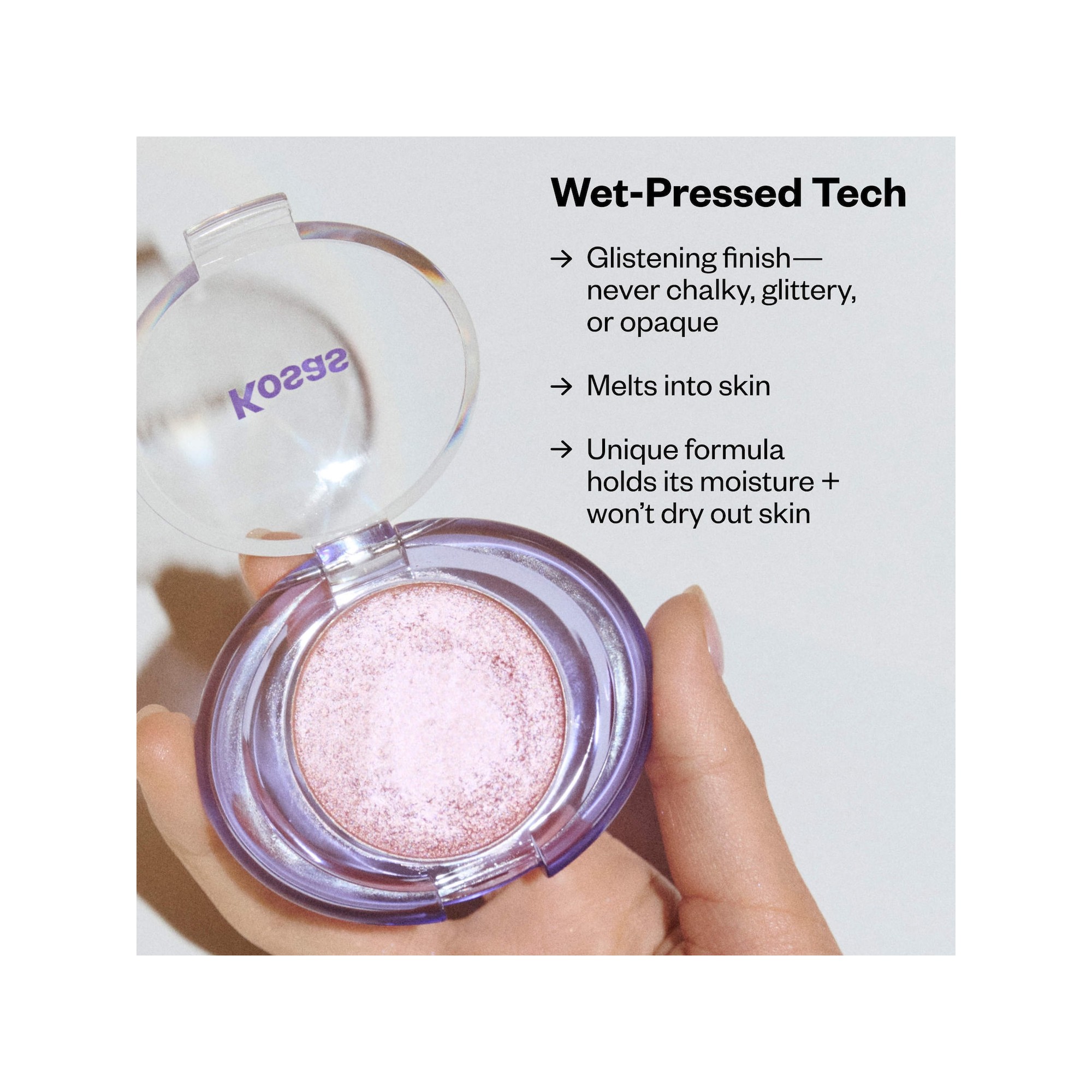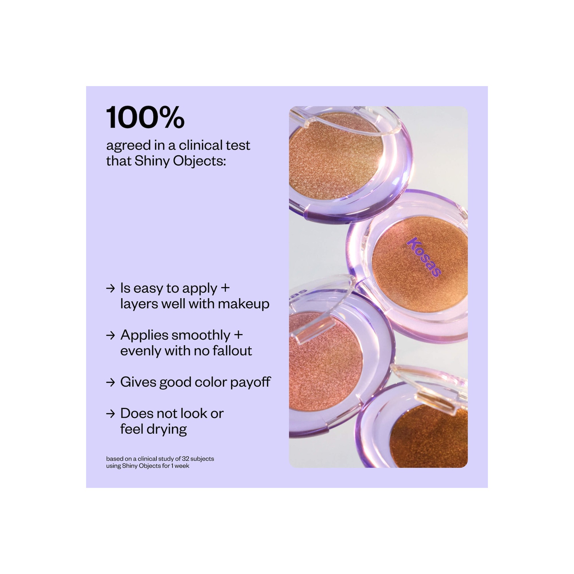 Kosas Shiny Objects Wet Glisten Highlighter Powder for Face and Eyes est un enlumineur en poudre pressée humide qui fond sur la peau pour un fini transparent et lumineux sur le visage et les yeux. Sa technologie innovante retient l’hydratation pour révéler un éclat naturel, sans effet poudreux ni particules scintillantes qui tombent. Cliniquement testé, cet highlighter aide à améliorer la douceur de la peau. Il s’applique partout et se fond facilement : au doigt pour une brillance intense ou au pinceau pour un éclat plus diffus. Il est également formulé sans talc ni silicone. Révélez un éclat inédit avec le Kosas Shiny Objects Wet Glisten Powder Highlighter, un illuminateur nouvelle génération qui se fond parfaitement à la peau pour un fini lumineux et transparent. Grâce à sa technologie wet-pressed innovante, la formule préserve l’hydratation et offre une luminosité éclatante sans effet craquelé ni chute de matière. Idéal sur les pommettes, les paupières, l’arcade sourcilière ou même les clavicules, il permet une application polyvalente avec une intensité modulable qui se superpose facilement au maquillage. Enrichi en fruit de la passion, il hydrate et adoucit la peau tout en sublimant son éclat naturel, avec une sensation légère et confortable. Où que vous l’appliquiez, il sublime votre glow avec un fini frais et lumineux aussi beau qu’agréable à porter.