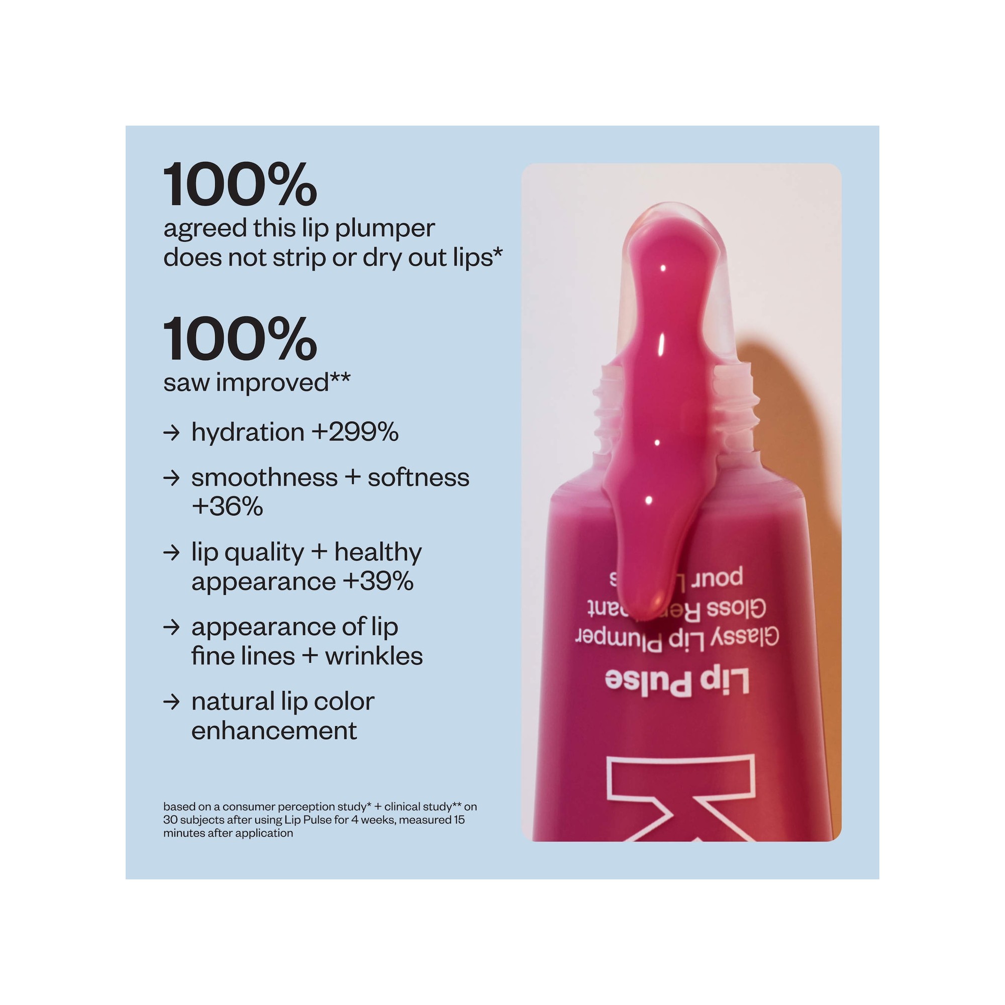 Kosas Lip Pulse Glassy Lip Plumper Gloss est un repulpant pour les lèvres clean à fort impact, qui offre une sensation chauffante puis rafraîchissante pour des lèvres visiblement plus pulpeuses et ultra-brillantes, sans effet collant ni desséchant. Son complexe repulpant sur mesure procure une expérience sensorielle unique, révélant des lèvres naturellement rosées, plus volumineuses et sublimées par un fini effet miroir. Sa formule peut être réappliquée sans risque et est cliniquement prouvée pour hydrater, lisser et adoucir les lèvres sans les agresser. Les extraits de Capsicum frutescens (piment) et l’huile de racine de gingembre stimulent la circulation sanguine pour un effet repulpant visible, tandis que le menthyl lactate apporte une sensation immédiate de fraîcheur. Le menthyl nicotinate et le vanillyl butyl ether offrent une légère sensation chauffante accompagnée d’une action antioxydante. Découvrez le Lip Pulse Glassy Lip Plumper de Kosas, une formule non collante qui enveloppe les lèvres d’un voile glossy effet verre, tout en lissant et en sublimant leur forme naturelle. Sa texture soyeuse réveille instantanément les lèvres avec un effet frais et lumineux, pour un résultat hydraté, repulpé et éclatant à chaque application.