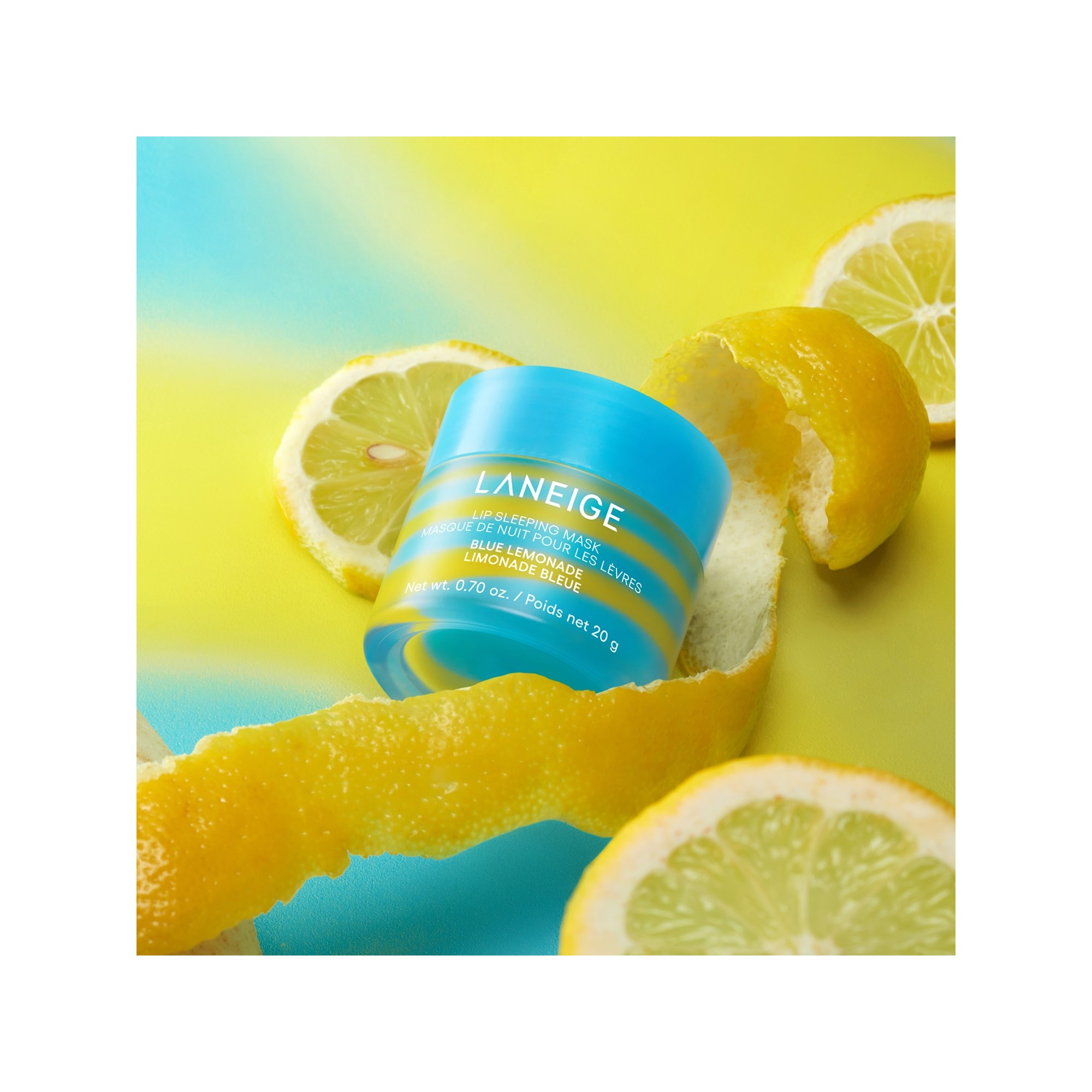 Laneige Lip Sleeping Mask Intense Hydration with Vitamin C Limonade Bleue est un masque de nuit pour les lèvres incontournable à intégrer à sa routine du soir pour hydrater, adoucir et lisser les lèvres en profondeur. Ce soin iconique se réinvente aujourd’hui avec une nouvelle saveur rafraîchissante, pensée pour apporter une sensation de fraîcheur et de confort dès l’application. Véritable allié des nuits réparatrices, il nourrit intensément les lèvres pendant le sommeil pour les rendre visiblement plus douces, lisses et souples au réveil. Sa nouvelle saveur Limonade Bleue séduit par sa douceur sucrée associée à une fraîcheur citronnée irrésistible. Sa texture onctueuse et non collante fond délicatement sur les lèvres, offrant une expérience sensorielle agréable et enveloppante. Enrichi en antioxydants issus d’un Complexe de Baies Rouges et en Vitamine C, ce masque aide à éliminer en douceur les cellules mortes accumulées au fil de la journée, tout en nourrissant intensément les lèvres. L’Huile de Coco complète cette formule en apportant une hydratation prolongée et en protégeant efficacement contre le dessèchement. Son secret réside dans l’association experte de ces actifs — Complexe de Baies Rouges, Vitamine C et Huile de Coco — qui exfolient délicatement, nourrissent et protègent les lèvres tout au long de la nuit. Pour prolonger ses bienfaits en journée, associez-le au Lip Glowy Balm afin de conserver des lèvres douces, hydratées et subtilement brillantes du matin au soir.