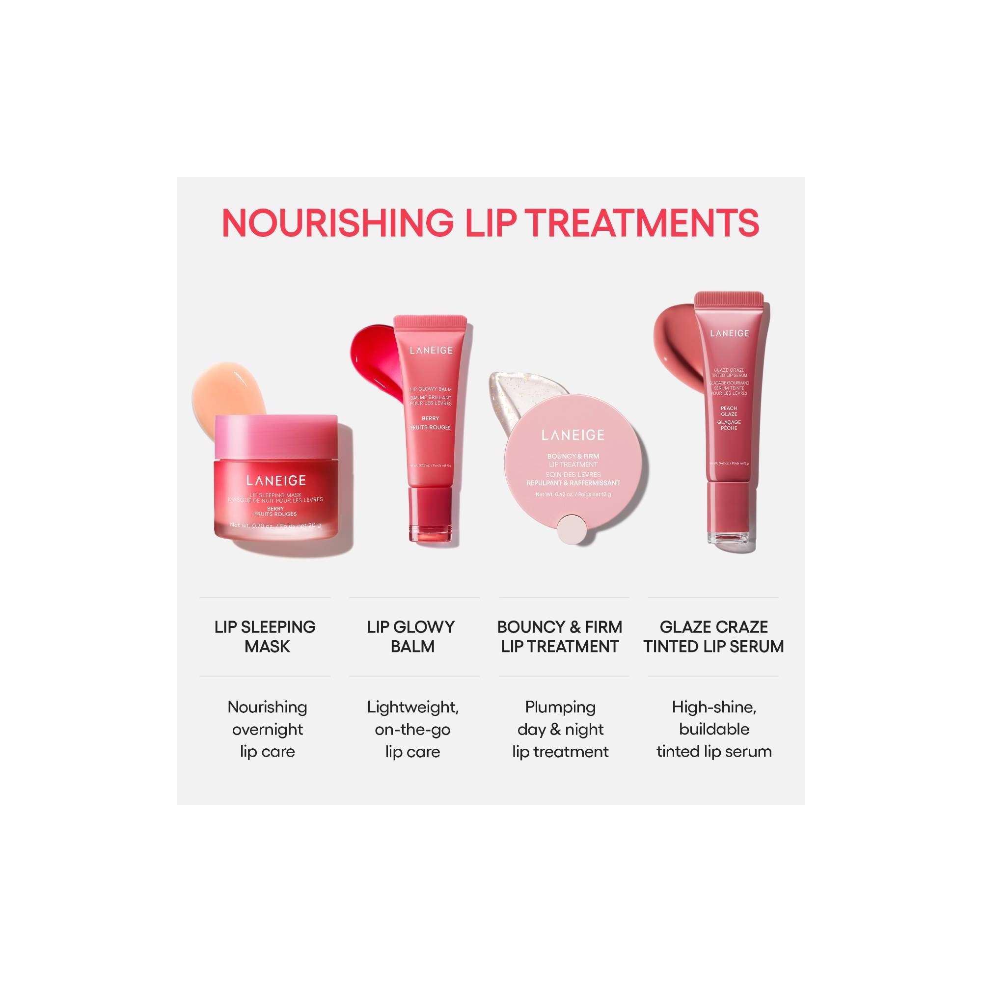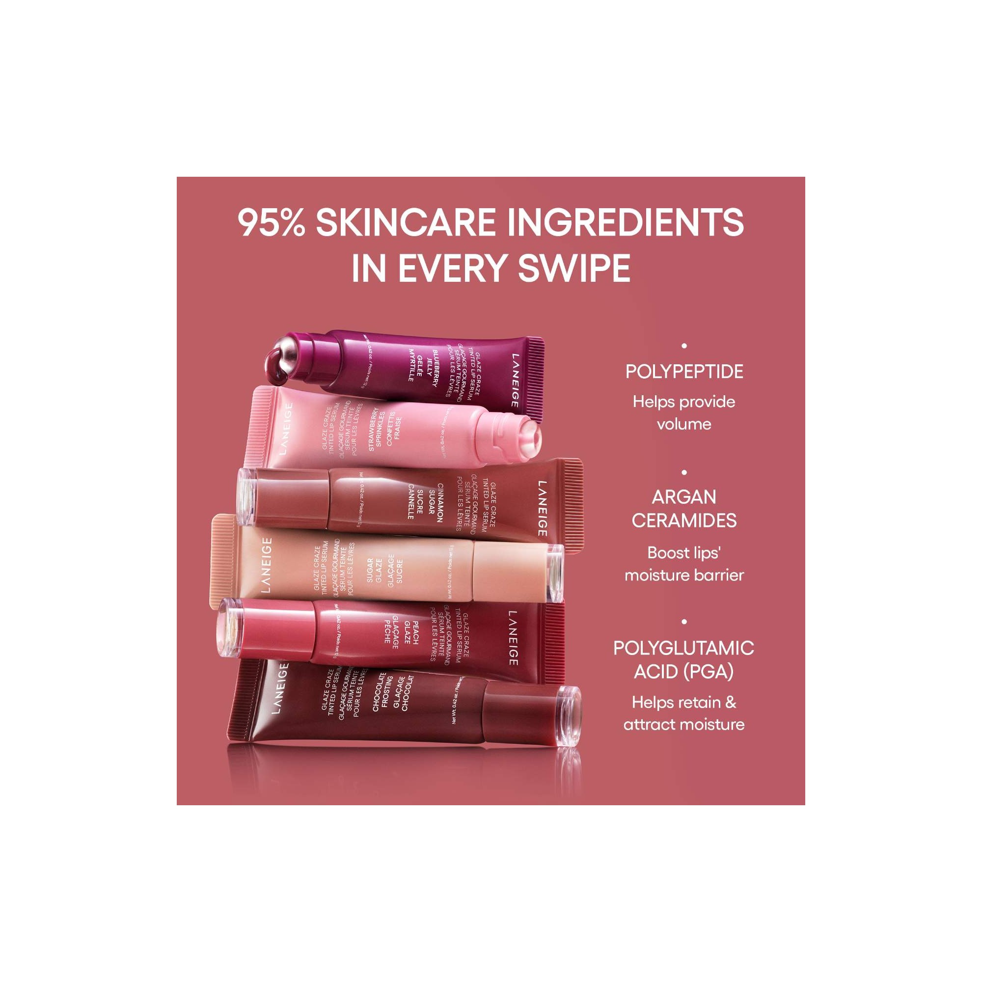 Laneige Glaze Craze Tinted Polypeptide Lip Serum Treatment est un baume à lèvres teinté et hydratant. Imaginez des lèvres douces, hydratées et subtilement teintées, avec une brillance éclatante. Le Glaze Craze Tinted Lip Serum est bien plus qu'un simple baume à lèvres, c'est un essentiel pour des lèvres naturellement sublimes. Grâce à sa texture légère et brillante, il glisse facilement sur vos lèvres pour un fini lumineux et confortable toute la journée. Parfait pour un look naturel ou une touche de couleur plus intense, ce baume s'adapte à toutes vos envies. Dans sa formule il y a des hydratants puissants qui apportent une hydratation longue durée pour des lèvres souples et douces, sans sensation de sécheresse. la teinte modulable est composée de pigments subtils qui rehaussent la couleur naturelle des lèvres pour un effet bonne mine instantané. Sa finition lumineuse offre un éclat naturel, sans effet collant. Le résultat, des lèvres hydratées, nourries et éclatantes, avec une touche de couleur naturelle qui dure toute la journée. C'est l'accessoire beauté parfait pour des lèvres toujours prêtes à briller.