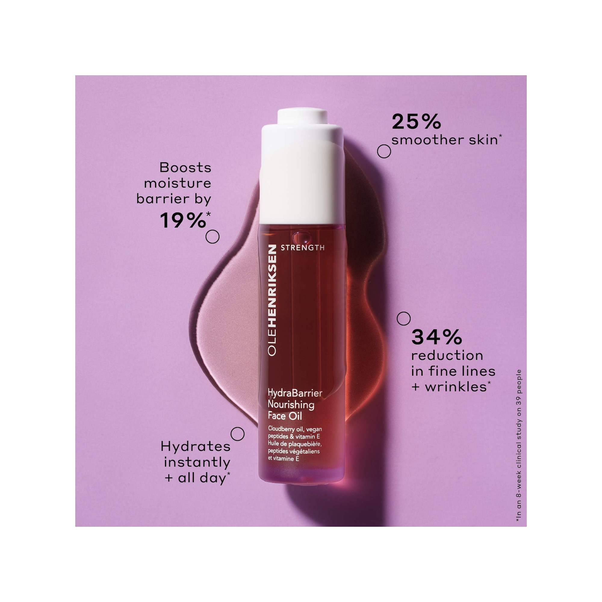 OleHenriksen Plumped Up Peptides Skincare Set est un trio de soins enrichis en peptides pour une peau visiblement plus ferme, rebondie et hydratée, accompagné d’un baume à lèvres en édition limitée pour des lèvres plus pulpeuses. Le Plumped Up Peptides Skincare Set d’Ole Henriksen aide à renforcer la barrière cutanée et à restaurer l’élasticité naturelle de la peau. Commencez par la Strength Peptide Boost Moisturizer, une crème hydratante intense qui aide à raffermir et à fortifier la peau tout en améliorant sa souplesse. Poursuivez avec l’HydraBarrier Nourishing Face Oil, une huile nourrissante qui scelle l’hydratation et optimise les bienfaits des soins précédents. Terminez avec le Pout Preserve Peptide Lip Treatment en teinte Grape Fizz, une formule en édition limitée qui repulpe les lèvres et offre une hydratation durable. Grâce aux peptides, la peau gagne en tonicité et en élasticité, tandis que les céramides retiennent l’humidité pour renforcer la barrière cutanée. Le beurre de kokum et le beurre de mangue nourrissent et adoucissent les lèvres pour un fini lisse et soigné. Idéal pour un teint frais et repulpé, ce coffret est votre rituel tout-en-un pour une peau éclatante de santé.