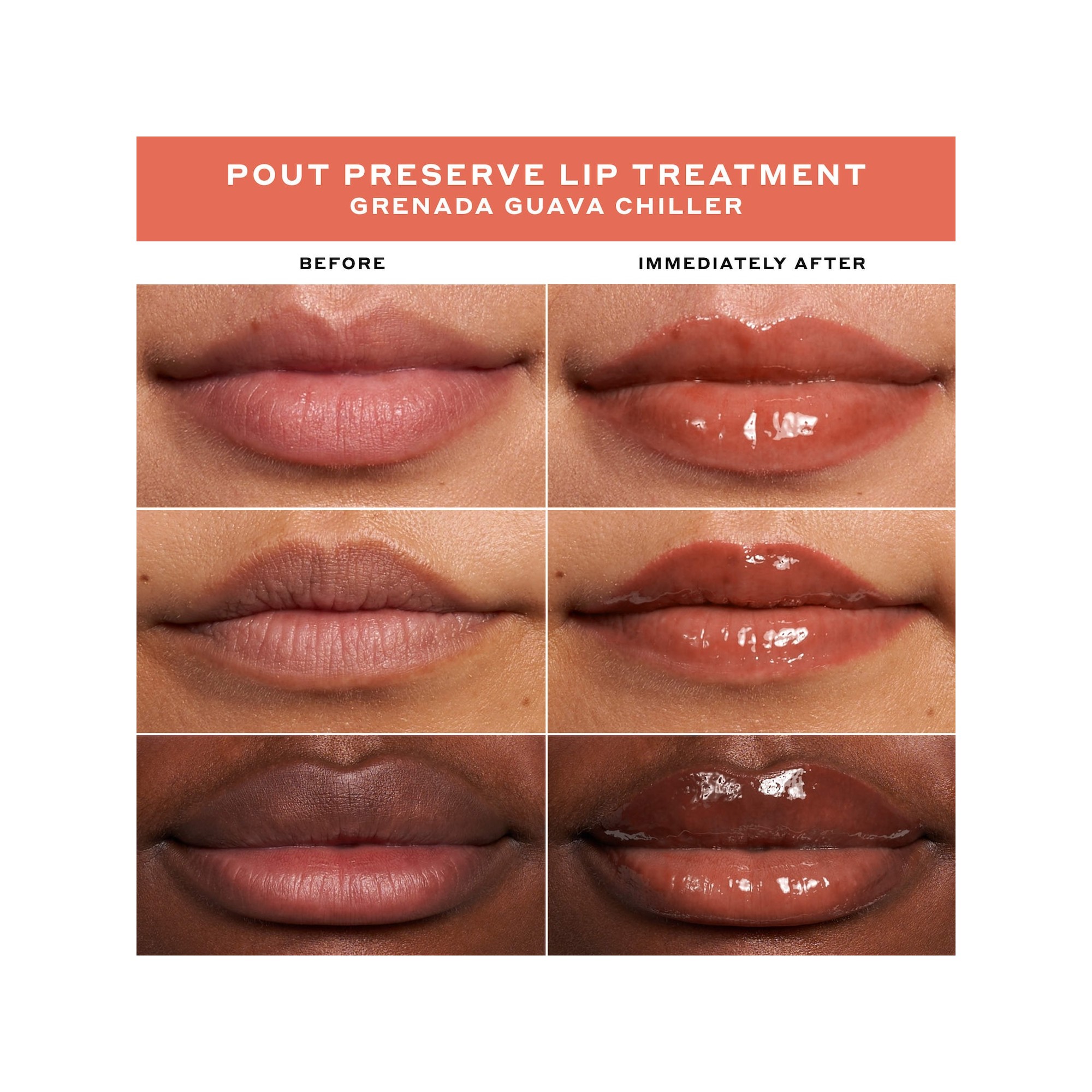 OleHenriksen Pout Preserve Chillers Peptide Lip Treatment est un soin hydratant pour les lèvres aux peptides, avec une sensation rafraîchissante, décliné en trois nouvelles teintes tropicales en édition limitée pour des lèvres visiblement plus pulpeuses en seulement une semaine. Offrez à vos lèvres une pause fraîcheur avec un effet repulpant immédiat. Ces soins ultra-nourrissants en édition limitée procurent une sensation instantanée de fraîcheur tout en apportant une hydratation longue durée et des lèvres visiblement plus volumineuses en une semaine. Formulés avec des peptides spécifiques aux lèvres, des beurres de kokum et de graines de mangue, ainsi que de l’huile de baie arctique (cloudberry), ils lissent visiblement les ridules et aident à restaurer le volume naturel au fil du temps. Leur texture glossy, légère et non collante glisse facilement sur les lèvres, avec trois teintes inspirées des tropiques et des parfums fruités pour une touche rafraîchissante immédiate. Les peptides aident à rendre les lèvres plus pleines et mieux définies, tandis que les beurres de kokum et de mangue nourrissent et adoucissent intensément. L’huile de cloudberry hydrate en profondeur et assouplit les lèvres. Découvrez le Chillers Pout Preserve Lip Treatment de Ole Henriksen, un soin en édition limitée pensé pour sublimer les lèvres avec un fini brillant, légèrement teinté et confortable. Idéal pour une bouche pulpeuse, lisse et éclatante de fraîcheur.
