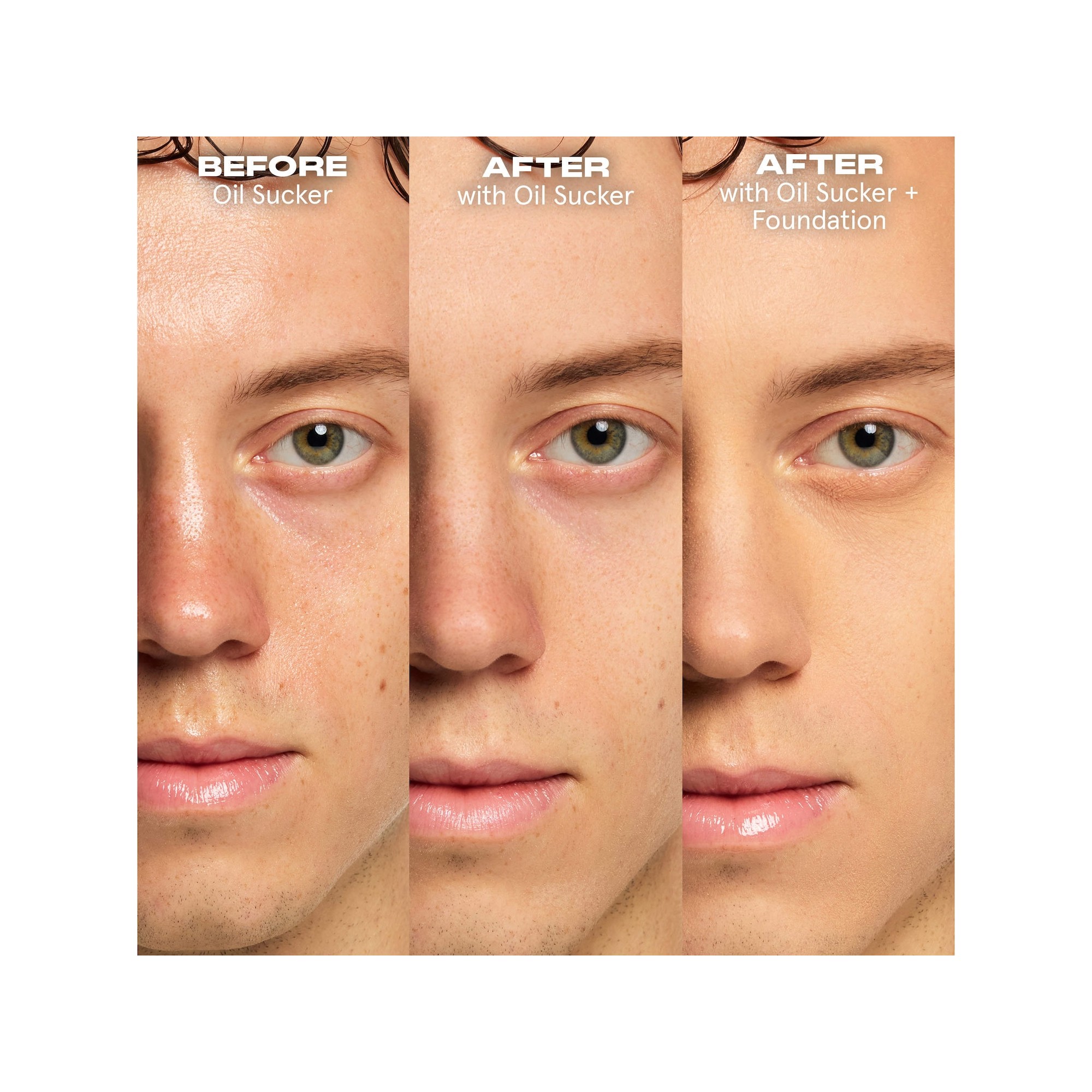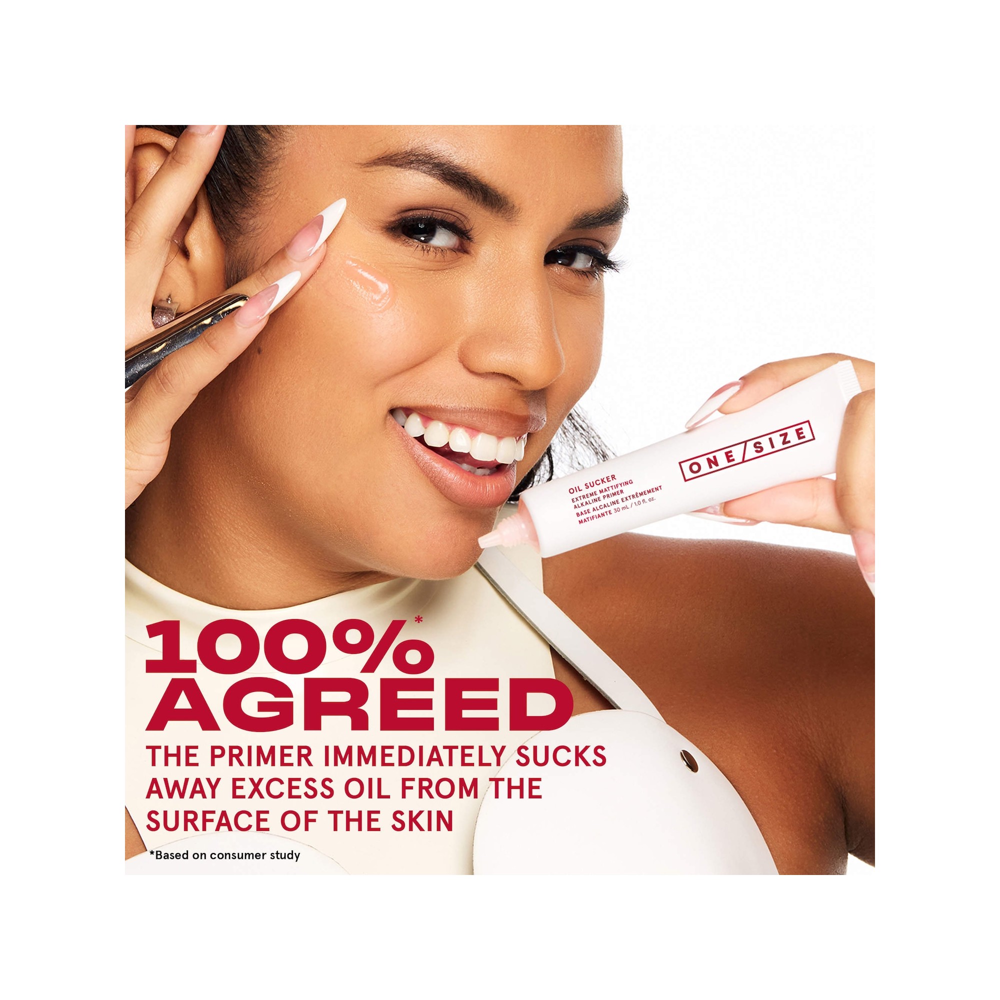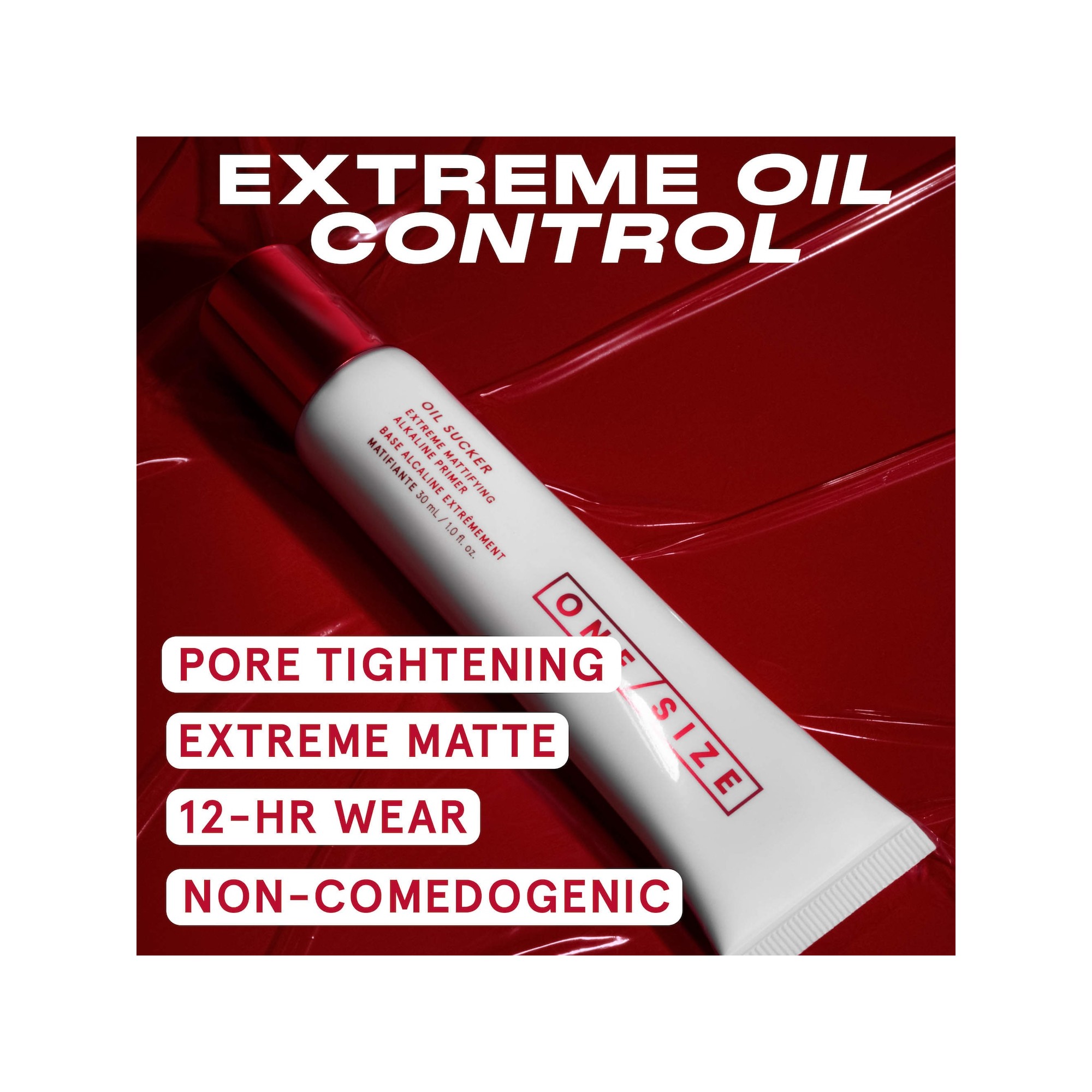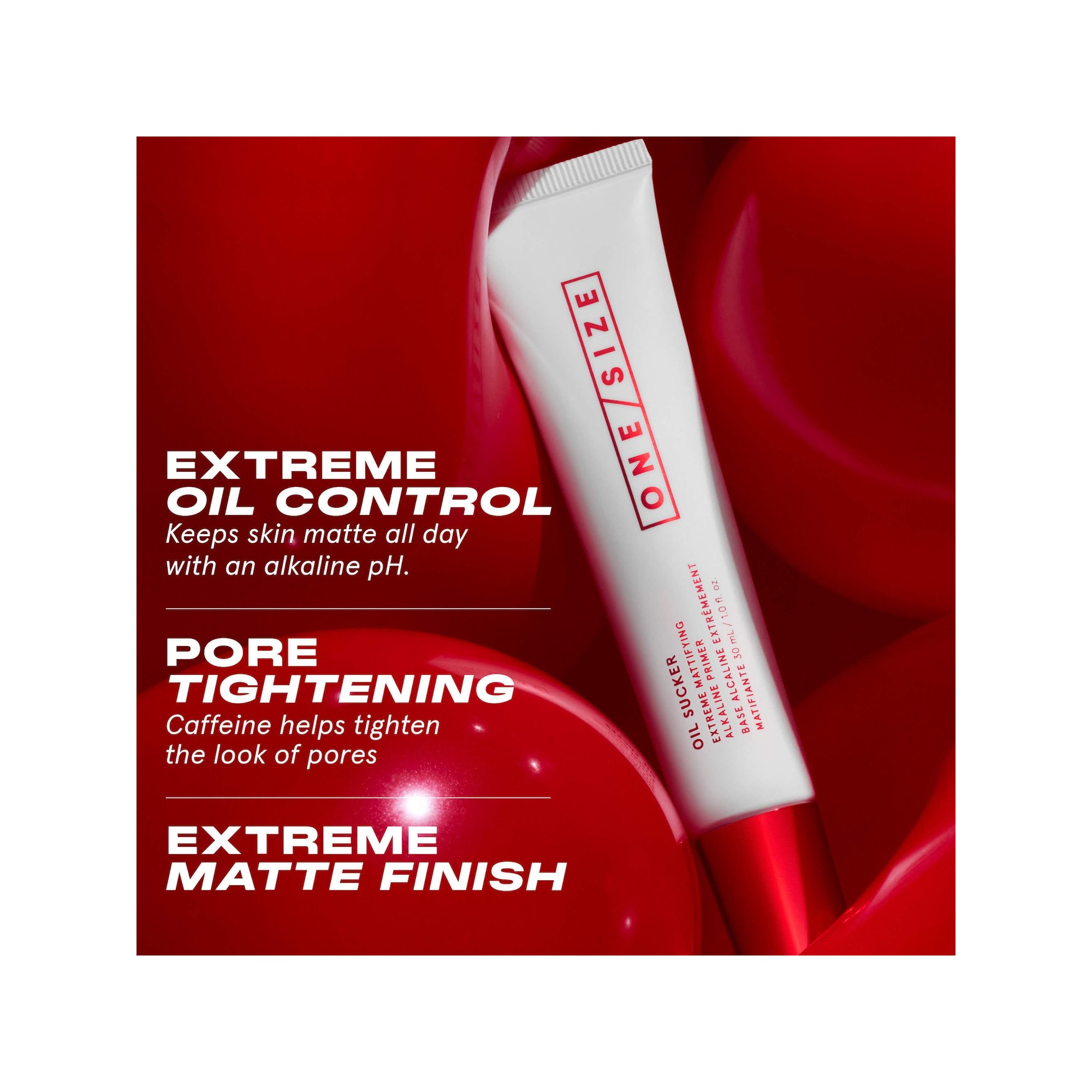 One/Size By Patrick Starrr Oil Sucker Extreme Mattifying Alkaline Primer est une base de teint ultra-matifiante qui offre un contrôle clinique du sébum et un effet tenseur visible pour créer une base lisse et prolonger la tenue du maquillage. Sa formule alcaline contient de la caféine à haute concentration qui resserre instantanément l’apparence des pores et procure une sensation de lift immédiate pour un fini flouté et sculpté. Ce primer non comédogène absorbe l’excès de sébum tout en offrant un fini mat extrême et en resserrant visiblement les pores. Il prolonge la tenue du maquillage jusqu’à 12 heures et est testé dermatologiquement. La formulation alcaline aide à éliminer l’excès de sébum à la surface de la peau, tandis que le ginseng rouge coréen revitalise l’apparence du teint et que la micro-acide hyaluronique prévient le dessèchement excessif. Les résultats visibles sont une peau ultra-mate, lissée et affinée, avec un maquillage longue tenue, sans effet flash et une réduction de la brillance tout au long de la journée. Le produit est non comédogène et ne bouche pas les pores. Le pH alcalin absorbe l’excès de sébum pour équilibrer et matifier la peau. Le complexe minéral silicate à 15 % resserre visiblement l’apparence des pores, tandis que la micro-acide hyaluronique repulpe et prévient le dessèchement.
