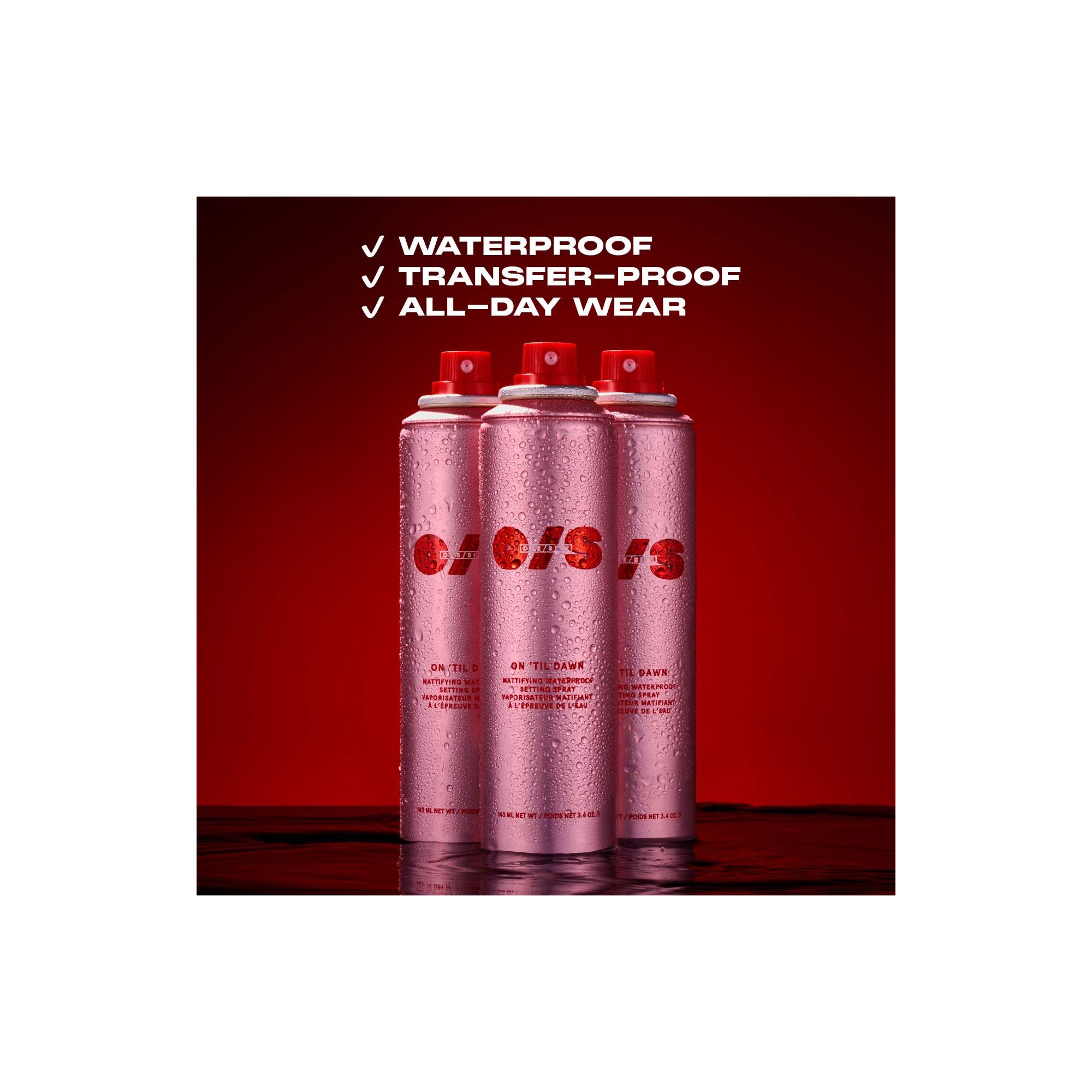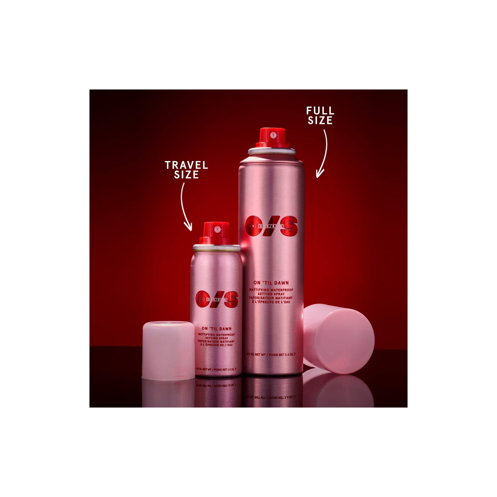 One/Size By Patrick Starrr On 'Til Dawn Mattifying Waterproof Setting Spray est une brume fixatrice matifiante waterproof qui reste imperméable jusqu'à 16 heures, doté d’une formule qui ne transfère pas, avec extrait de thé vert et hamamélis absorbant l’huile. Découvrez le best-seller viral : ce spray fixateur ultra-léger et matifiant offre une formule non collante, résistante à l’eau, à la transpiration et aux frottements. Sa formule non comédogène, testée sous contrôle dermatologique, n’obstrue pas les pores, tandis qu’un mélange de polymères fins et respirants fixe le maquillage pour une tenue de niveau supérieur jusqu’à 16 heures. L’extrait de thé vert aide à resserrer les pores. L’hamamélis absorbe l’excès de sébum pour un fini mat et flouté.