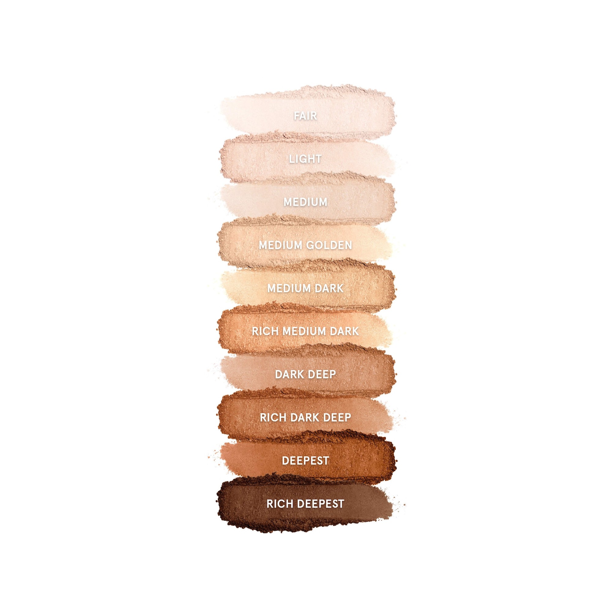 Liste Des Ingrédients | Deepest: Mica, Synthetic Fluorphlogopite, Silica, Caprylic/Capric Triglyceride, Octyldodecyl Stearoyl Stearate, Zea Mays (Corn) Starch, Glyceryl Caprylate, Ethylhexylglycerin, Dehydroacetic Acid, Xanthan Gum, Cellulose, Tocopherol. May Contain/Peut Contenir (±): Iron Oxides (CI 77491, CI 77492, CI 77499), Yellow 5 Lake (CI 19140), Bismuth Oxychloride (CI 77163)RICH DEEPEST: Mica, Synthetic Fluorphlogopite, Caprylic/Capric Triglyceride, Silica, Octyldodecyl Stearoyl Stearate, Zea Mays (Corn) Starch, Glyceryl Caprylate, Ethylhexylglycerin, Dehydroacetic Acid, Xanthan Gum, Cellulose, Tocopherol. May Contain/Peut Contenir (±): Iron Oxides (CI 77491, CI 77492, CI 77499), Bismuth Oxychloride (CI 77163), Red 7 (CI 15850).FAIR, LIGHT, MEDIUM, MEDIUM DARK and RICH MEDIUM DARK: Synthetic Fluorphlogopite, Silica, Mica, Caprylic/Capric Triglyceride, Octyldodecyl Stearoyl Stearate, Zea Mays (Corn) Starch, Glyceryl Caprylate, Ethylhexylglycerin, Dehydroacetic Acid, Xanthan Gum, Alumina, Cellulose, Tocopherol. May Contain/Peut Contenir (±): Titanium Dioxide (CI 77891), Bismuth Oxychloride (CI 77163), Iron Oxides (CI 77491, CI 77492, CI 77499), Chromium Oxide Greens (CI 77288).MEDIUM GOLDEN and RICH DARK DEEP: Synthetic Fluorphlogopite, Silica, Caprylic/Capric Triglyceride, Mica, Octyldodecyl Stearoyl Stearate, Zea Mays (Corn) Starch, Glyceryl Caprylate, Ethylhexylglycerin, Dehydroacetic Acid, Xanthan Gum, Cellulose, Tocopherol. May Contain/Peut Contenir (±): Bismuth Oxychloride (CI 77163), Iron Oxides (CI 77491, CI 77492, CI 77499), Red 7 (CI 15850).DARK DEEP: Synthetic Fluorphlogopite, Silica, Mica, Caprylic/Capric Triglyceride, Octyldodecyl Stearoyl Stearate, Zea Mays (Corn) Starch, Glyceryl Caprylate, Ethylhexylglycerin, Dehydroacetic Acid, Xanthan Gum, Cellulose, Tocopherol. May Contain/Peut Contenir (±): Iron Oxides (CI 77491, CI 77492, CI 77499), Bismuth Oxychloride (CI 77163), Chromium Oxide Greens (CI 77288), Red 7 (CI 15850). |