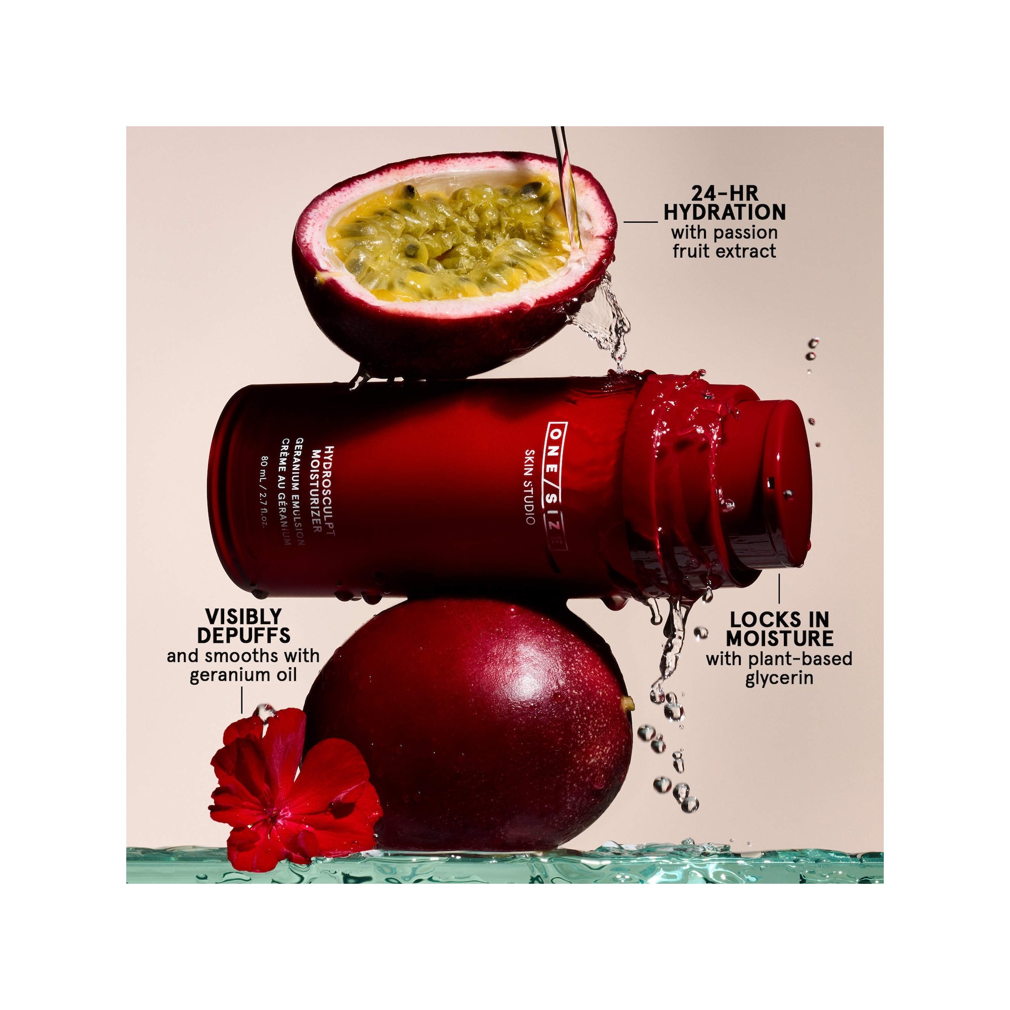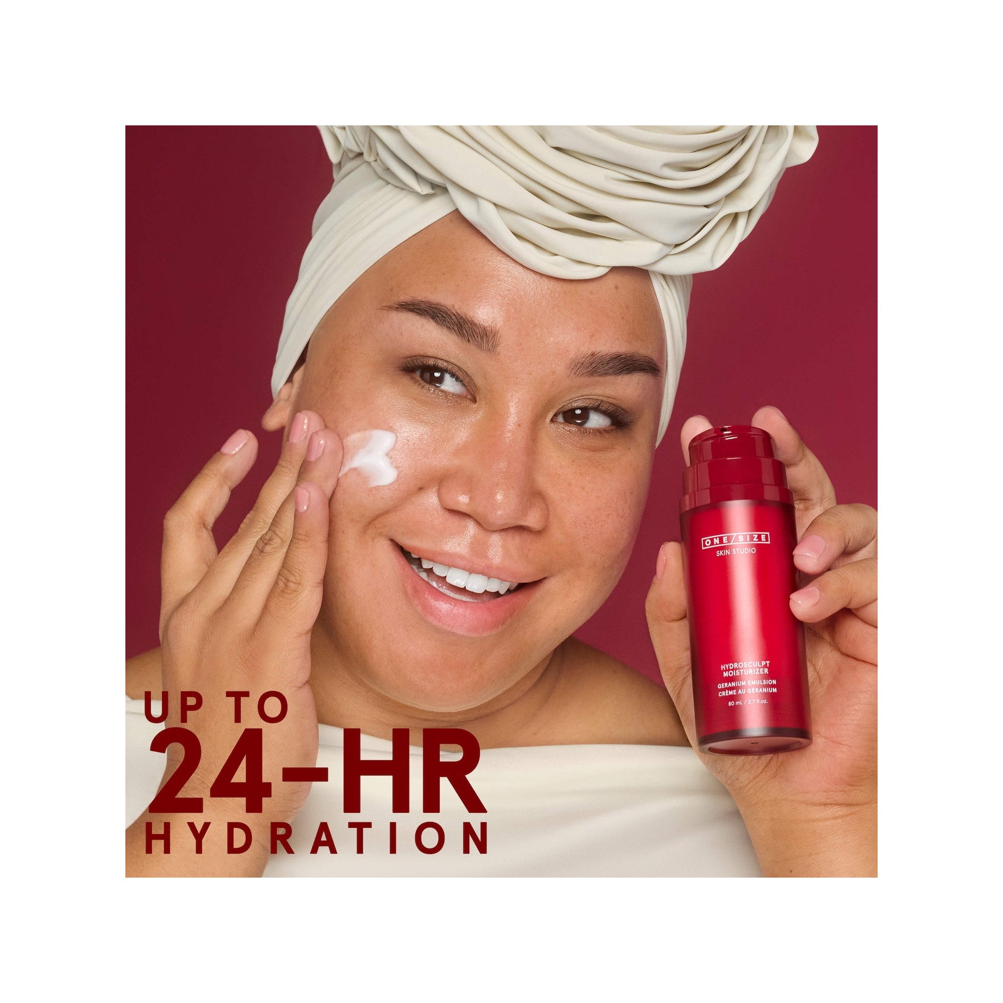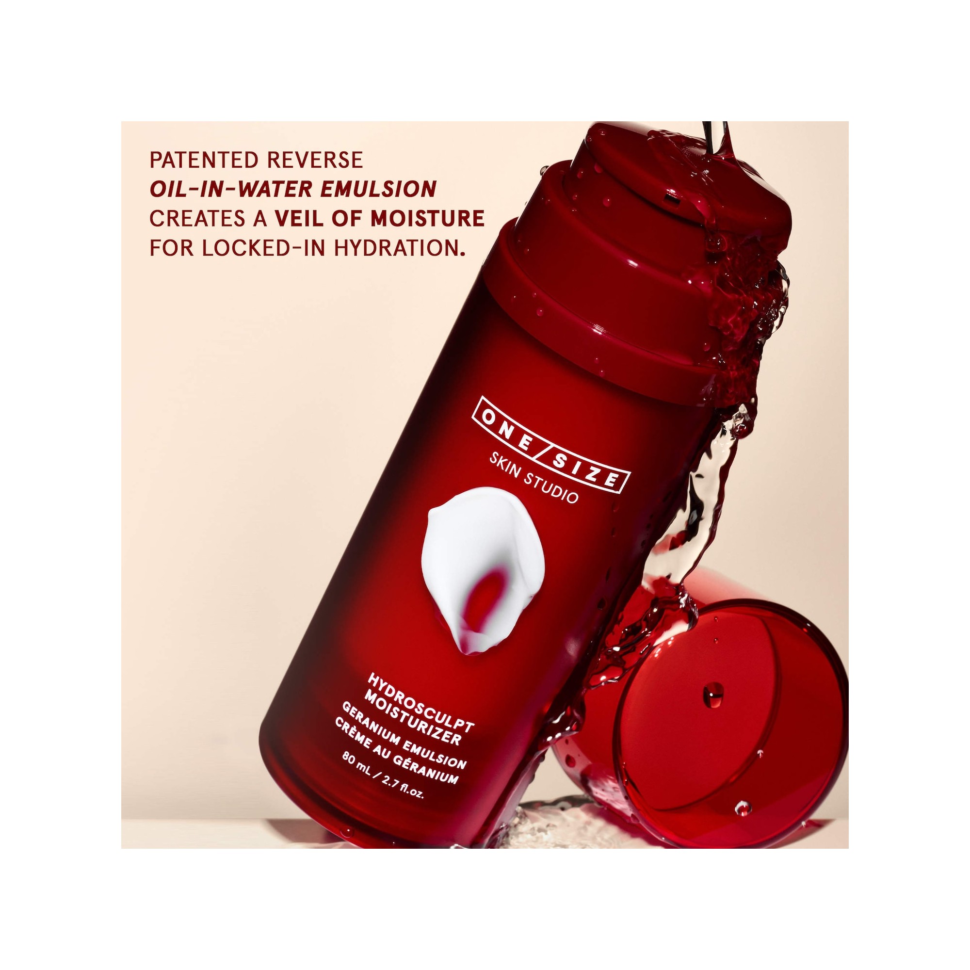 One/Size By Patrick Starrr Hydrosculpt Hydrating Cream Moisturizer with Geranium Oil Emulsion est une crème hydratante riche mais légère qui hydrate intensément la peau pendant jusqu’à 24 heures et aide visiblement à raffermir, décongestionner et préparer la peau au maquillage. Cette émulsion brevetée huile-dans-eau inversée crée un voile d’hydratation grâce à des microgouttelettes d’huile en suspension dans l’eau. Cette technologie améliore la barrière cutanée et offre une hydratation légère jusqu’à 24 heures. Formulée par des esthéticien·ne·s, cette formule est conçue pour lifter, sculpter et raffermir visiblement la peau en deux semaines. L’huile de géranium aide à réduire visiblement les poches et les ridules, tandis que l’extrait de fruit de la passion hydrate, améliore l’éclat et soutient la barrière cutanée, et la glycérine d’origine végétale aide à retenir une hydratation durable.