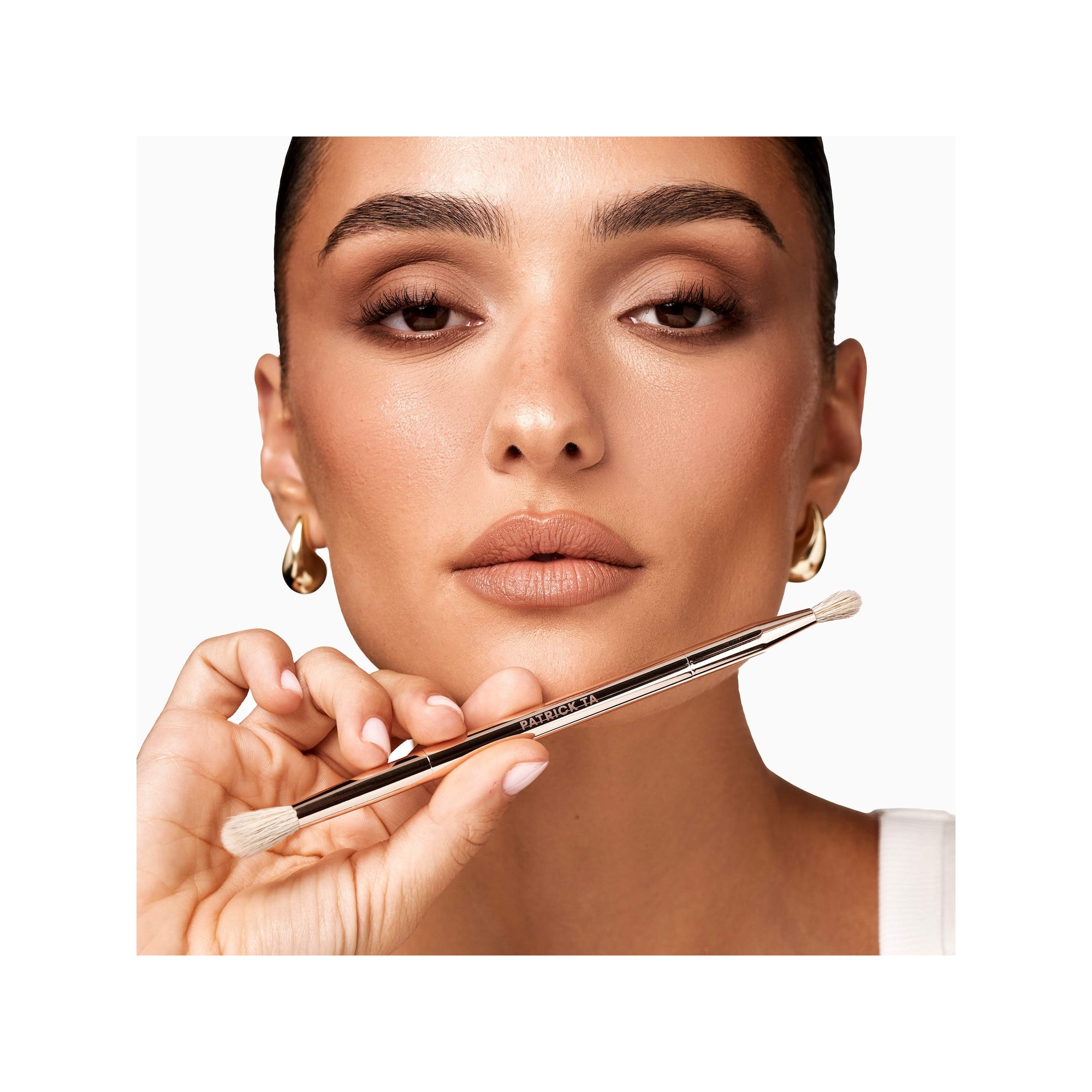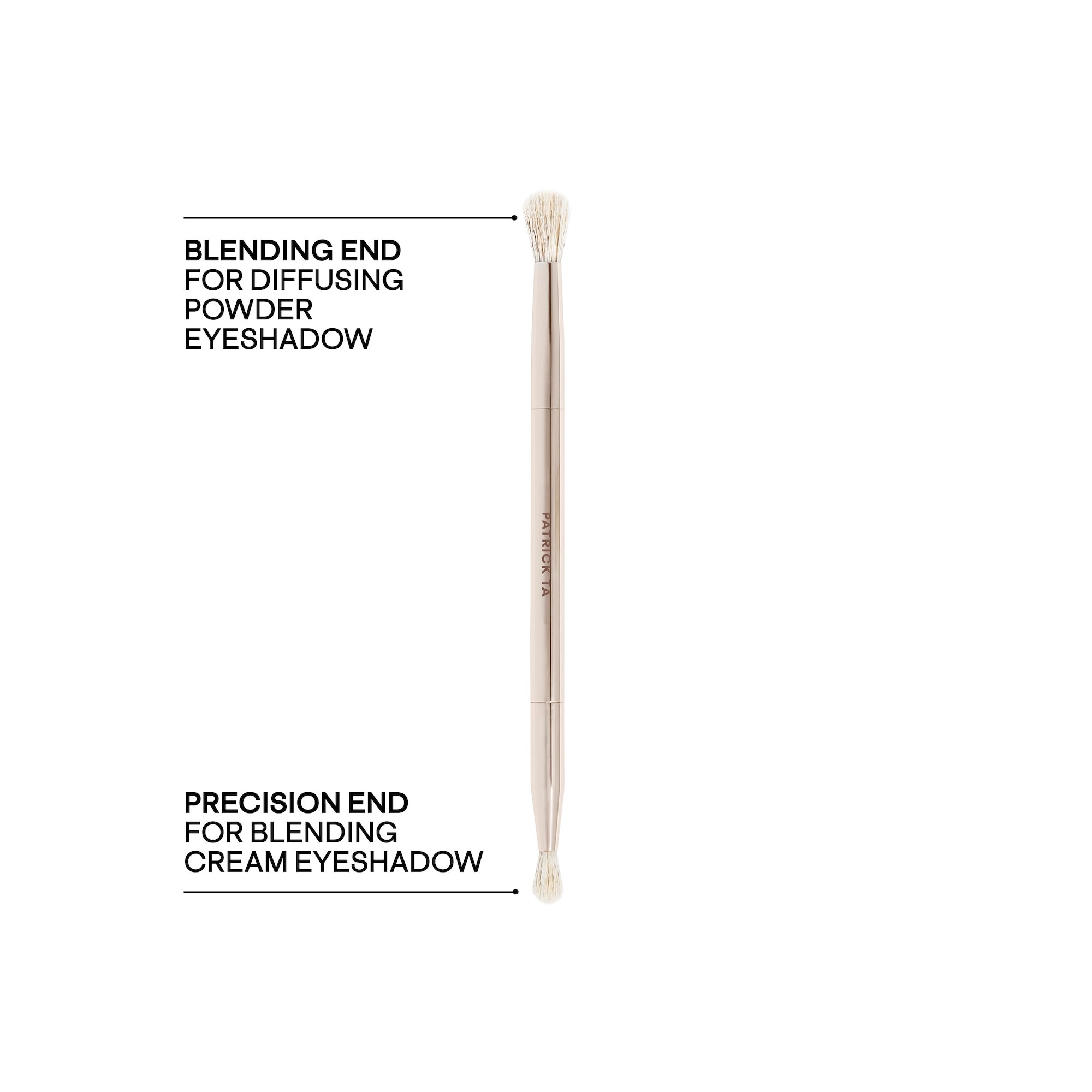 Patrick Ta Dual Ended Eyeshadow Brush est un pinceau double embout doté de deux côtés qui estompe parfaitement les formules crème et poudre. La petite tête du pinceau, souple et fournie, est conçue pour les textures crème et poudre, offrant une application ciblée et un rendu intense. Le côté plus large diffuse la poudre sur l’ensemble de la paupière pour des transitions harmonieuses et une définition subtile. Fabriqué avec les fibres brevetées emblématiques de PATRICK TA, ce pinceau garantit une application douce et un estompage homogène. Le PATRICK TA Dual-Ended Eyeshadow Brush allie précision et polyvalence dans un design élégant. La petite tête du pinceau est idéale pour un estompage ciblé des formules crème et poudre, offrant une intensité de couleur remarquable et une application sans effort. Le côté plus large est conçu pour diffuser la poudre en douceur sur les paupières, créant des transitions fluides tout en ajoutant profondeur et dimension pour une finition professionnelle. Conçu avec les fibres brevetées de la marque, ce pinceau assure un estompage doux, homogène et une maîtrise parfaite à chaque utilisation. Qu’il s’agisse de définir le creux de la paupière ou d’estomper les couleurs pour un regard diffus, ce pinceau double embout est un indispensable de toute collection de maquillage, sublimant votre regard avec élégance et précision.
