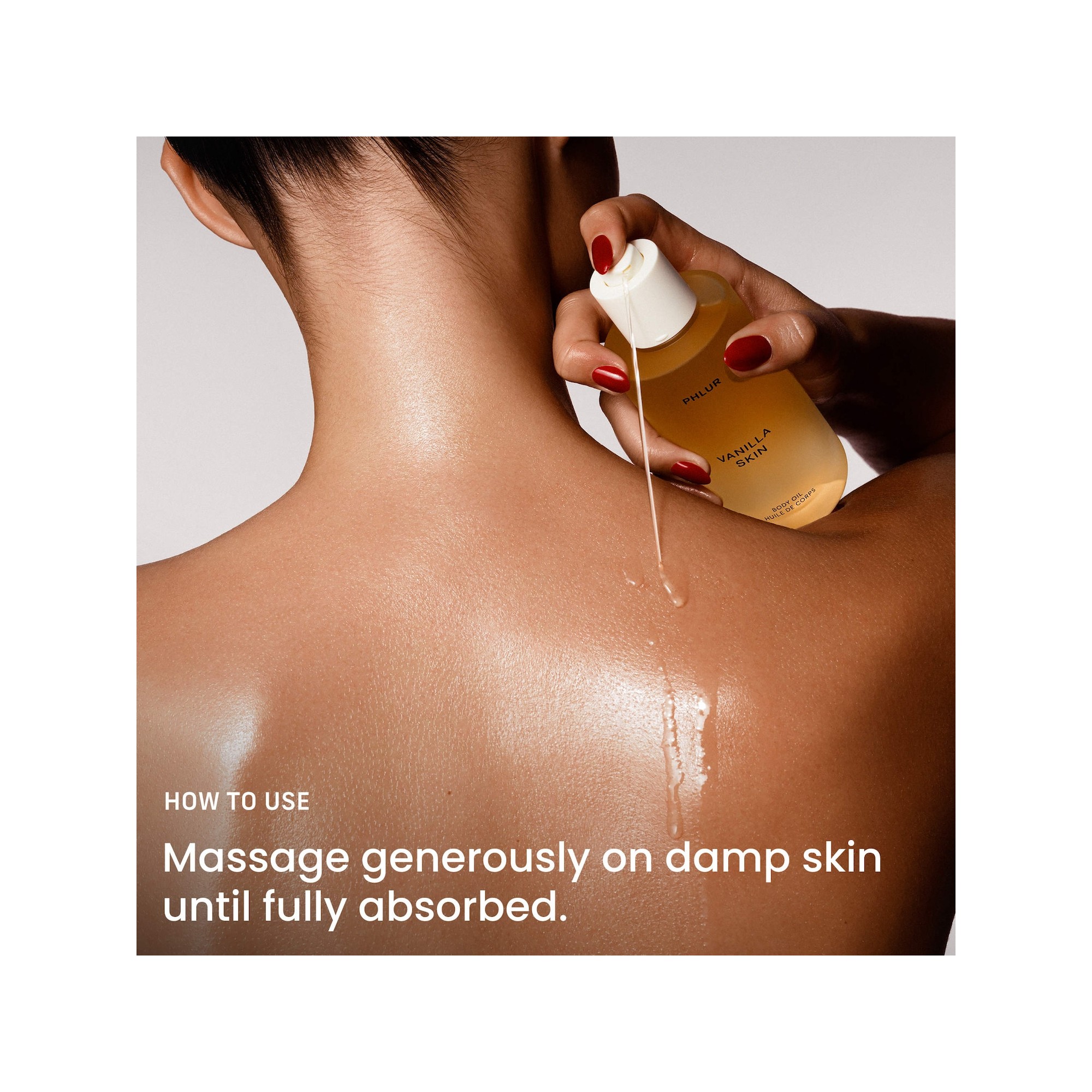 Phlur Vanilla Skin Body Oil est huile corporelle luxueuse et nourrissante pour la peau, dans le parfum Vanilla Skin, la fragrance décadente et best-seller de PHLUR. Cette huile soyeuse mais légère est infusée de lipides biomimétiques et d’huiles florales riches en céramides qui pénètrent facilement pour nourrir et hydrater la peau. Les huiles florales incluent le cynorrhodon, le ricin et le jojoba. Le squalène aide à sceller l’hydratation et contribue à une barrière cutanée plus saine. La vitamine C est un puissant antioxydant qui illumine visiblement la peau. Enveloppez votre peau d'une hydratation soyeuse et parfumée avec l'huile pour le corps Phlur Vanilla Skin, un soin corporel au parfum séduisant qui nourrit et hydrate la peau pour la rendre plus souple et plus douce. Gorgée d'actifs puissants, cette huile pour le corps est conçue pour restaurer et fixer l'hydratation. L'association de lipides biomimétiques, d'huiles florales naturelles et de céramides assure une hydratation durable pour une peau plus douce au toucher et plus rebondie. Ces agents contribuent à renforcer la barrière cutanée pour la protéger contre les éléments nocifs et renforcer la santé de la peau. Découvrez une sensation sensorielle grâce à l'infusion de notes musquées et terreuses de vanille. Appliquez l'huile corporelle Phlur Vanilla Skin sur une peau humide et combinez-la avec la brume corporelle Phlur Vanilla pour renforcer le parfum.