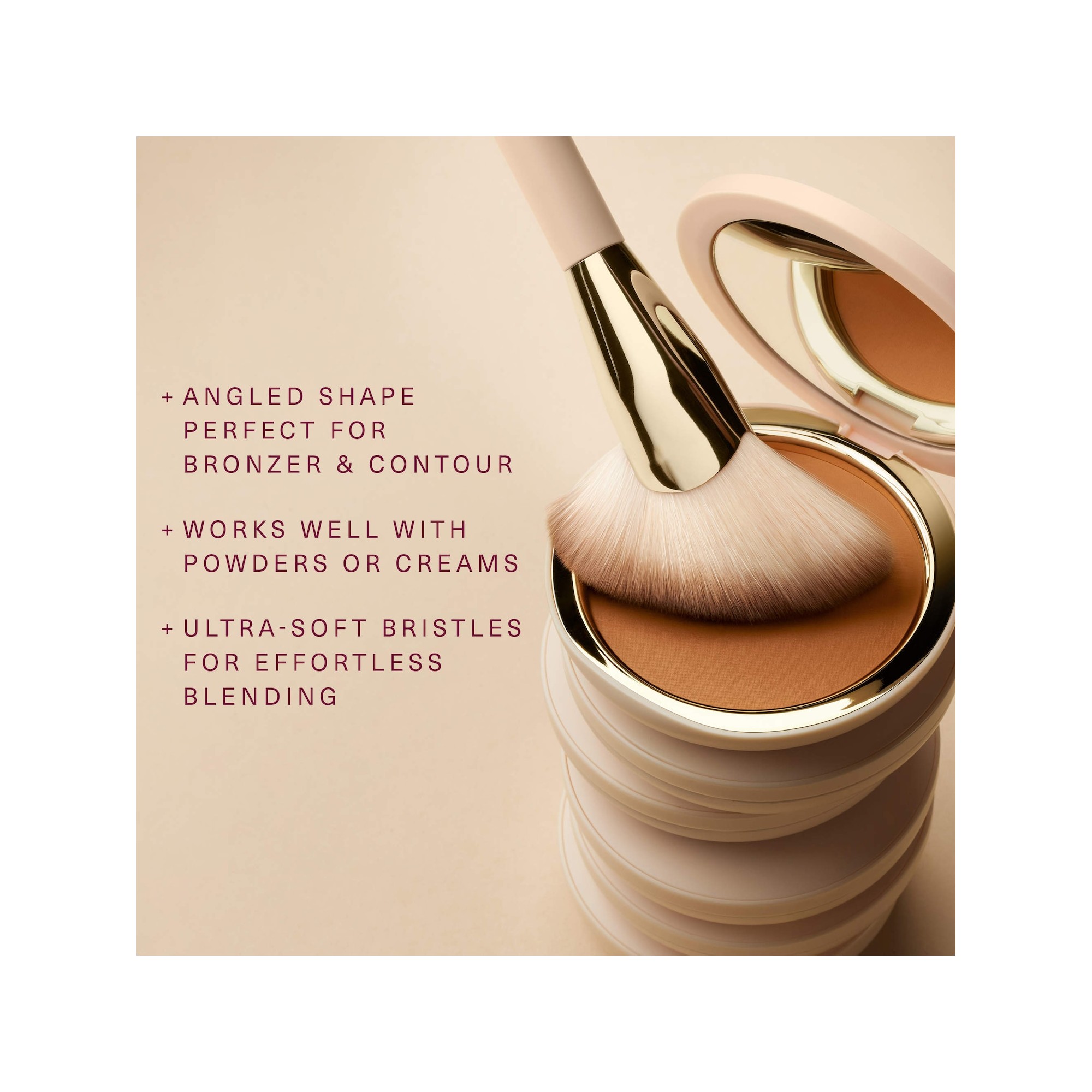 Rare Beauty By Selena Gomez Angled Powder Brush est un pinceau à poudre multi-usage doté de poils synthétiques doux et d’une forme angulée unique, parfait pour estomper le bronzer, le blush, la poudre fixante et bien plus encore. Sa forme biseautée facilite l’application de votre bronzer, blush ou poudre préférée le long des contours du visage. Les poils synthétiques ultra-doux prélèvent la juste quantité de produit et le fondent parfaitement sur la peau, idéal aussi bien pour les formules en poudre que pour les textures crème.