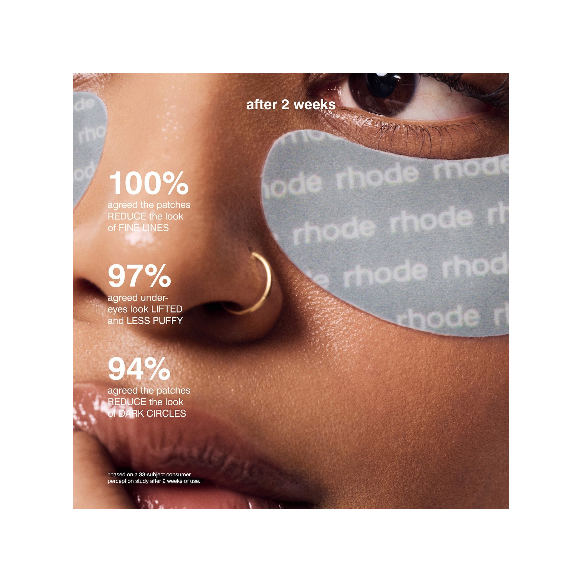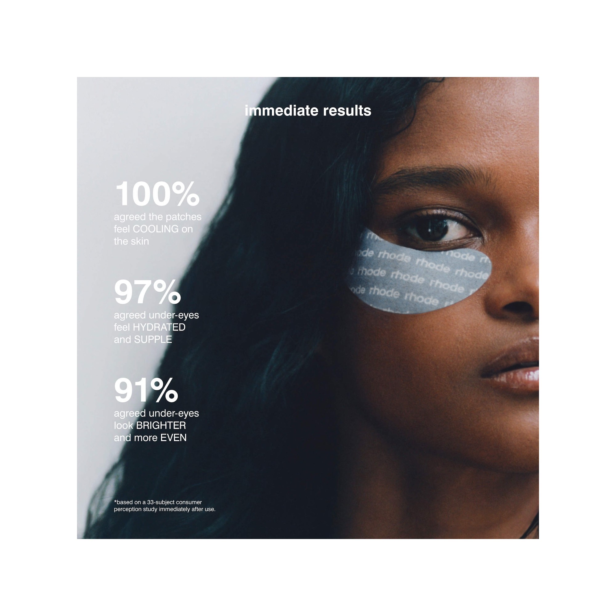 Rhode Peptide Eye Prep Depuffing Eye Patches sont des patchs hydrogel rafraîchissants pour les yeux qui décongestionnent et illuminent le contour de l’œil tout en aidant à réduire l’apparence des ridules et des cernes. Cliniquement prouvé, ce soin améliore immédiatement le gonflement du dessous des yeux tout en procurant un effet tenseur et un regard visiblement plus lumineux. Utilisez-les dans votre routine Rhode, avant le maquillage pour préparer la peau, ou emportez-les partout avec vous pour réveiller instantanément votre regard. La Caféine aide à réduire l’apparence des poches sous les yeux. Le Peptide améliore l’aspect des cernes, rendant le contour des yeux plus éclatant. Le Sodium PCA, un dérivé d’acide aminé, hydrate la peau pour un toucher plus doux. Retrouvez les deux versions des Peptide Eye Prep réunies dans un seul coffret. Ces patchs hydrogel rafraîchissants décongestionnent et illuminent le regard, tout en aidant à lisser les ridules et atténuer les cernes. À utiliser dans votre routine Rhode, avant le maquillage, ou à emporter partout pour un effet “coup d’éclat” instantané.