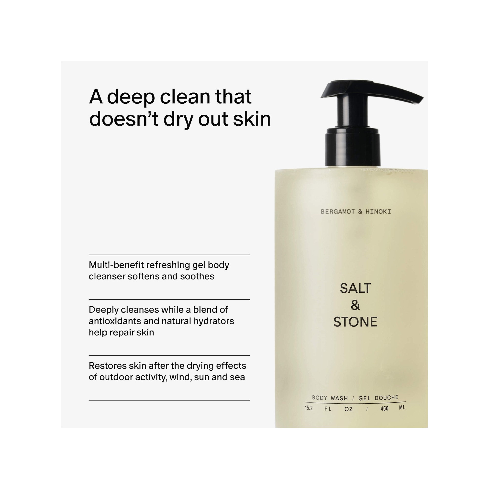 Salt & Stone Bergamot & Hinoki Refillable Body Wash with Niacinamide + Probiotic :