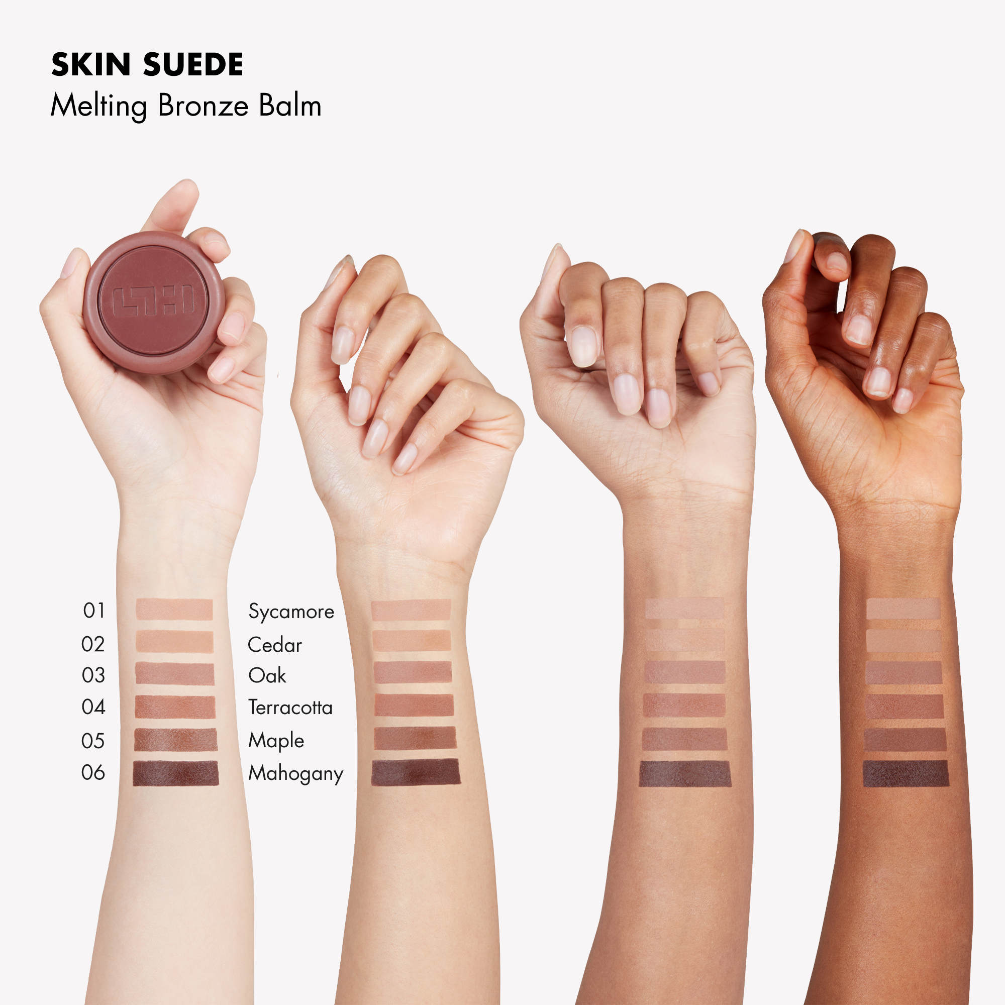 Simihaze Beauty Skin Suede Melting Bronze Balm est un baume crème-poudre multi-usages qui apporte chaleur et hydratation naturelles pour un teint d'été instantané. Enrichi en poudres matifiantes délicates pour un fini soyeux, sa formule aérienne fusionne avec la peau, idéale pour bronzer, sculpter et créer un look monochrome sur les yeux et les lèvres. Ce baume extensible épouse les contours du visage comme une seconde peau, tandis que son complexe Hydra-Sphere à libération lente diffuse de l'acide hyaluronique de faible poids moléculaire pour repulper et hydrater en profondeur. « Voici notre alternative au contouring : un baume nourrissant qui peut être utilisé sur le visage et les yeux pour apporter de la chaleur. » Simi et Haze. Offrez à votre teint un éclat subtil effet “retour de vacances” avec le Suede Melting Bronze Balm de Simihaze Beauty. Ce baume innovant à la texture crème-poudre apporte une chaleur naturelle tout en offrant une hydratation longue durée. Il est enrichi du complexe Hydra-Sphere à diffusion progressive, qui contient de l’acide hyaluronique encapsulé pour booster l’hydratation et laisser la peau repulpée. Infusé de poudres matifiantes délicates pour un fini doux et soyeux, ce baume ultra-léger fond sur la peau et s’utilise aussi bien pour bronzer, sculpter ou créer un look monochrome sur le visage, les yeux et les lèvres.
