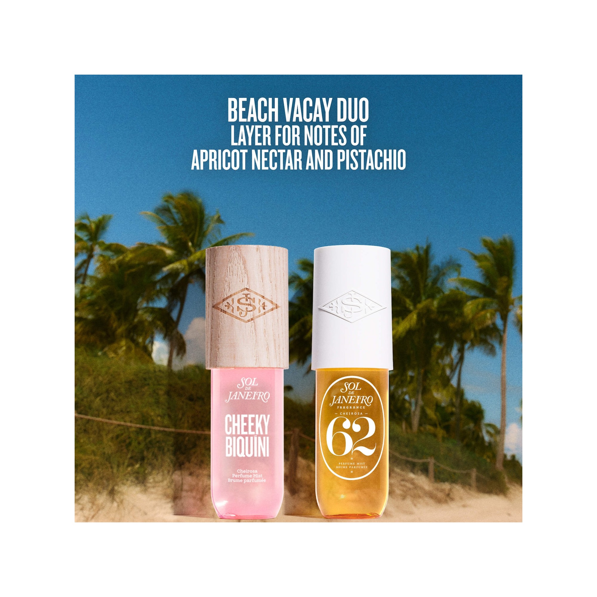 Sol De Janeiro Cheeky Biquíni Hair & Body Perfume Mist est une brume parfumée qui s'inspire de la liberté espiègle de Praia do Abricó, la plage naturiste légendaire de Rio. Mûr et ensoleillé, ce parfum s'ouvre sur un nectar d'abricot irrésistible, puis séduit avec de la fleur d'oranger fraîche et une vanille légère.