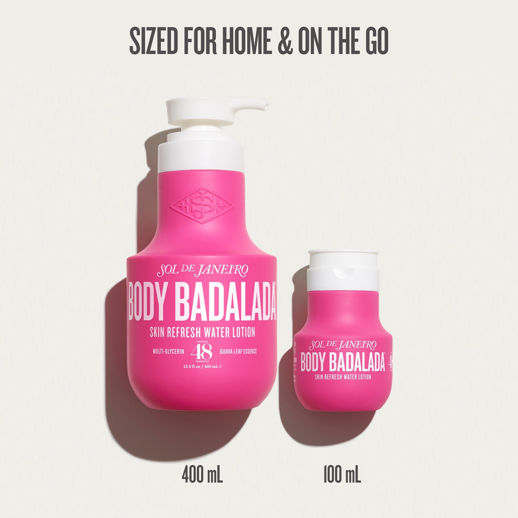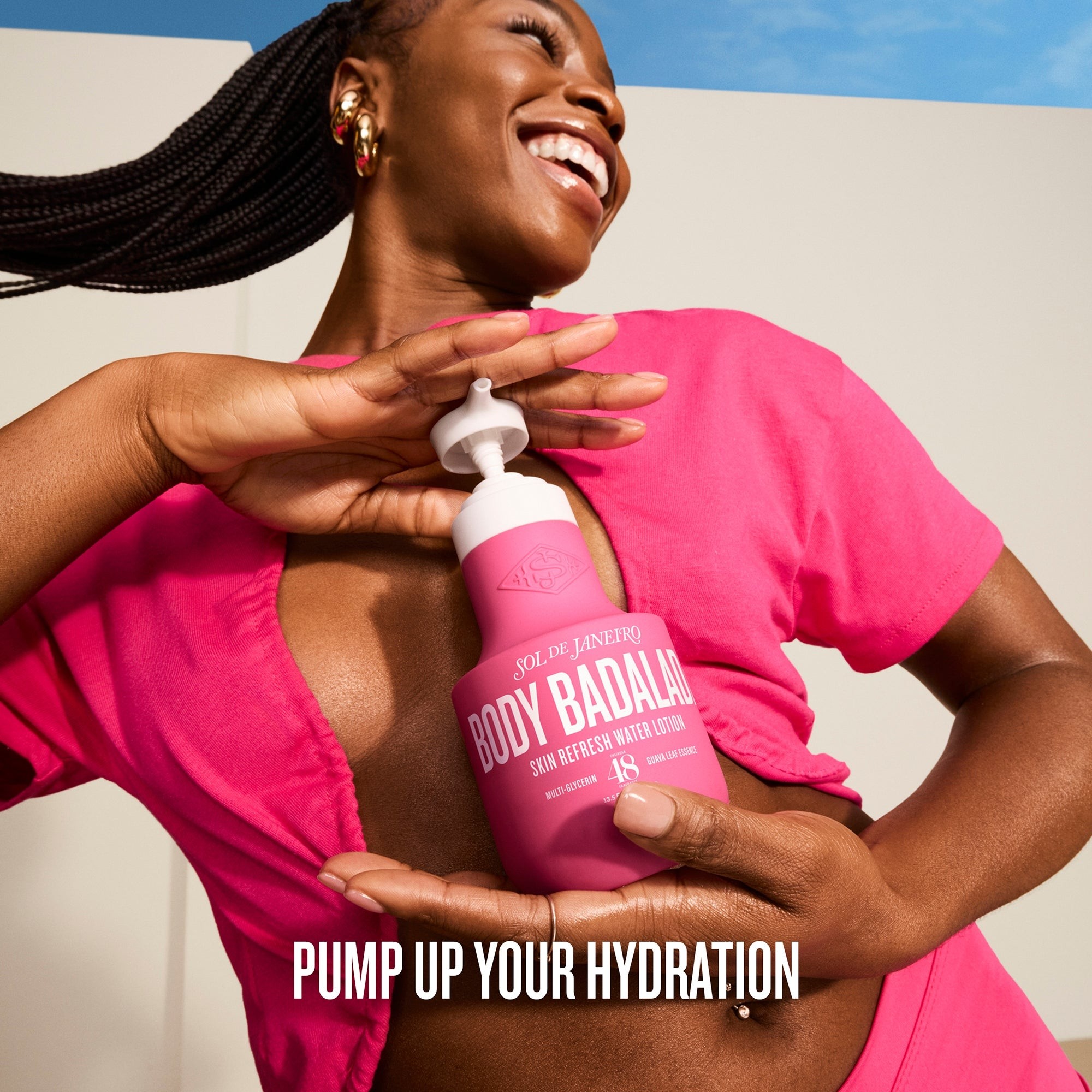 Sol De Janeiro Body Badalada '48 Lotion with Hyaluronic Acid for Daily Hydration est une lotion corporelle nourrissante infusée d'un parfum tropical de goyave, d'orchidée et de musc rose. De retour avec une nouvelle crème pour le corps au parfum sensationnel, Sol de Janeiro présente la lotion pour le corps Badalada '48, une formule gel-eau ultra-légère qui fond sur la peau pour un fini doux au toucher. Enrichie en multiglycérine, sa formule gorge la peau d'hydratation intense pour la lisser et l'adoucir visiblement. Un cocktail de carambole et de feuille de goyave illumine le teint pour un effet bonne mine. À chaque application, ce soin hydratant transporte les sens vers une plage ensoleillée grâce à ses notes tropicales de goyave, de noix de coco et de musc rose.