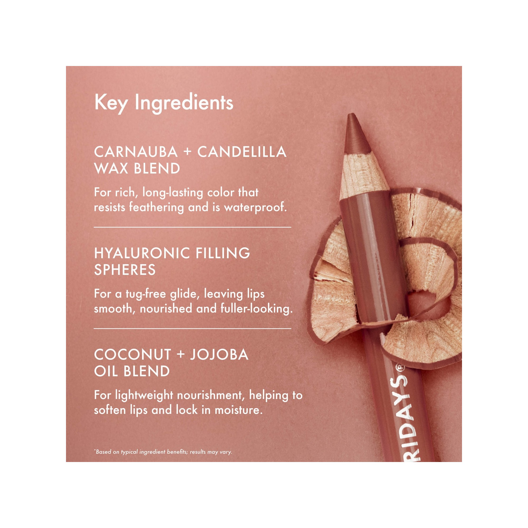 Summer Fridays SoftLine Lip Liner Long-Lasting Lip Pencil est un crayon à lèvres qui sublime la forme naturelle de vos lèvres grâce à une formule lisse qui se fond sans effort, pour un résultat sculpté et défini qui dure. Proposé dans une gamme de teintes modulables, ce crayon à lèvres crémeux et longue tenue crée un look naturellement impeccable. Il peut être utilisé pour contourer, dessiner ou remplir les lèvres selon vos envies. Enrichie en ingrédients hydratants, sa formule se porte confortablement et ne dessèche jamais les lèvres. S’associe parfaitement avec le Lip Butter Balm, vendu séparément. Le mélange de cires de carnauba et de candelilla offre une couleur riche et longue tenue, résistante aux bavures et waterproof, tandis que les sphères de comblement à l’acide hyaluronique assurent une application sans accroche, laissant les lèvres lisses, nourries et visiblement plus pulpeuses. Le mélange d’huiles de coco et de jojoba procure une nutrition légère, aidant à adoucir les lèvres et à préserver l’hydratation. Ce crayon à lèvres rehausse la forme naturelle de vos lèvres pour une bouche bien dessinée. Sa formule onctueuse s'estompe facilement pour un look naturel et sculpté qui dure longtemps.
