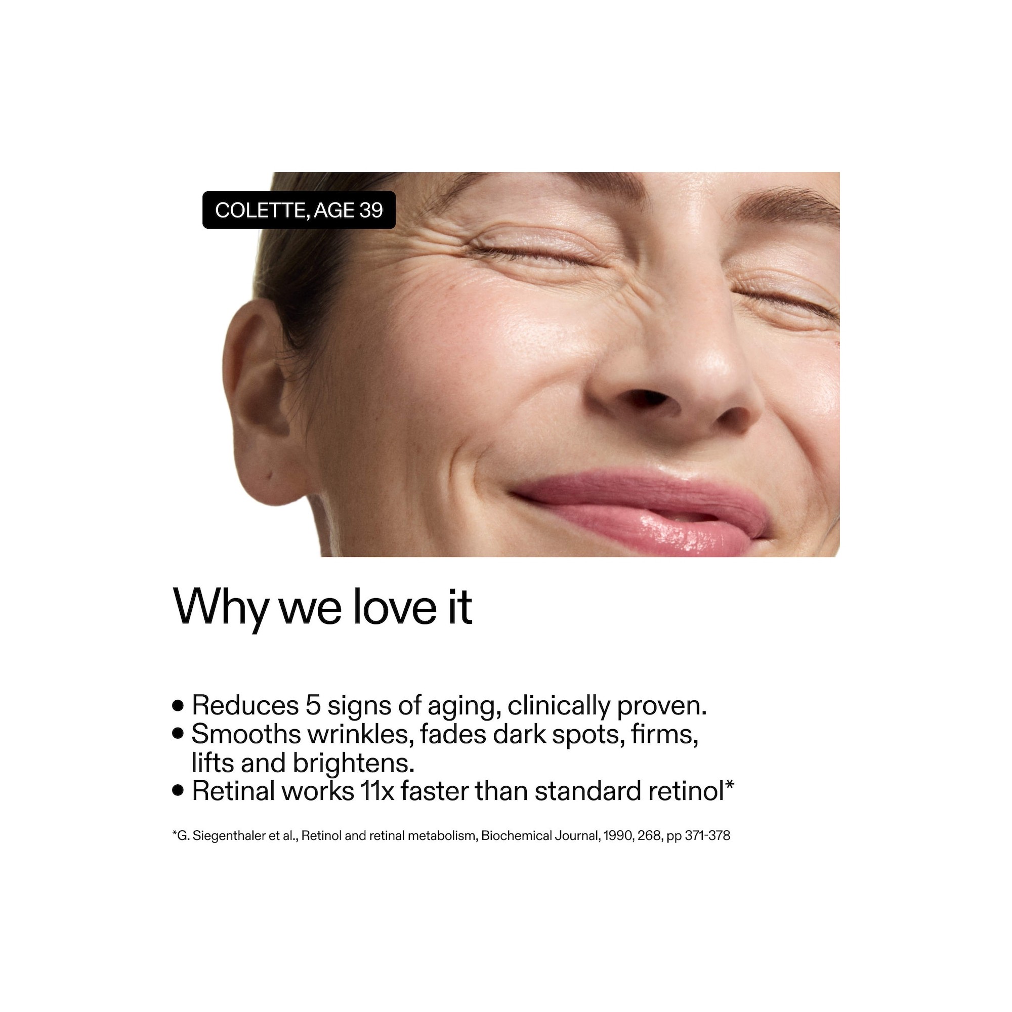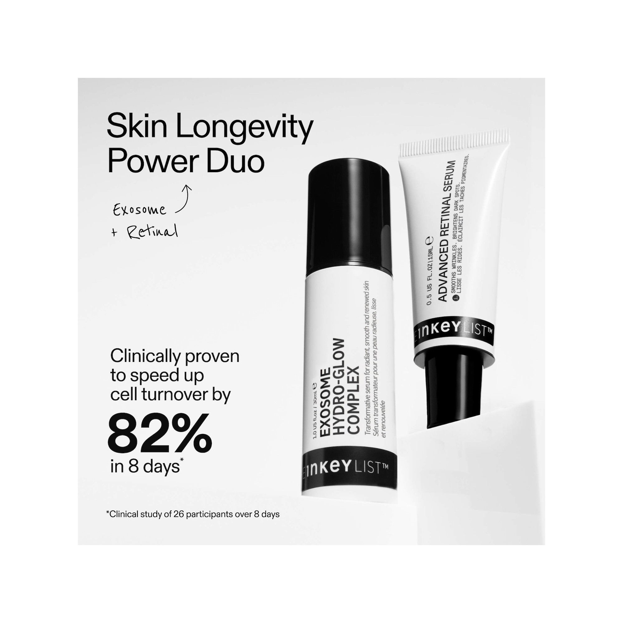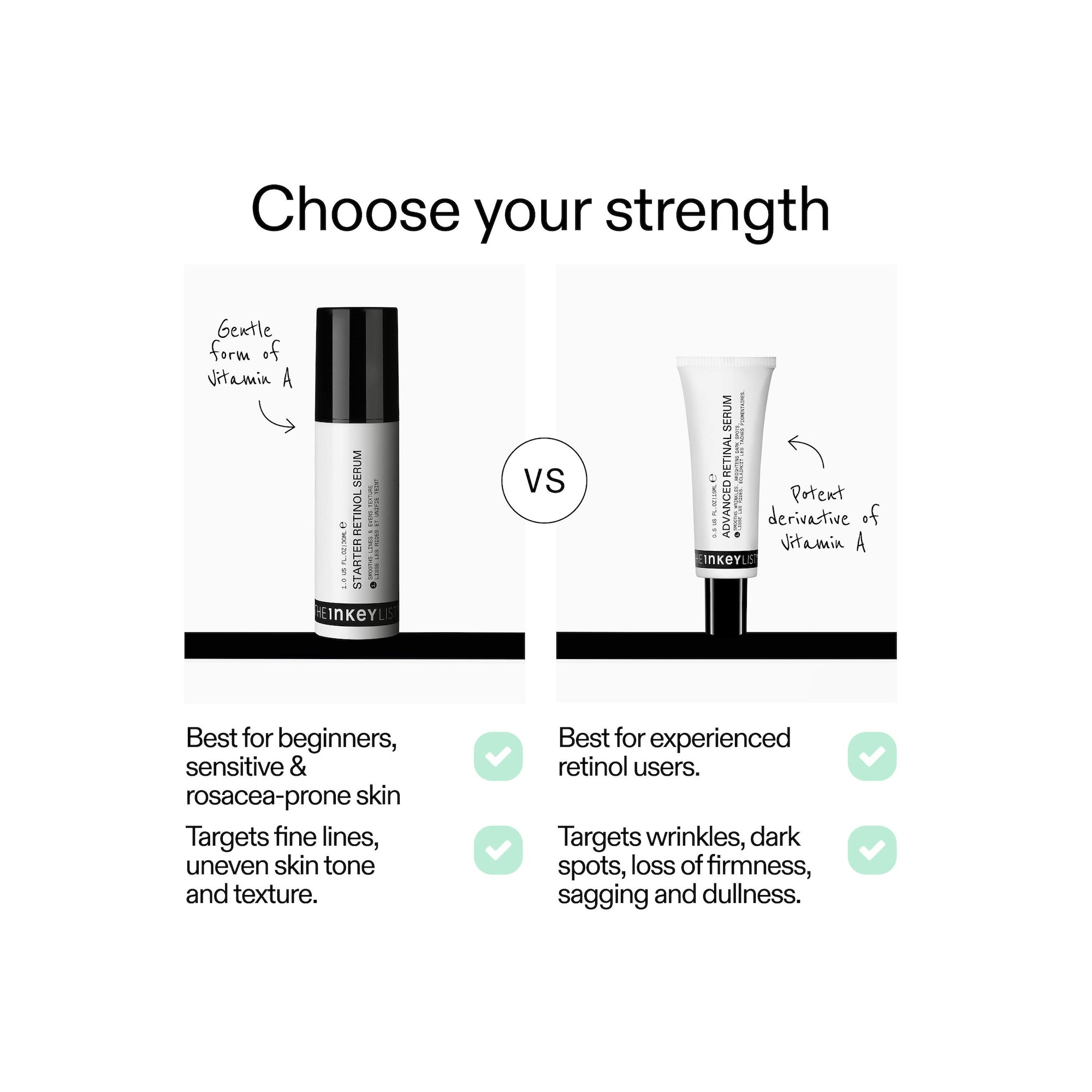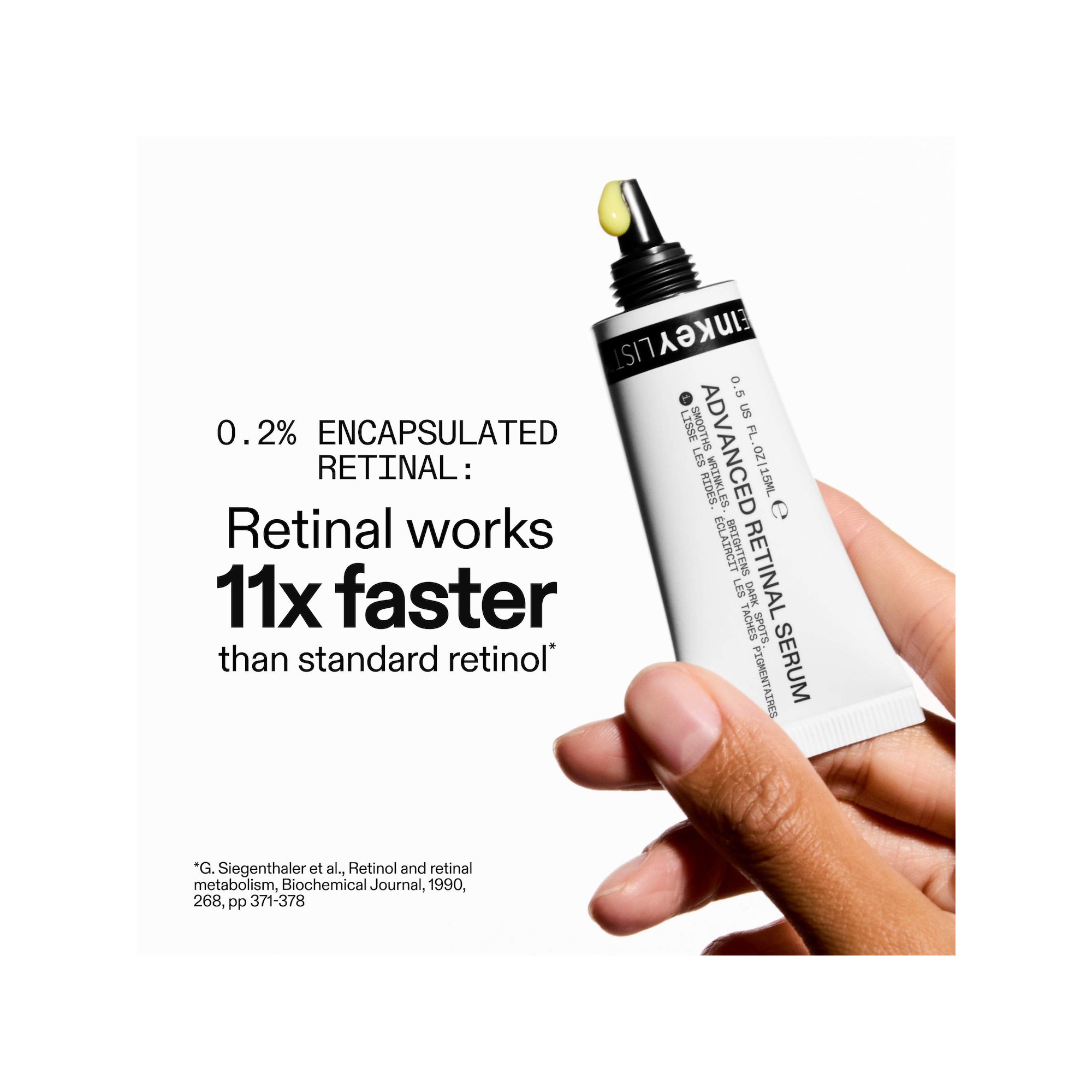The Inkey Advanced Retinal Serum for Fine lines + Wrinkles est un sérum au rétinal à haute concentration, cliniquement prouvé pour cibler les 5 signes visibles du vieillissement – sans irritation. Il lisse les rides profondes dès une semaine*, atténue les taches pigmentaires et redonne à la peau fermeté, élasticité et éclat. Idéal pour les utilisateurs expérimentés de rétinoïdes souhaitant intensifier leur routine anti-âge. Formulé avec 0,2 % de rétinaldéhyde encapsulé, prouvé pour agir 11 fois plus vite que le rétinol standard, il accélère le renouvellement cellulaire, stimule la production de collagène et améliore l'élasticité de la peau. Enrichi en 2 % de Sirtalice, pour un effet liftant, raffermissant et lissant visible en seulement trente minutes*. Équilibré avec 1,2 % de Symsitive®, pour apaiser et renforcer la barrière cutanée tout en assurant un confort durable. Un sérum au rétinal à haute concentration, cliniquement prouvé pour cibler les cinq signes visibles du vieillissement, sans provoquer d’irritation. Il lisse visiblement les rides profondes dès une semaine*, atténue les taches pigmentaires et redonne à la peau fermeté, élasticité et éclat. Idéal pour les utilisateurs expérimentés de rétinoïdes souhaitant intensifier leur routine anti-âge. Formulé avec 0,2 % de rétinaldéhyde encapsulé, reconnu pour agir jusqu’à 11 fois plus rapidement que le rétinol classique, ce sérum accélère le renouvellement cellulaire, stimule la production de collagène et améliore l’élasticité cutanée. Enrichi en 2 % de Sirtalice™, il offre un effet liftant, raffermissant et lissant visible en seulement 30 minutes*. Sa formule est équilibrée avec 1,2 % de Symsitive®, un actif apaisant qui renforce la barrière cutanée tout en garantissant un confort durable.
