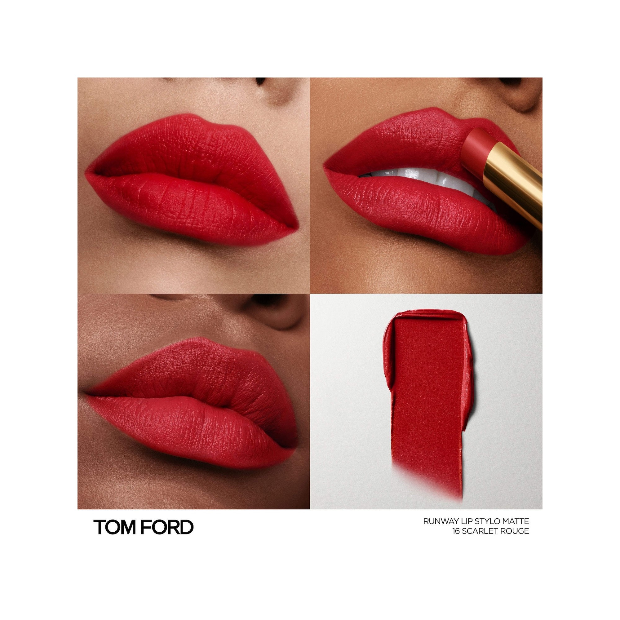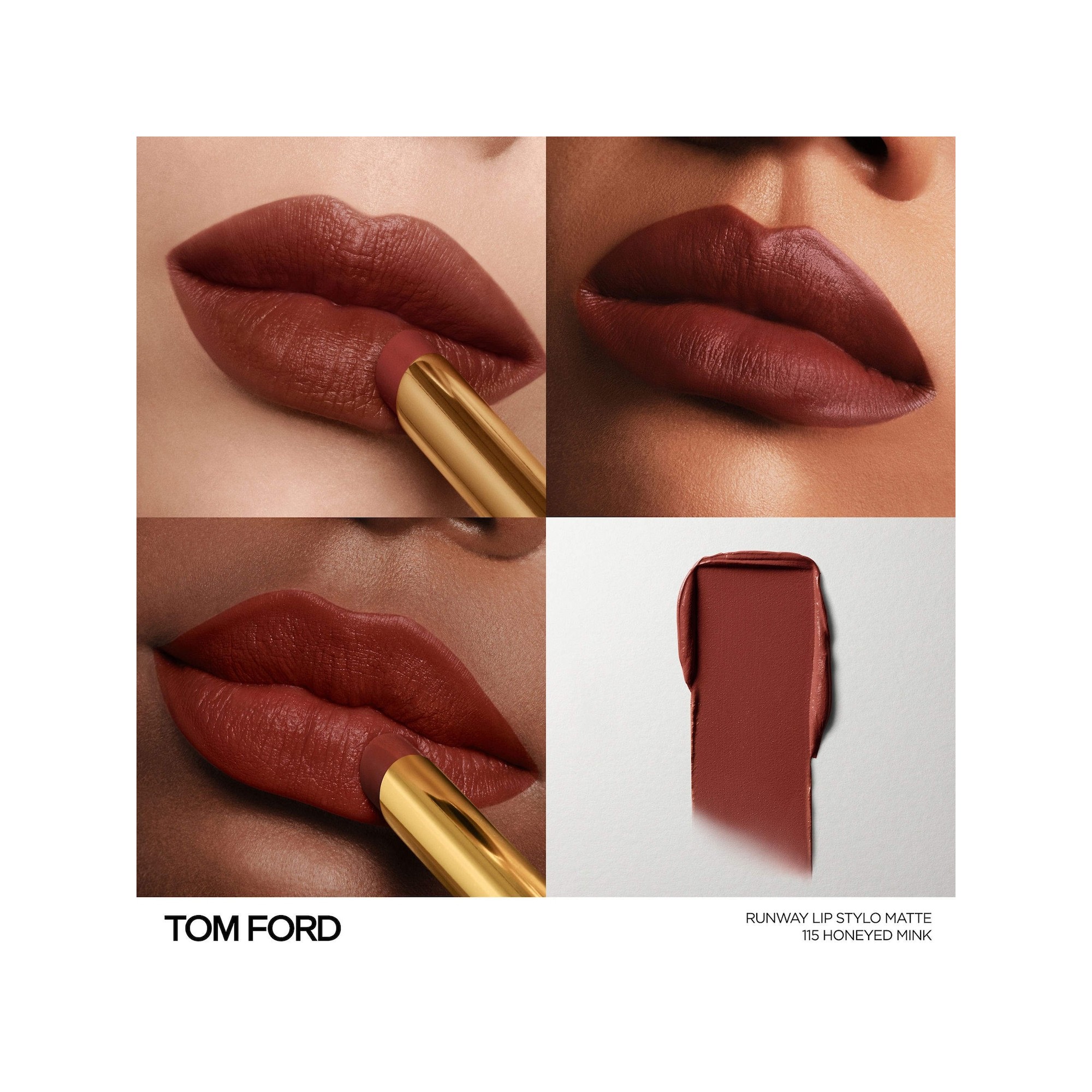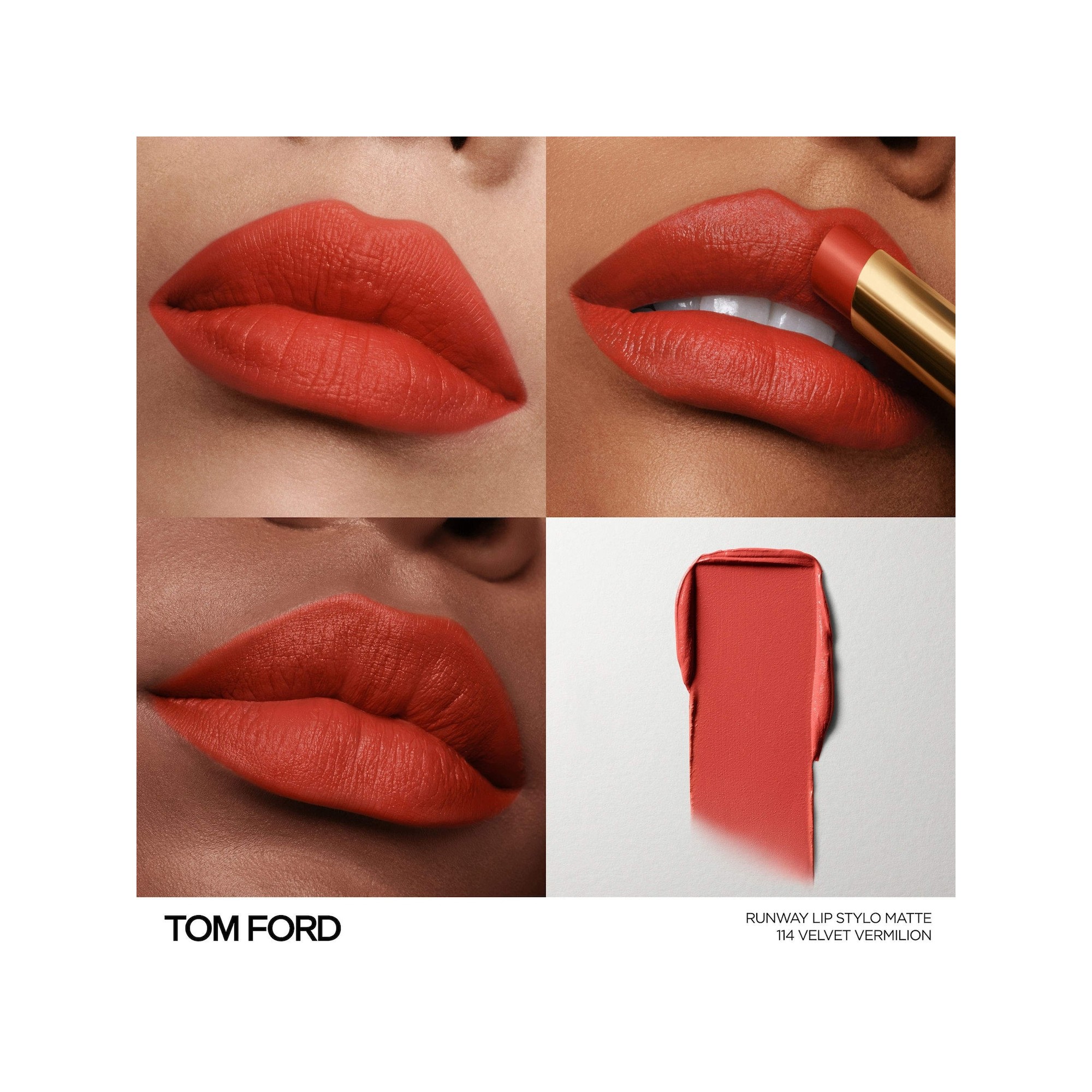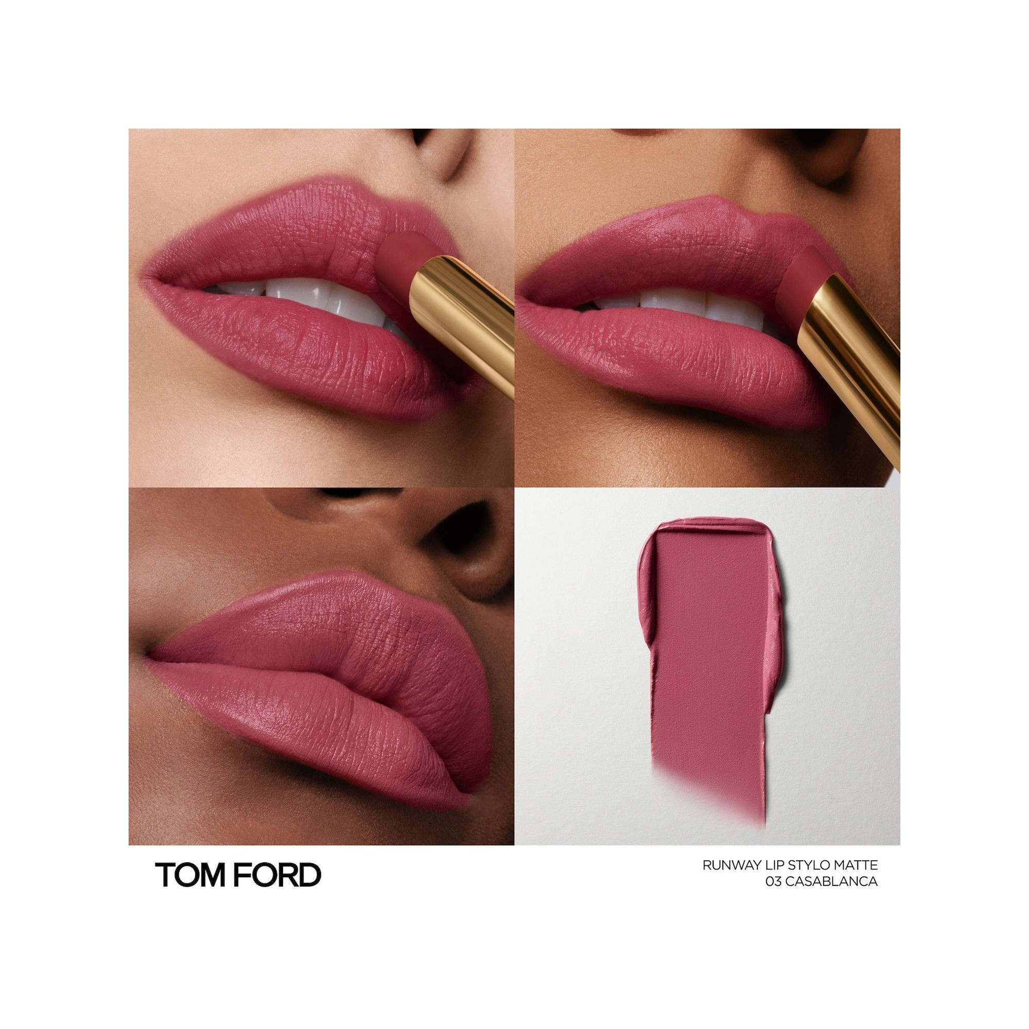 Tom Ford Runway Lip Stylo Matte Lipstick est un rouge à lèvres mat, à l’allure discrètement puissante, doté d’une formule légère et hydratante qui enveloppe les lèvres d’un confort velouté. Conçu pour attirer l’attention sans en faire trop, ce rouge à lèvres utilise une technologie innovante de pigments floutants qui hydrate instantanément les lèvres à chaque application. Disponible en dix teintes modulables, il glisse facilement sur les lèvres et s’inspire de l’élégance séduisante des défilés Tom Ford. Le Runway Lip Stylo Matte de Tom Ford incarne une nouvelle ère de glamour, offrant une couleur digne des podiums avec un fini mat flouté. Confortable et modulable, il s’applique avec précision tout en apportant une couvrance douce et moelleuse. Malgré son fini mat, il hydrate et nourrit les lèvres, laissant un rendu lisse, repulpé et longue tenue, sans marquer, s’estomper ni dessécher.