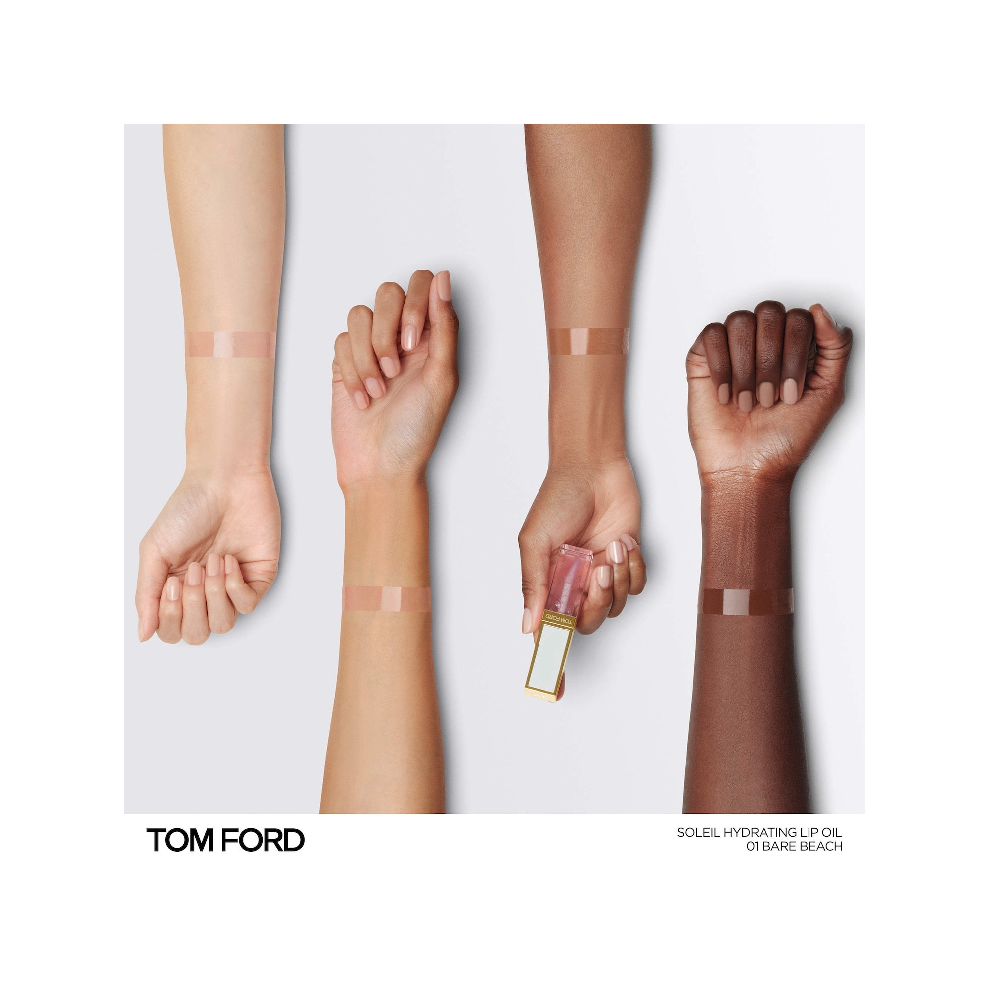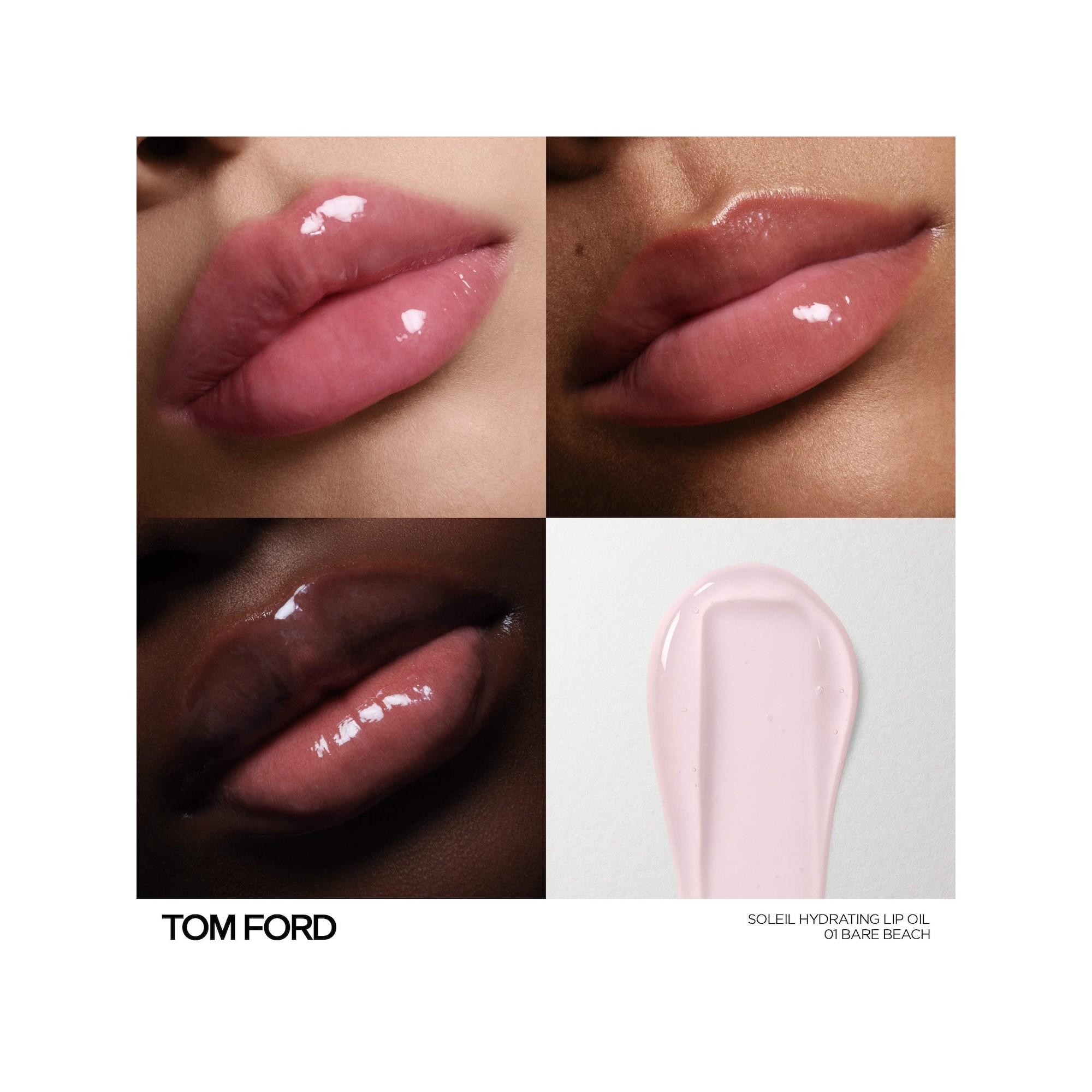 Tom Ford Soleil Hydrating Lip Oil with Vitamin E & Coconut Oil est une huile à lèvres hydratante qui enveloppe les lèvres d’une brillance glossy et nourrissante — l’accessoire parfait pour un effet golden hour. Cette formule hybride gel-huile revitalisante apporte une hydratation intense et un confort sensoriel immédiat. Enrichie en huile de coco et en vitamine E, elle nourrit profondément les lèvres tout en leur offrant une brillance éclatante qui les sublime et les met en valeur. Parfumée avec l’accord iconique coco de mer de Tom Ford, elle évoque l’ambiance d’un été infini et ensoleillé. Découvrez la Soleil Hydrating Lip Oil Bare Beach de TOM FORD Beauty, une huile à lèvres lumineuse au délicat rose nude, inspirée de l’éclat doré du coucher de soleil. Sa texture gel-huile procure une brillance instantanée, une hydratation intense et un léger effet repulpant pour sublimer les lèvres naturellement. Grâce à ses actifs nourrissants, elle aide à lisser et adoucir les lèvres tout en maintenant l’hydratation tout au long de la journée. Présentée dans un écrin blanc et doré élégant, elle apporte une touche finale lumineuse et sophistiquée à tous vos looks.
