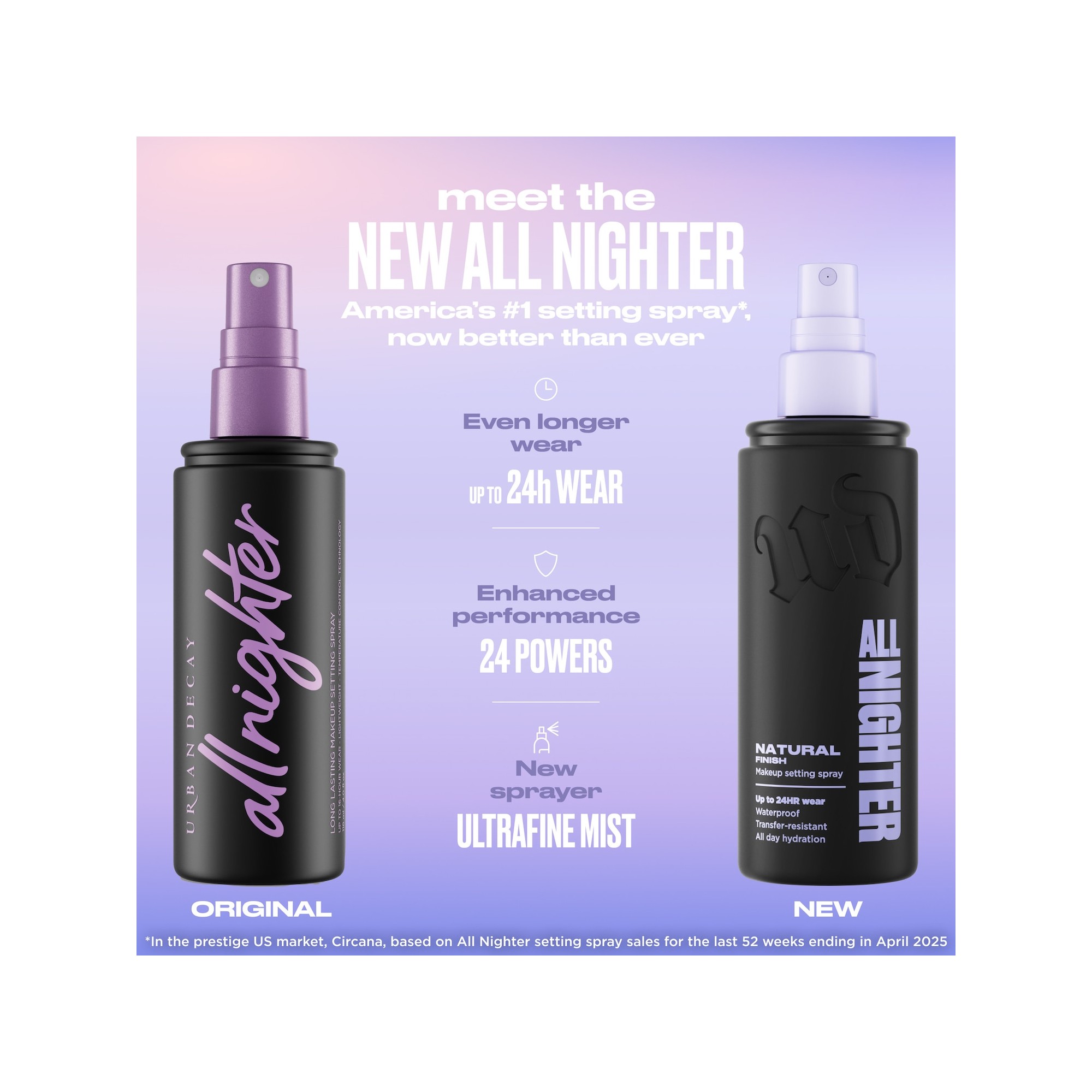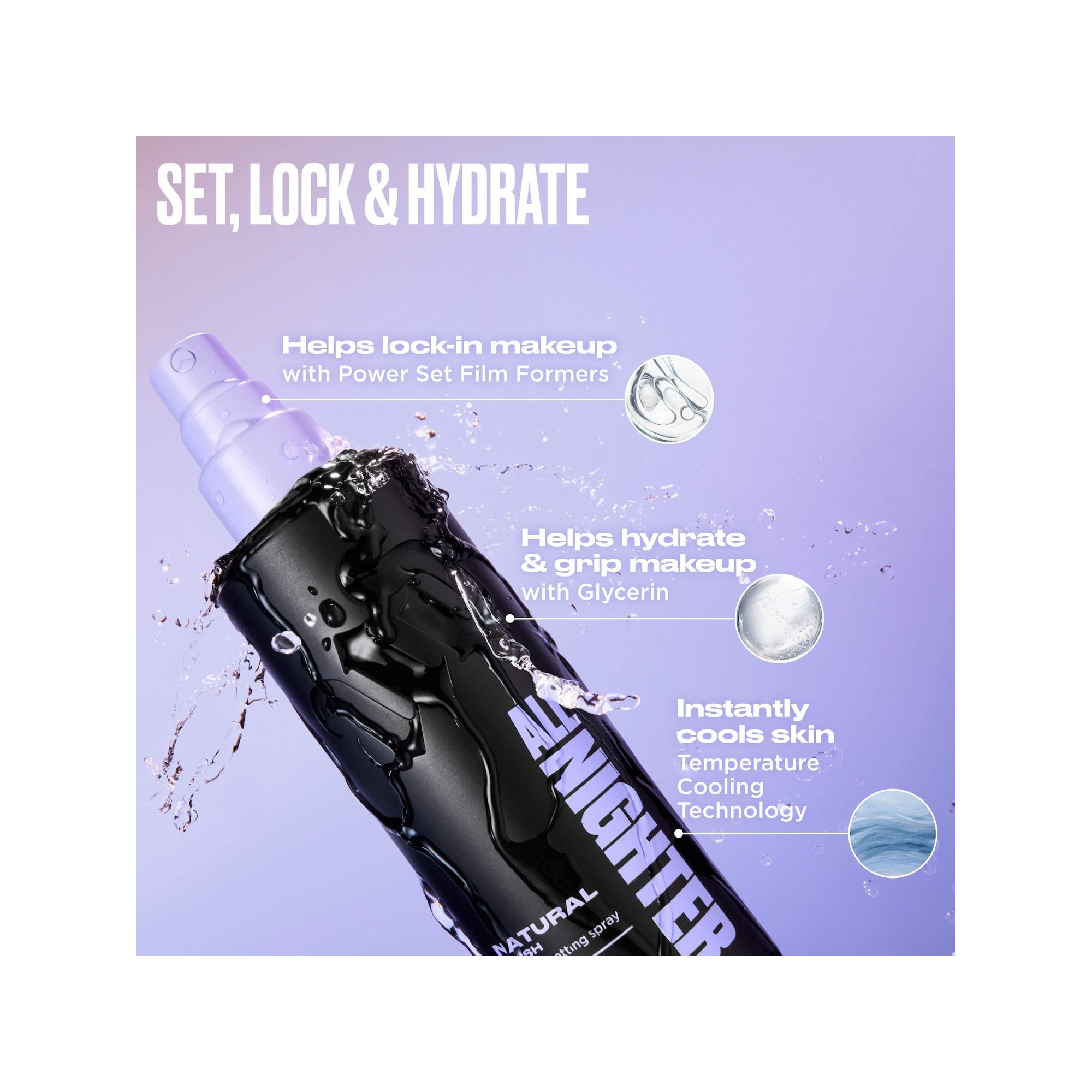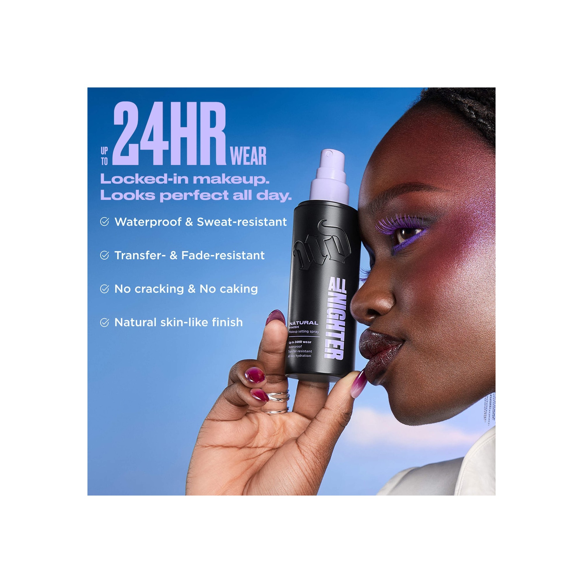 Urban Decay All Nighter Waterproof Natural Finish Setting Spray with 24HR Wear est un spray fixateur de maquillage offrant jusqu’à 24 heures de tenue, avec une brume ultra-fine qui fixe et verrouille le maquillage pour un fini naturel, waterproof et résistant aux transferts. Ce spray best-seller est amélioré avec une tenue jusqu’à 24 heures et une brume si fine qu’elle fixe et fond parfaitement les poudres et les textures crèmes sans laisser de traces. Sa formule légère et longue tenue résiste aux transferts, à la transpiration et à la décoloration, tout en offrant un fini naturel avec un effet flouté. Les agents filmogènes Power Set fixent le maquillage, tandis que la glycérine hydrate et aide à mieux accrocher les produits. La technologie rafraîchissante réduit rapidement la température de la peau de trois degrés pour une sensation de fraîcheur immédiate. Fixez votre maquillage avec le All Nighter Waterproof Makeup Setting Spray d’Urban Decay, désormais amélioré pour une tenue encore plus longue et une brume ultra-fine qui fusionne parfaitement avec la peau. Sa formule assure jusqu’à 24 heures de tenue waterproof, résistante aux transferts et aux bavures, pour un maquillage impeccable du matin au soir. Enrichi en agents fixateurs puissants et en glycérine hydratante, il offre un fini naturel effet peau avec un léger flou, tout en gardant la peau fraîche grâce à sa technologie rafraîchissante. Idéal pour préparer, fixer ou raviver le maquillage, ce spray léger garantit hydratation, confort et tenue parfaite tout au long de la journée.