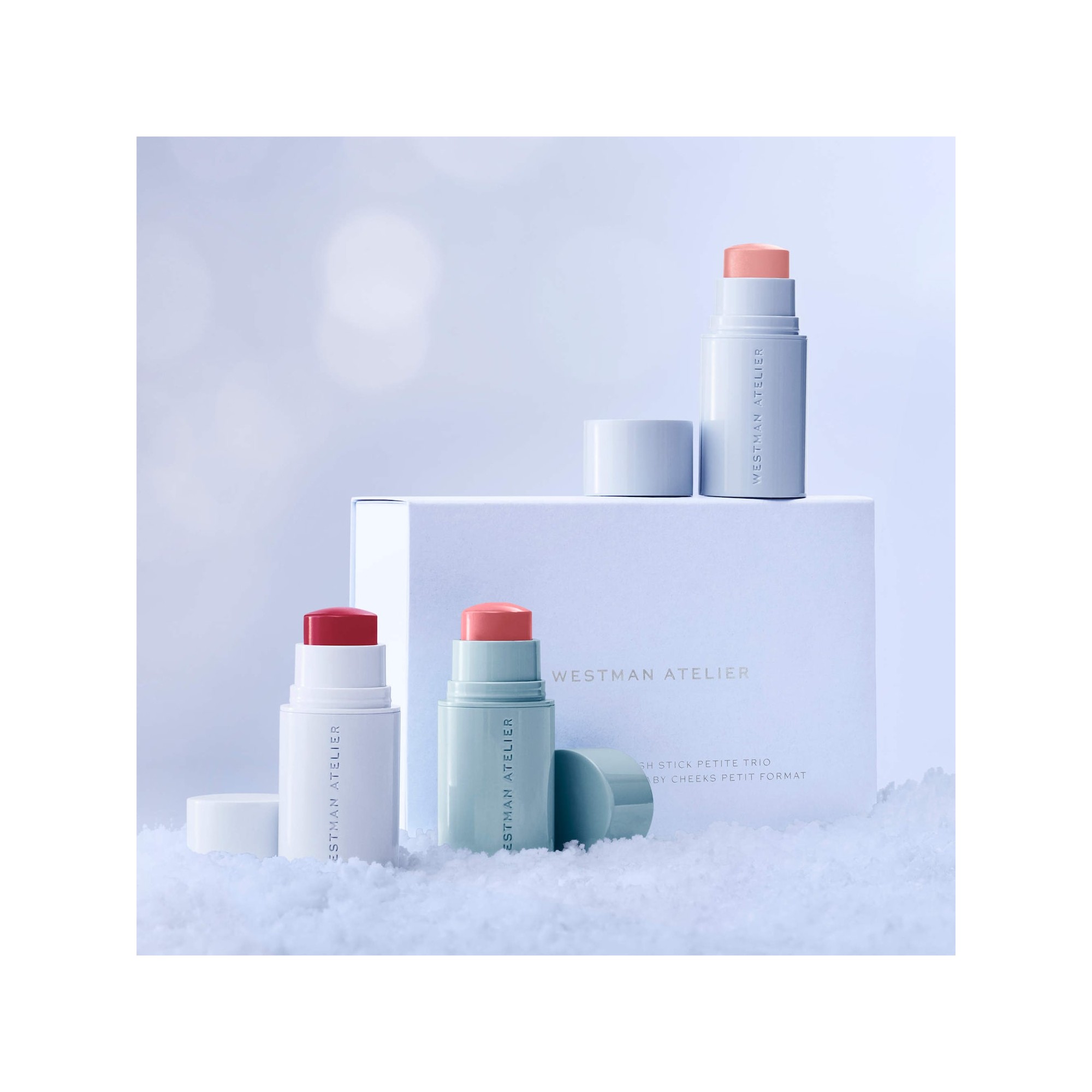 Westman Atelier Mini Baby Cheeks Lip + Cheek Cream Blush Stick Trio Gift Set contient :