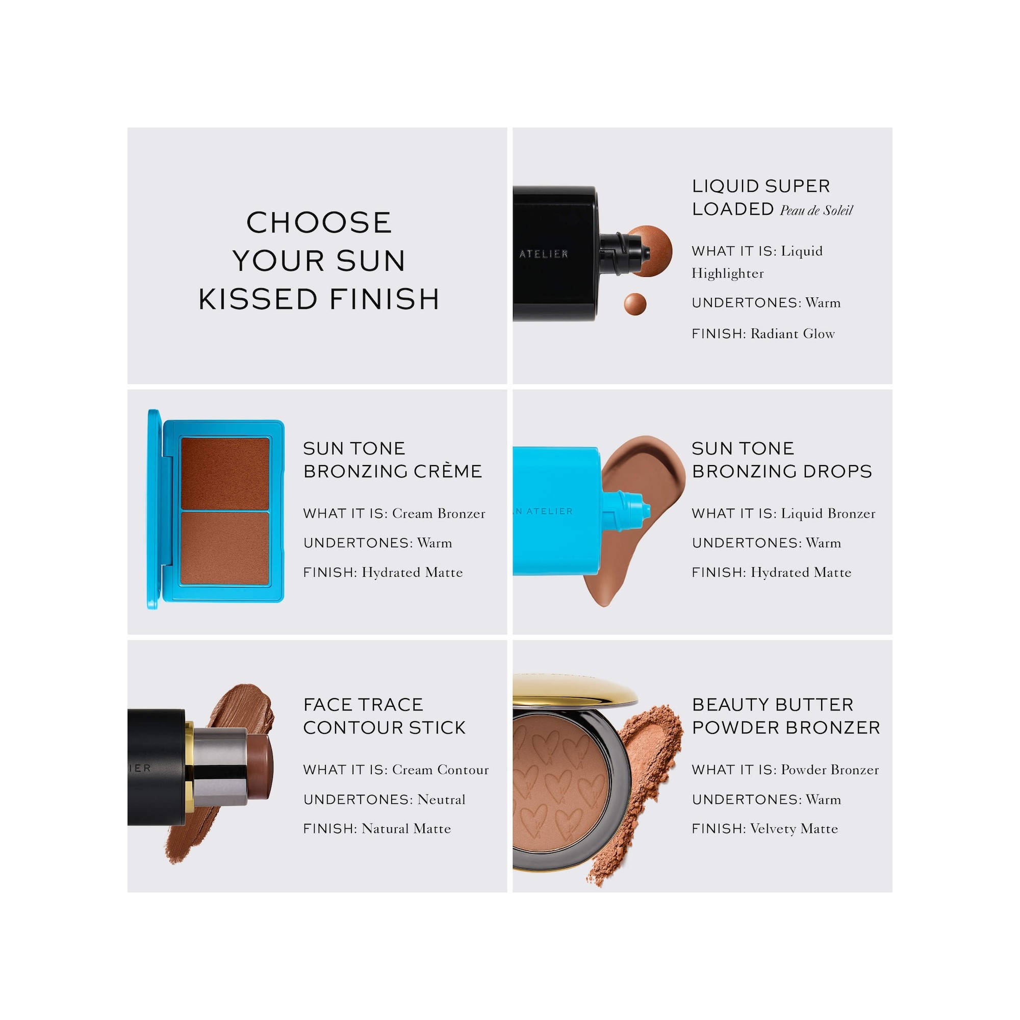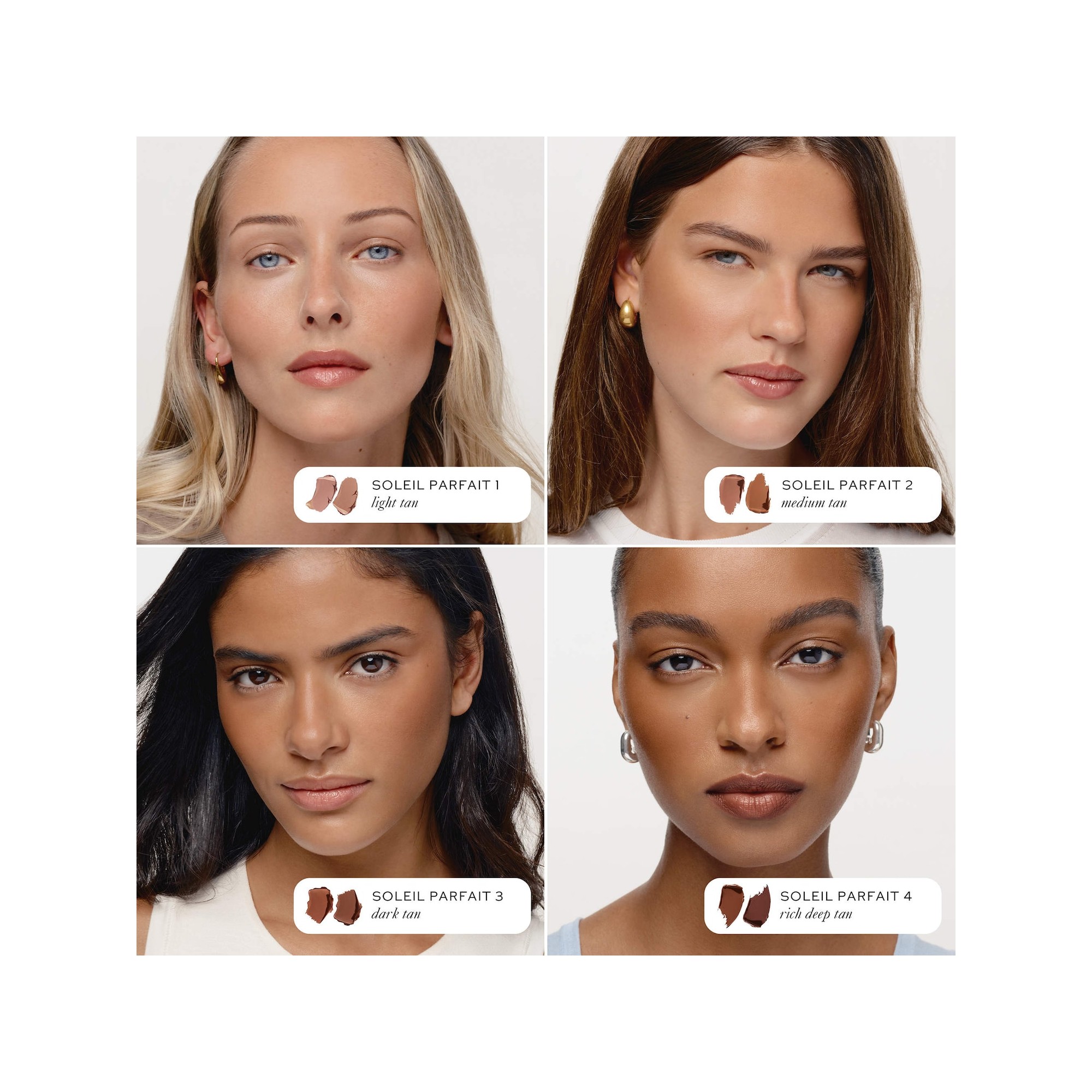 Westman Atelier Sun Tone Bronzing Crème Hydrating Cream Bronzer est un duo bronzant crème-poudre qui offre un effet hâlé multidimensionnel avec un fini mat hydraté ; ses deux teintes imitent la chaleur naturelle d’une peau dorée par le soleil. Le secret d’un bronzage naturel ne repose jamais sur une seule teinte. Ce duo associe parfaitement une nuance plus claire et une plus profonde, inspirées de la manière dont le soleil réchauffe naturellement la peau, pour créer de la dimension et une chaleur réaliste. Sa texture soyeuse crème-poudre glisse facilement sur la peau et se fond sans effort pour un fini mat lumineux et confortable. Les teintes peuvent s’utiliser seules ou combinées pour personnaliser votre effet hâlé. Issu du savoir-faire de Gucci, ce compact propose des teintes soigneusement sélectionnées qui se superposent et s’estompent parfaitement pour un résultat naturel et ensoleillé. Les émollients dérivés de la noix de coco assurent une application fluide et légère. L’extrait d’avocat aide à améliorer l’élasticité, hydrate et renforce la barrière cutanée, tandis que l’extrait de champignon shiitake lisse la peau, floute les pores, contrôle la brillance et apaise.